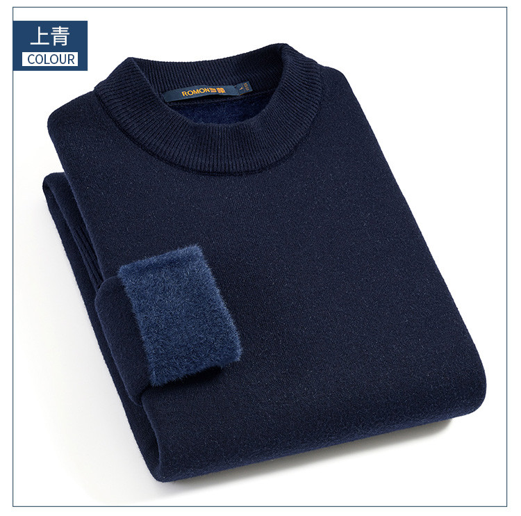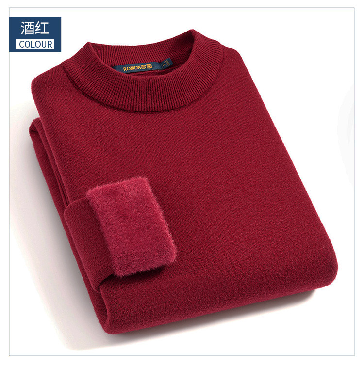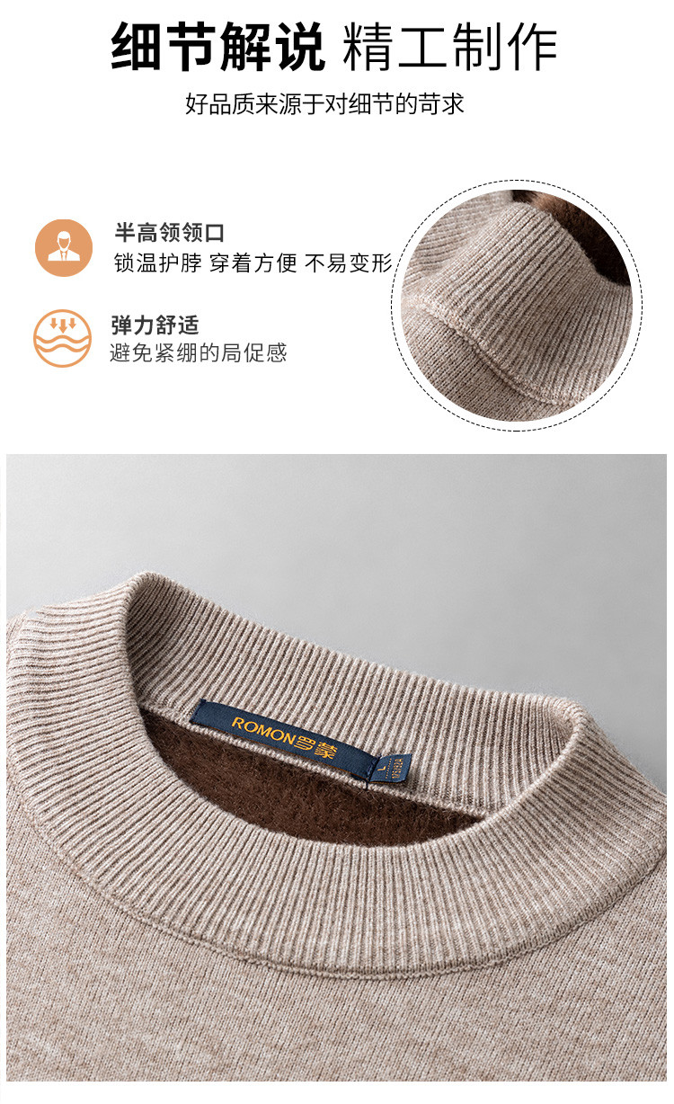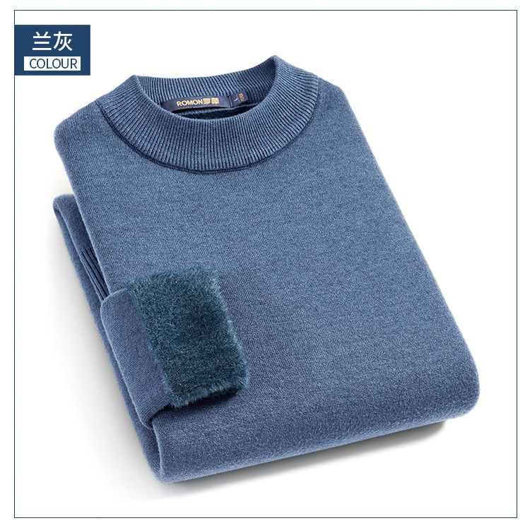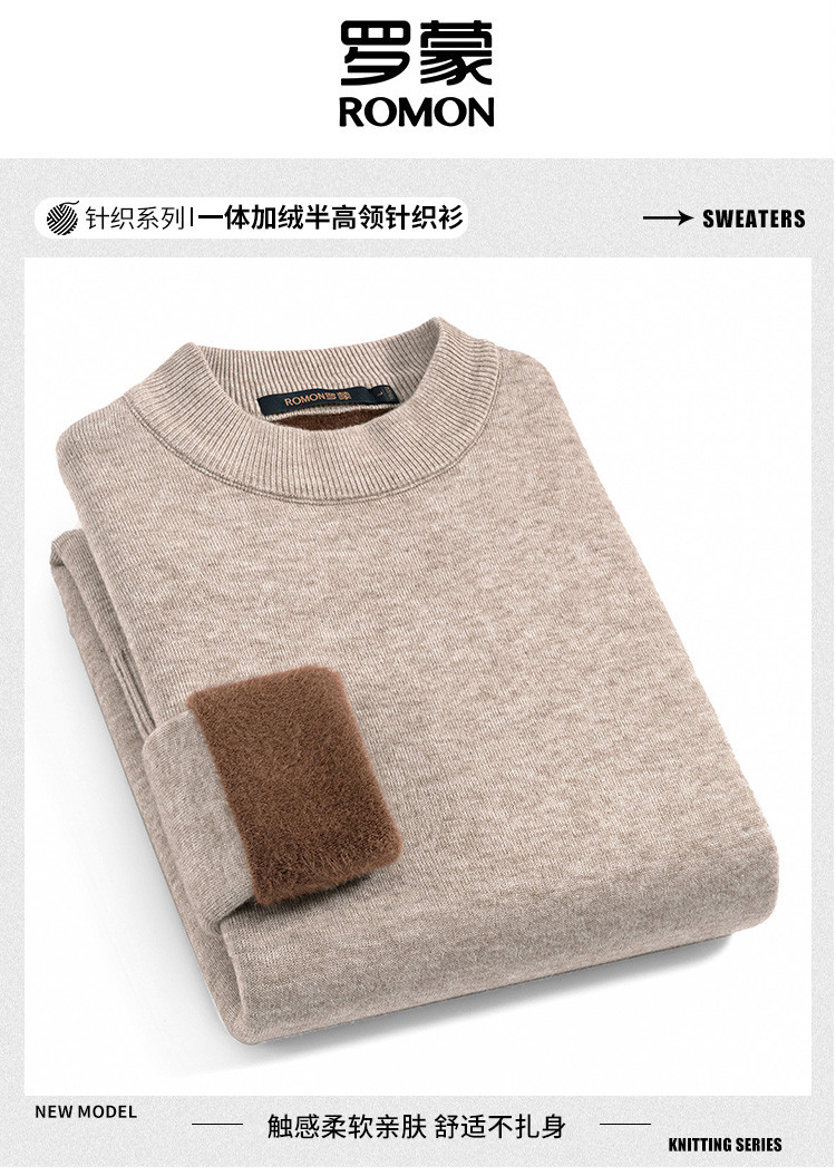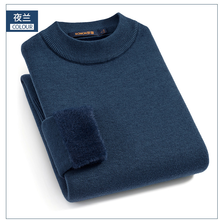 【加绒加厚】罗蒙秋冬男装半高领毛衣男加绒毛衣男士休闲百搭毛衣针织衫男