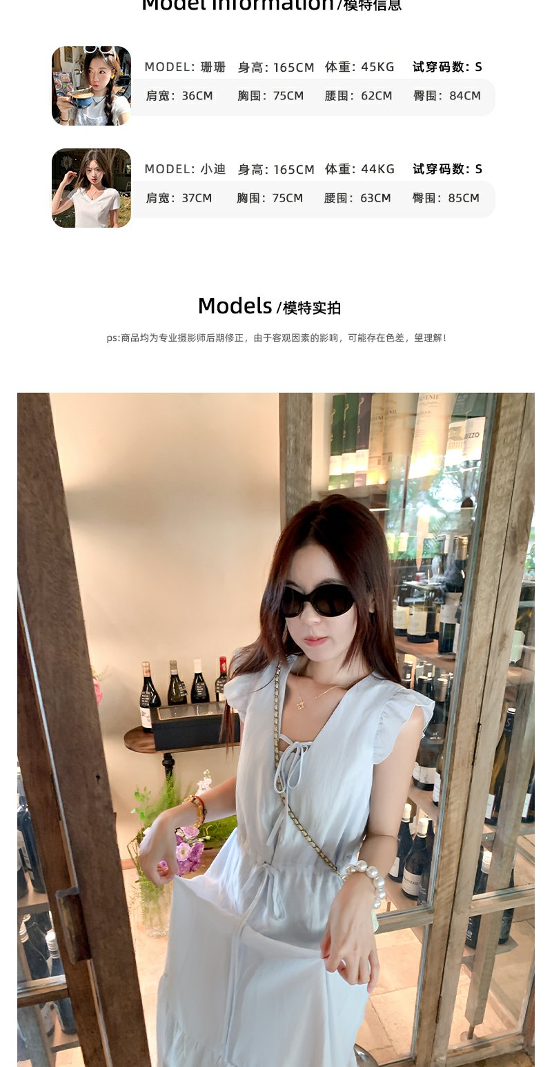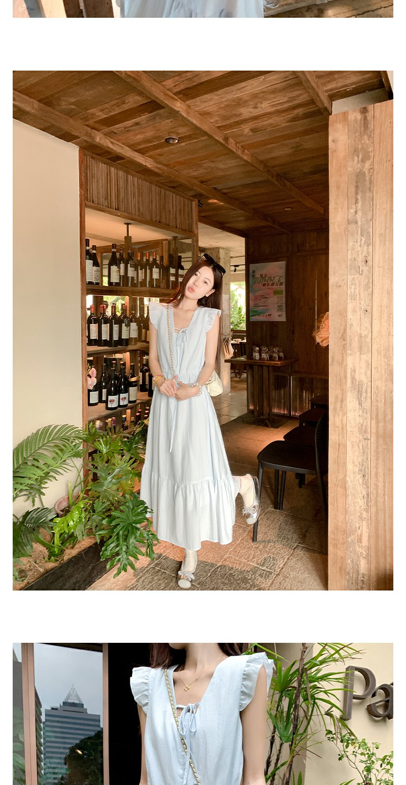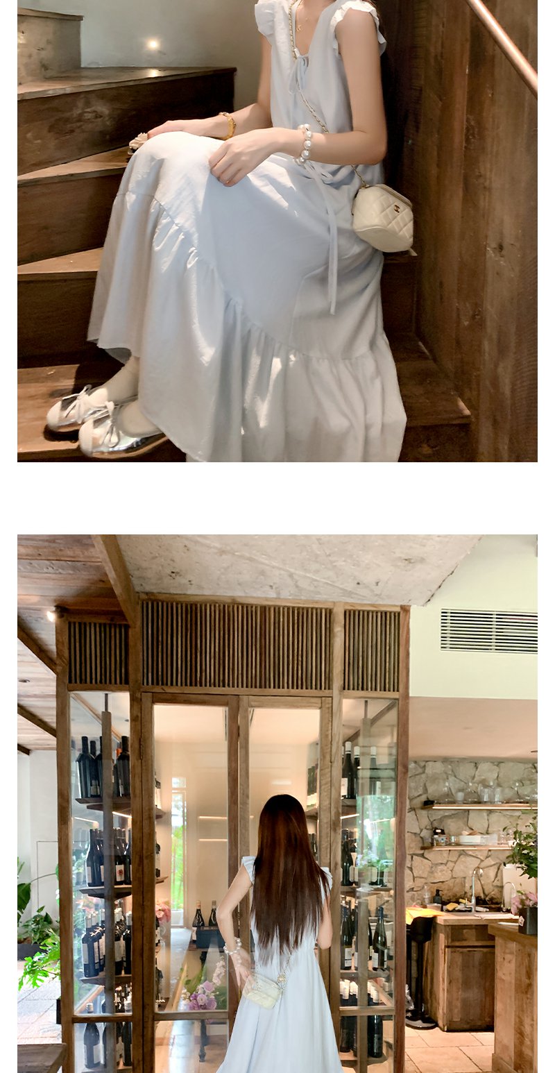 <曾小咸推荐>法式气质蓝色小飞袖连衣裙