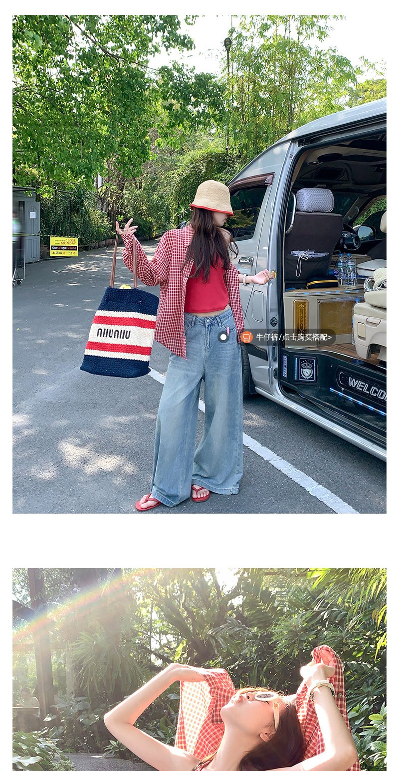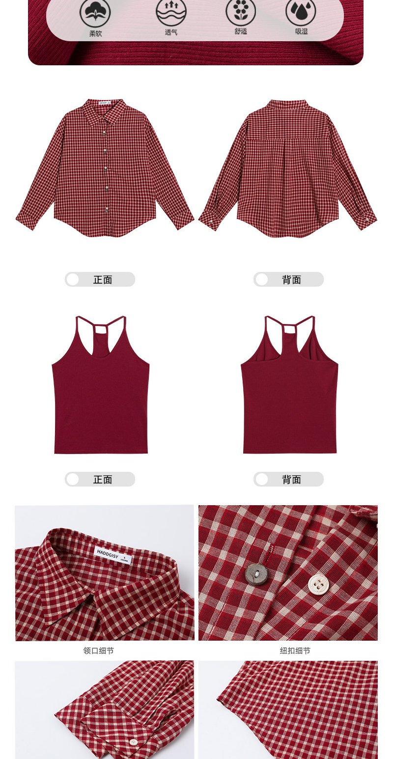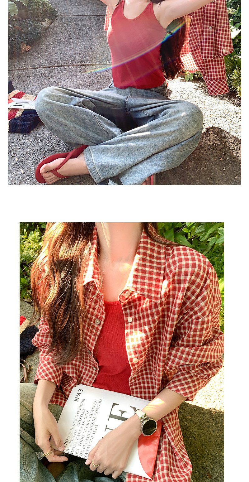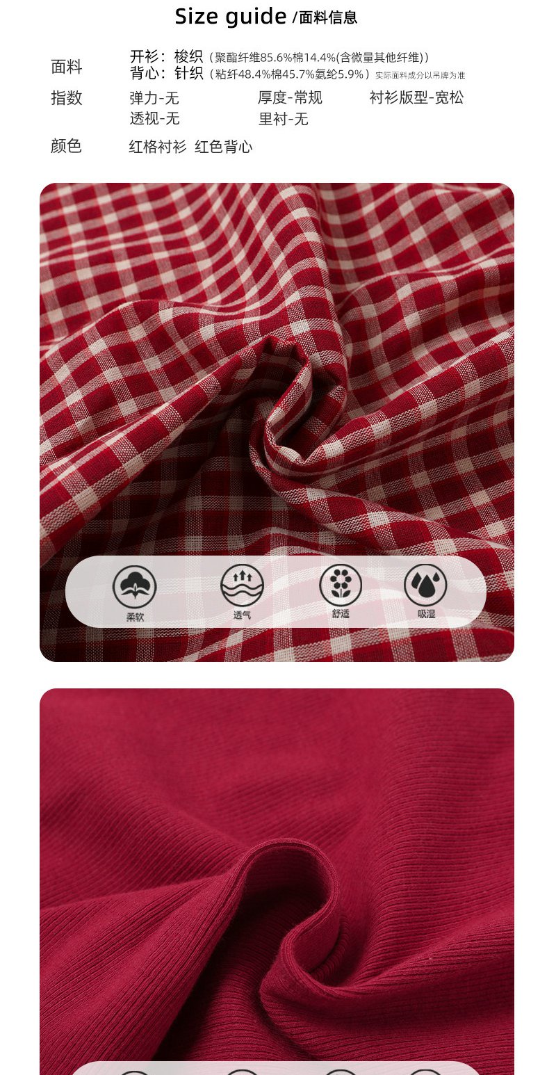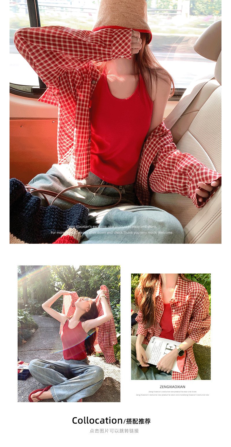 <曾小咸推荐>慵懒风红格子宽松防晒衬衫