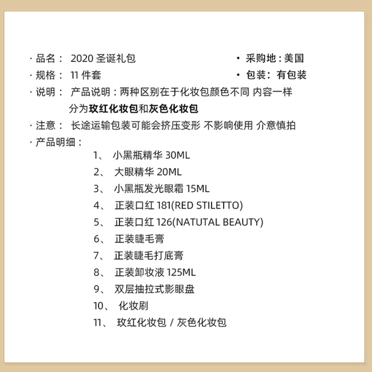 LANCOME 兰蔻 2020圣诞大礼包(小黑瓶精华30ML+大眼精华20ML+小黑瓶眼霜15ML+眼唇卸妆液125ML 法国