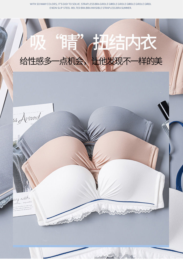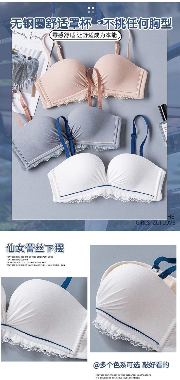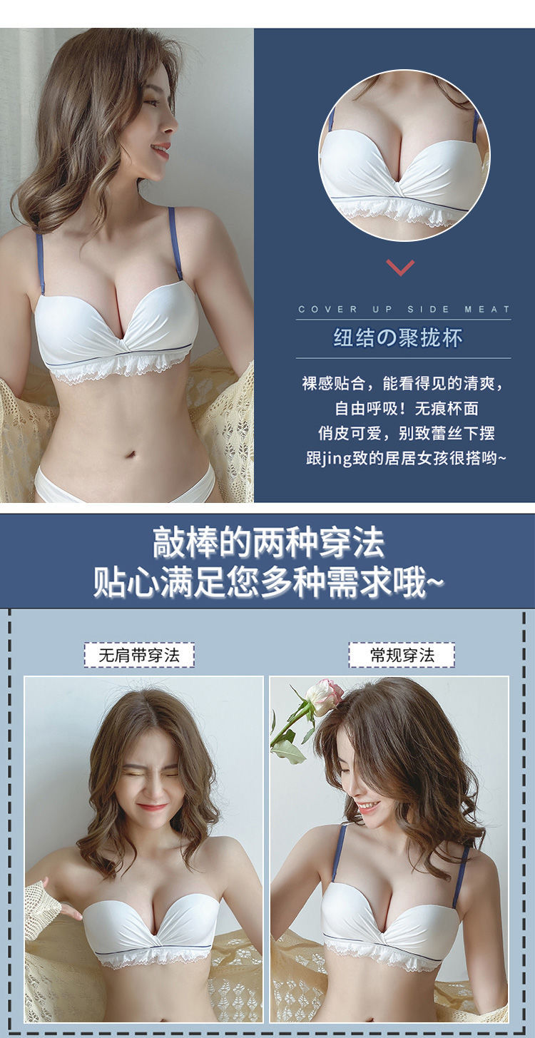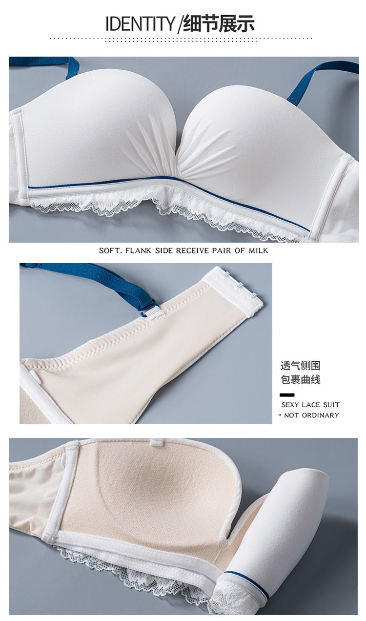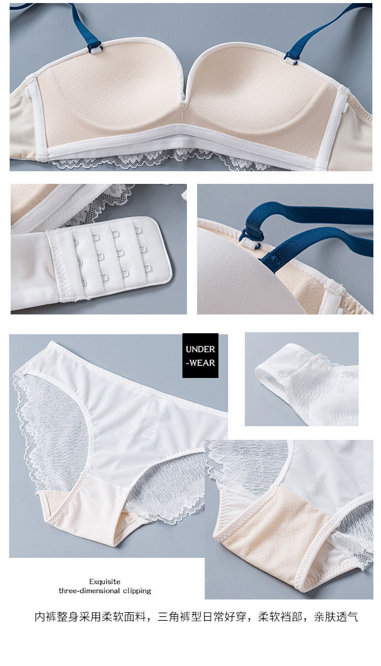 白色少女日系无肩带无钢圈调整型小胸聚拢性感内衣蕾丝套装文胸罩