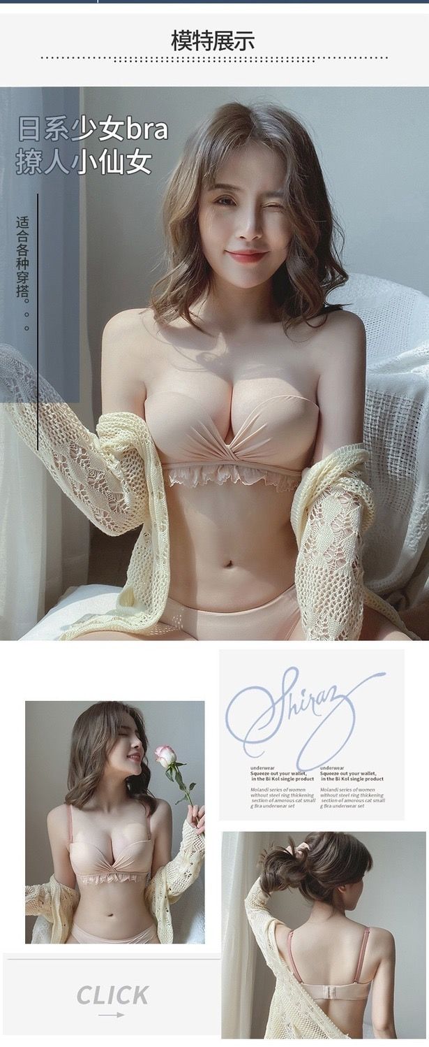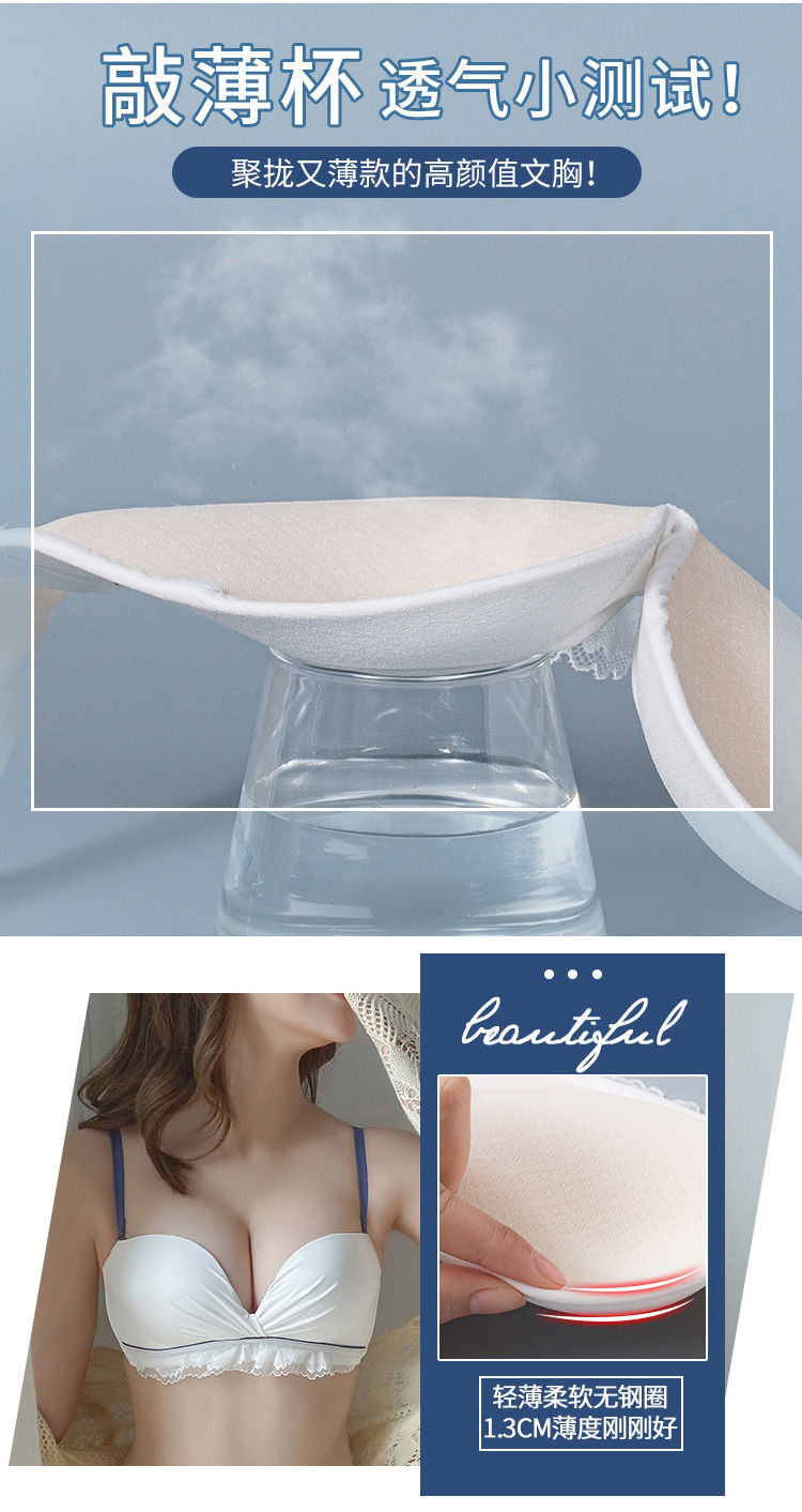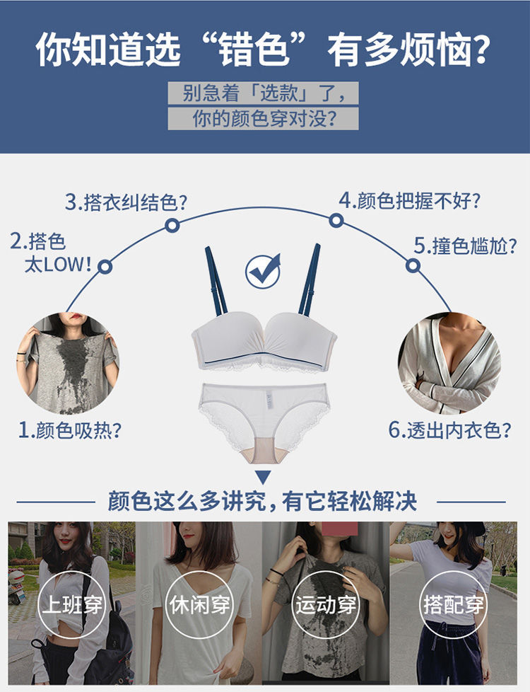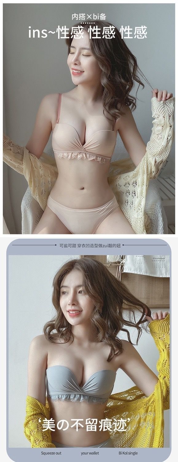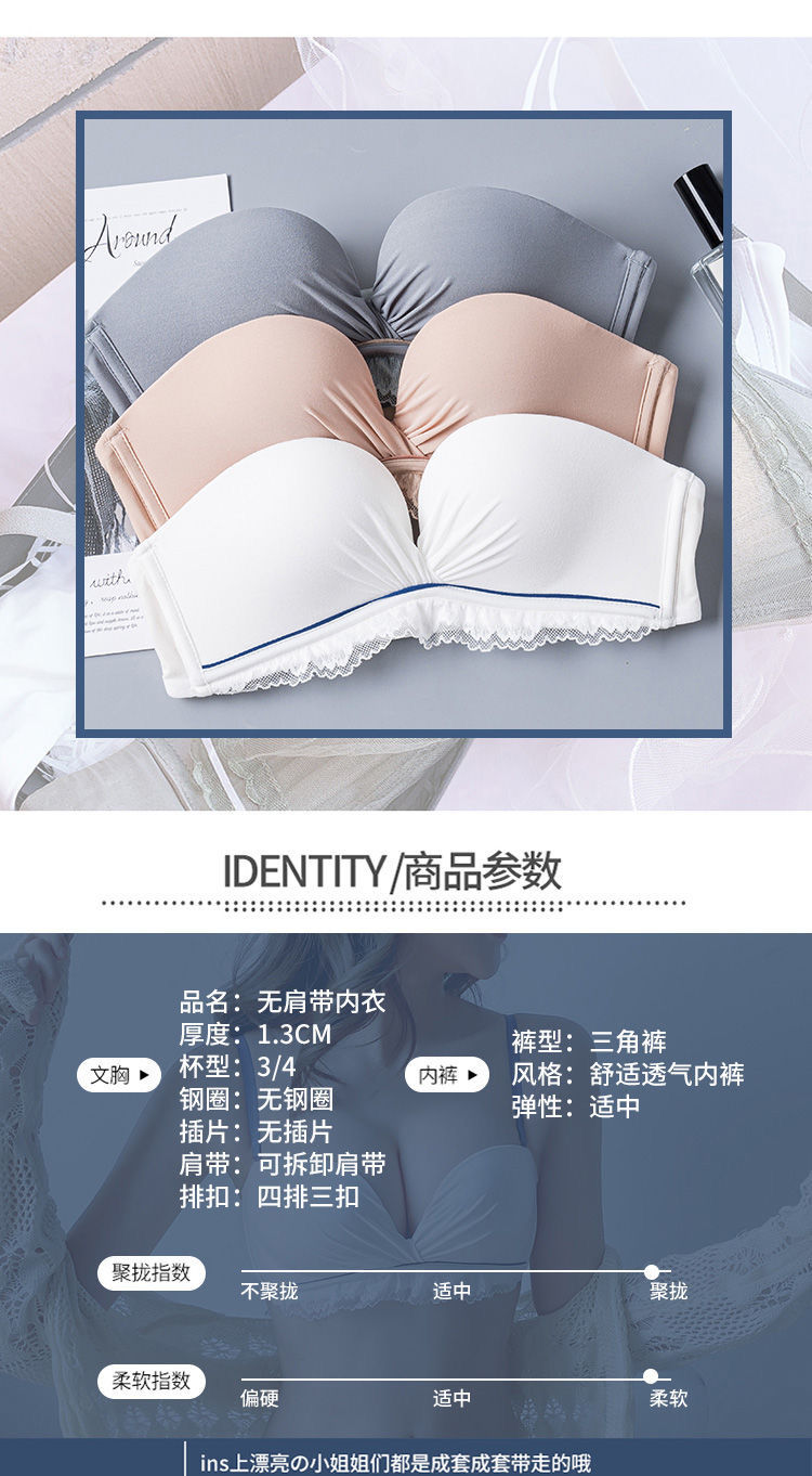 白色少女日系无肩带无钢圈调整型小胸聚拢性感内衣蕾丝套装文胸罩