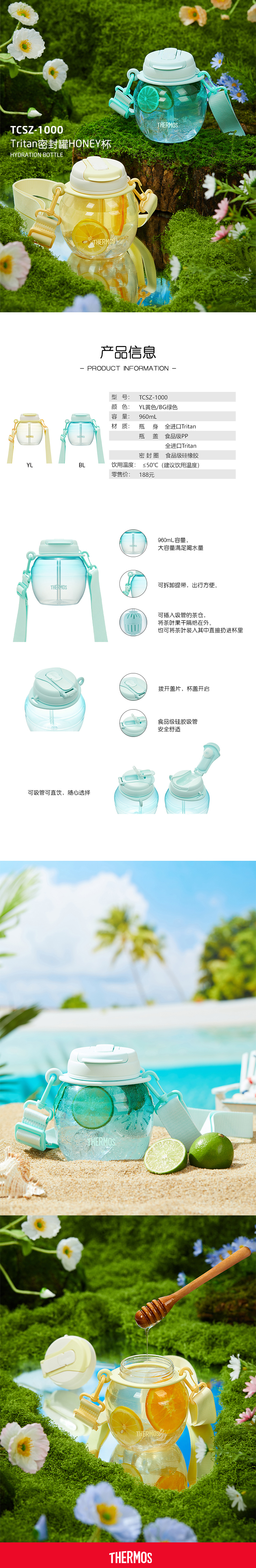 【4月】膳魔师双饮口随行杯和硅胶茶漏TCSZ-1000+TB-01茶漏【7F童床】[广百北京路店]