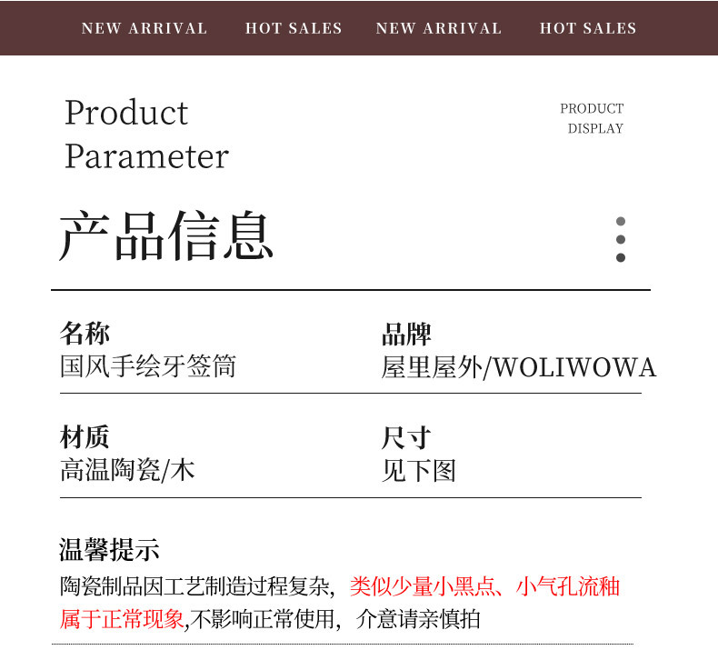 向顾客展示商品细节与优势,常见内容有: