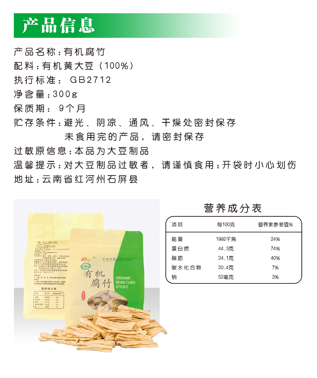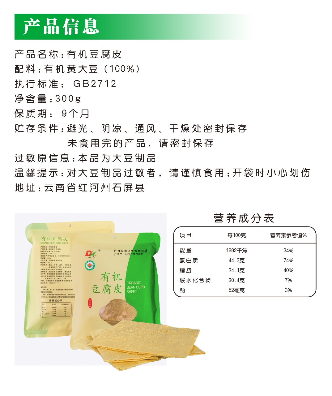 有机豆腐皮、有机豆腐丝、有机腐竹 云南石屏手工工艺300g/袋 【京东快递送货上门】
