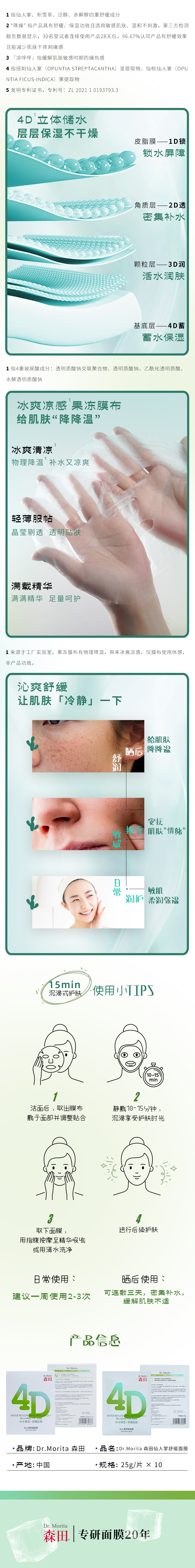 【森田药妆】4D仙人掌舒缓面膜(25g*10片/盒)