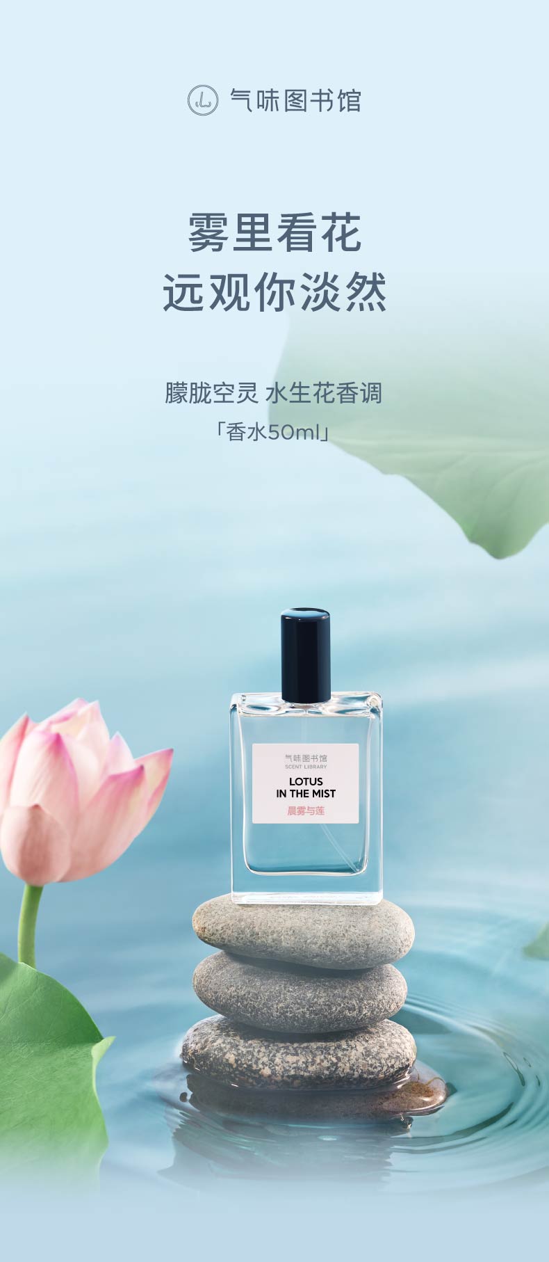 【花香调香水-清幽佛系】气味图书馆淡香水晨雾与莲香型50ml