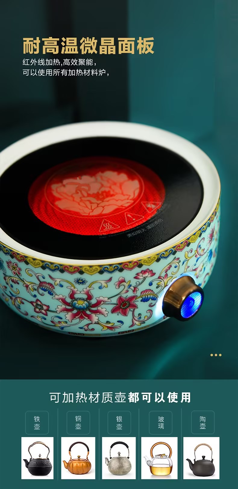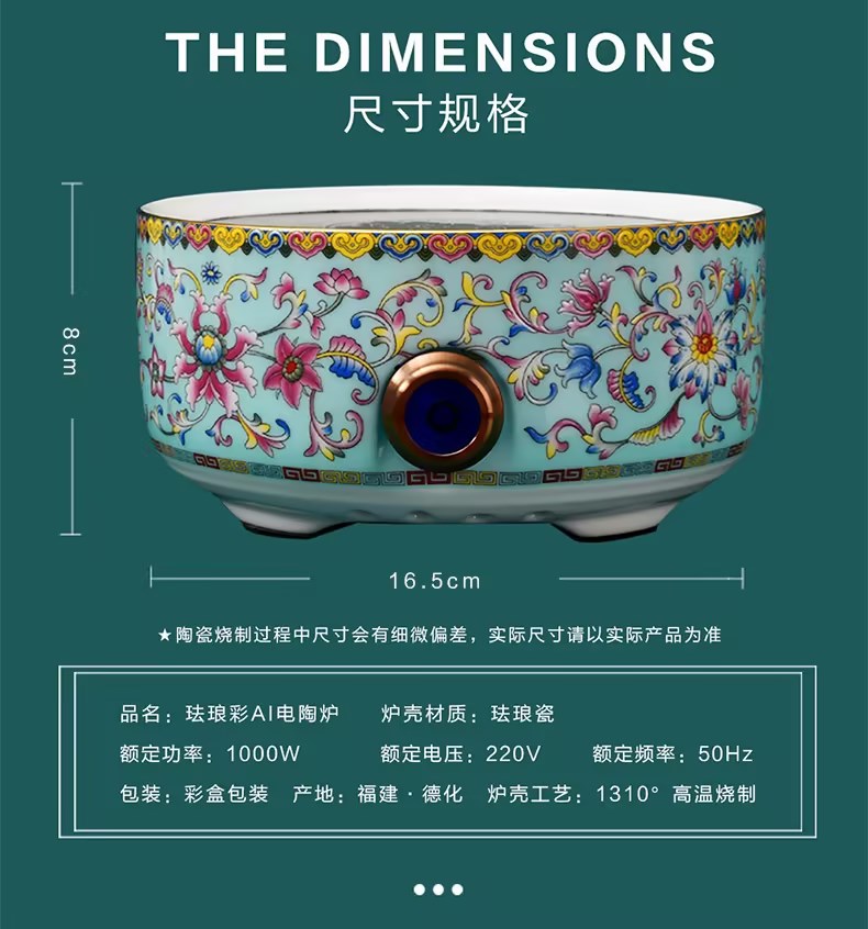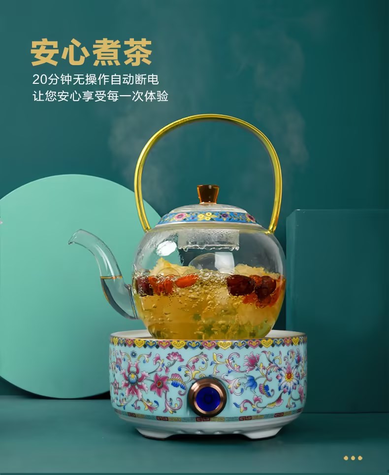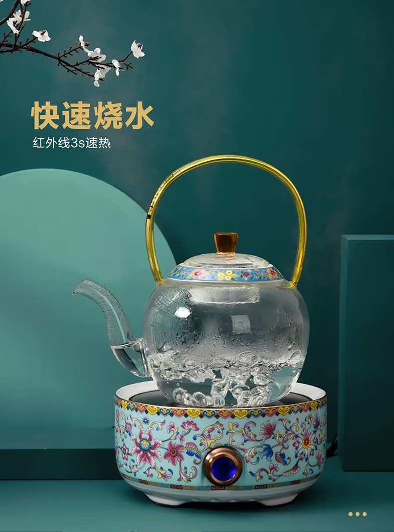 成艺-国潮珐琅彩电陶炉陶瓷煮茶烧水家用茶炉 A1电陶炉(蓝)