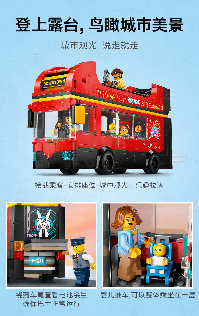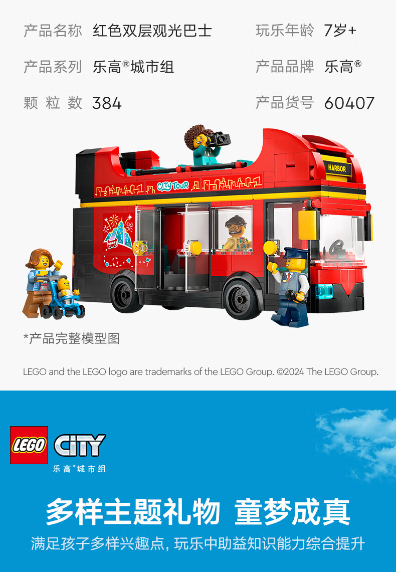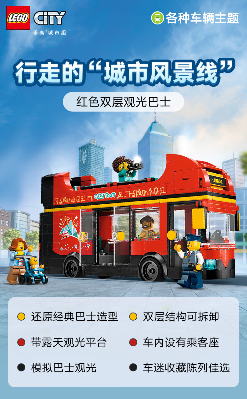 乐高积木L60407乐高城市系列红色双层观光巴士