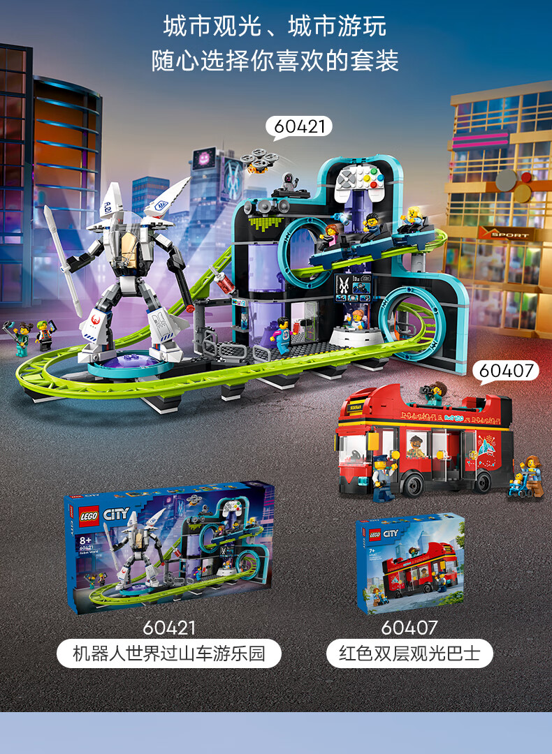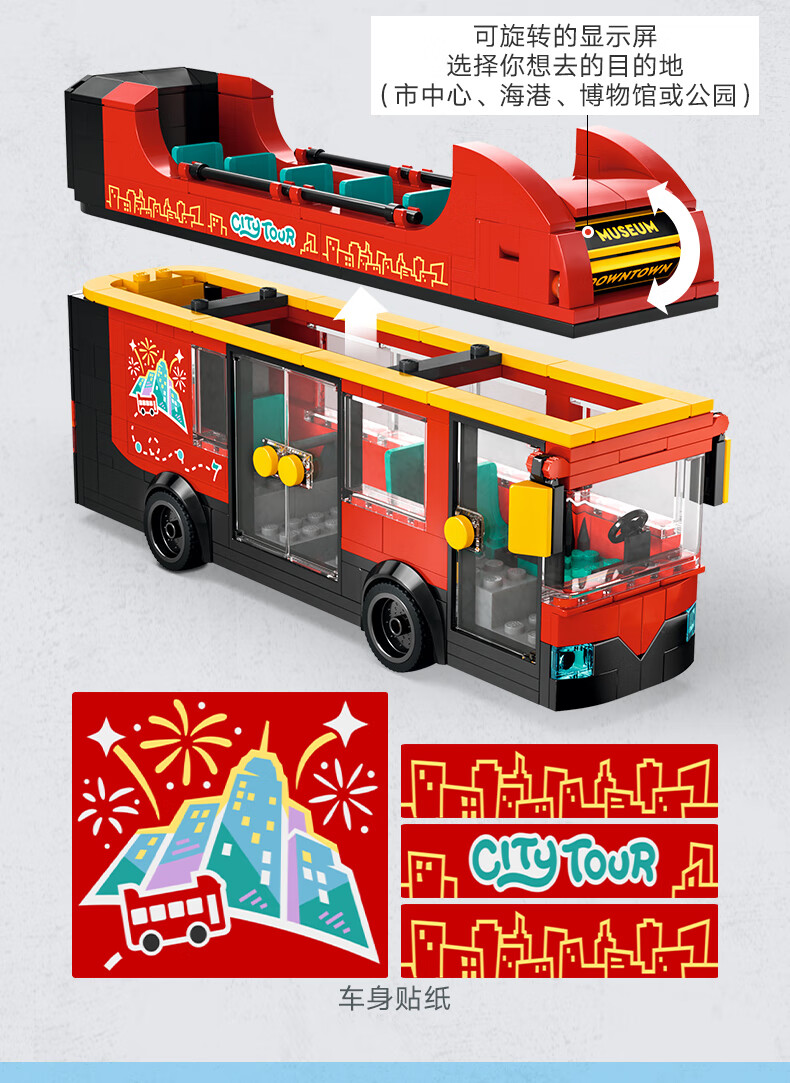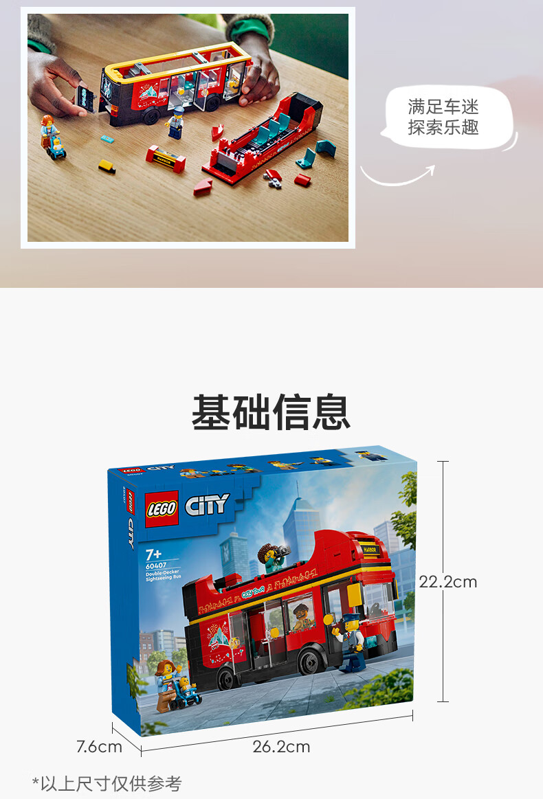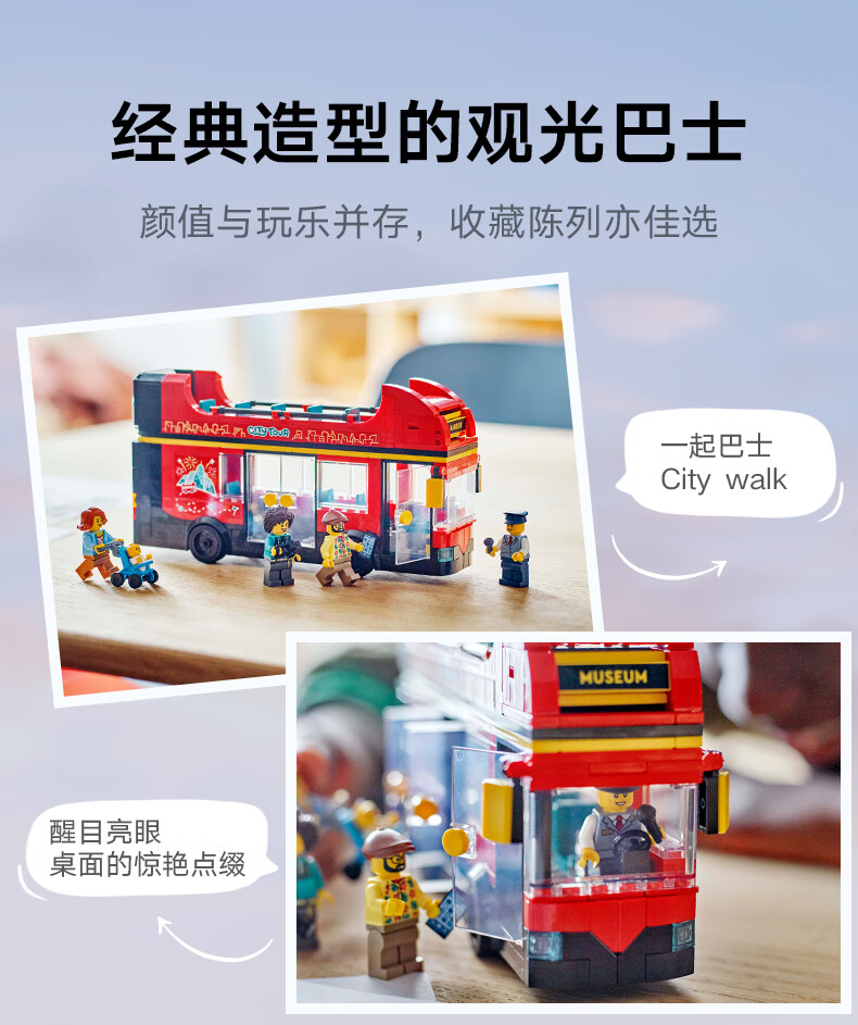 乐高积木L60407乐高城市系列红色双层观光巴士
