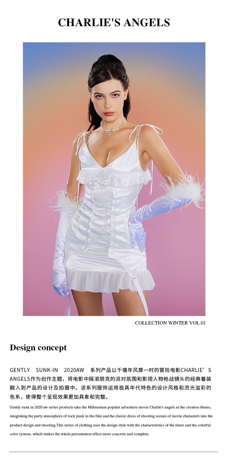 Gently sunk-in原创解构复古蕾丝雪纺荷圣诞宫廷修身吊带连衣裙白
