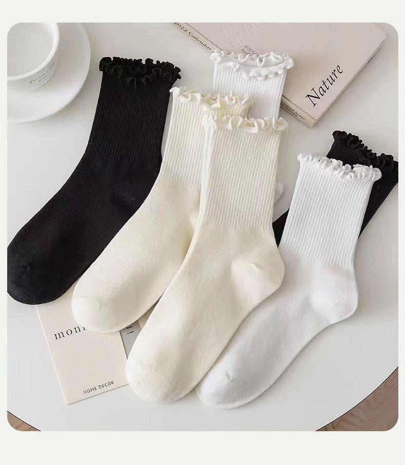 7双超值装潮流袜子女夏季韩版中筒袜白色花边jk袜春秋木耳边长筒袜日系ins潮袜