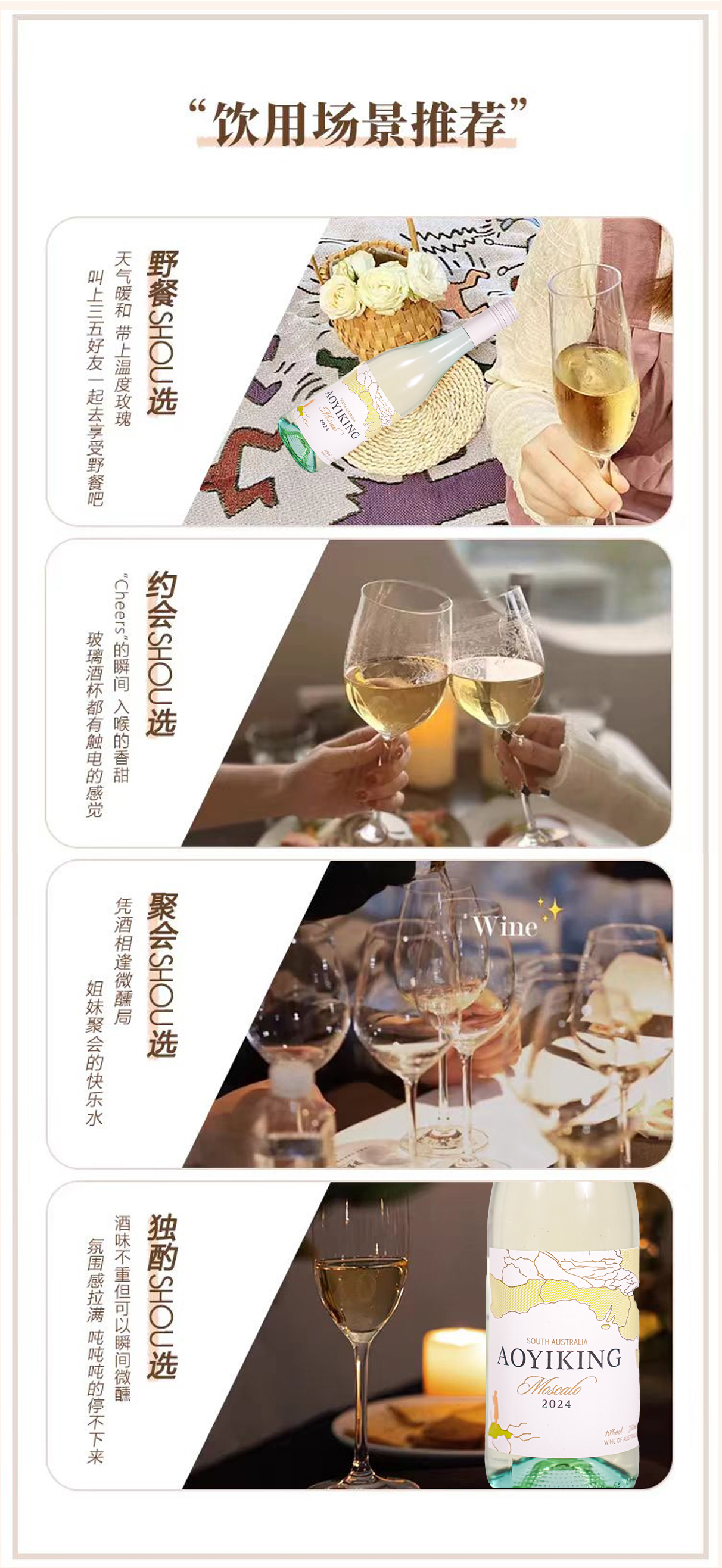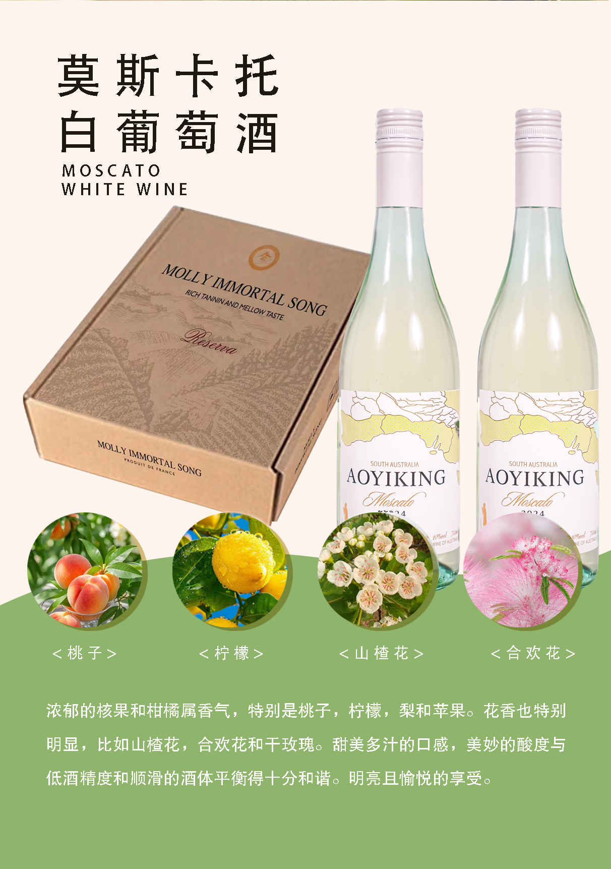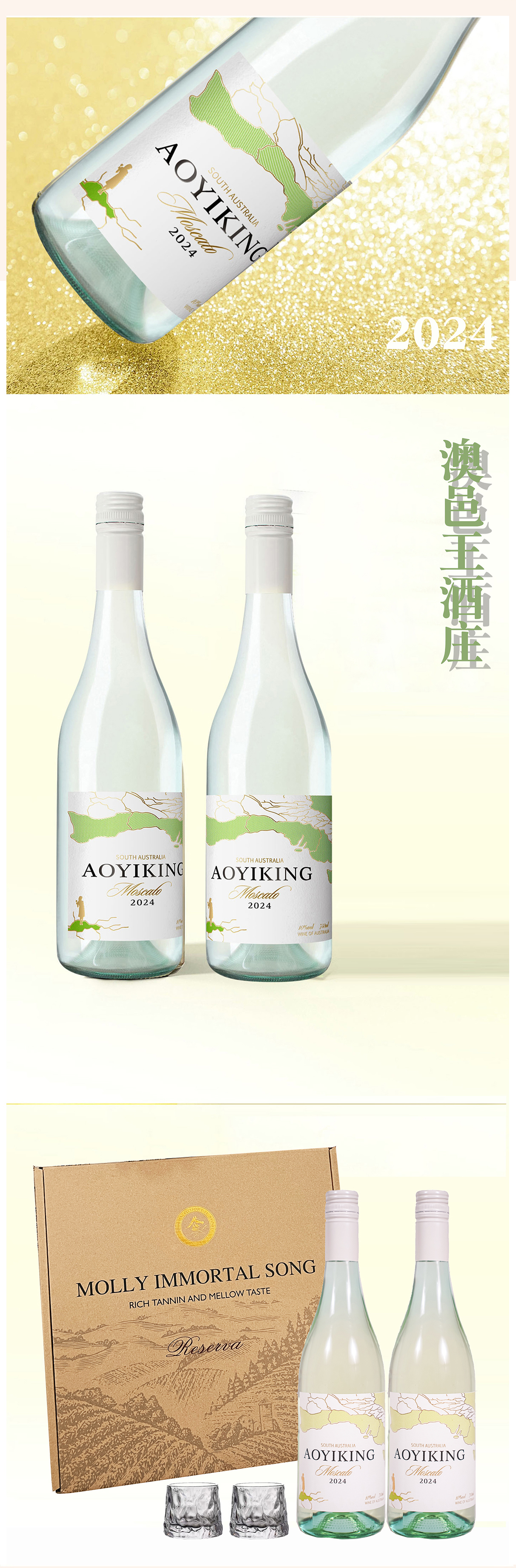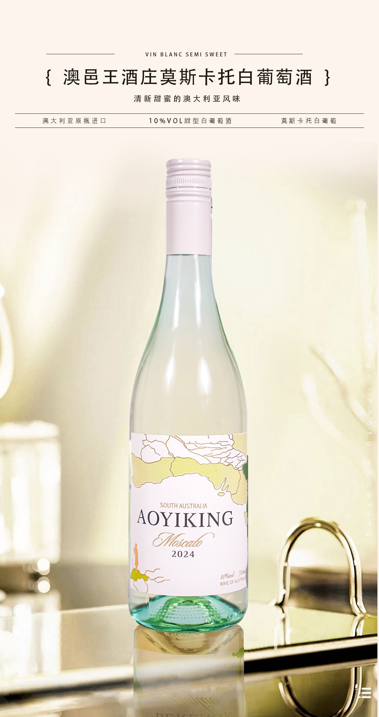 澳邑王酒庄莫斯卡托白葡萄酒 10%VOL甜型 澳大利亚原瓶进口