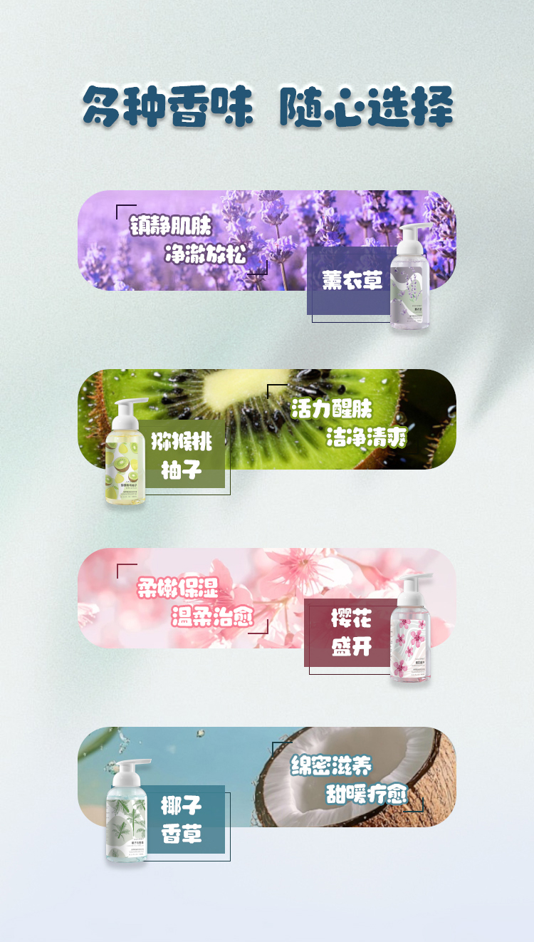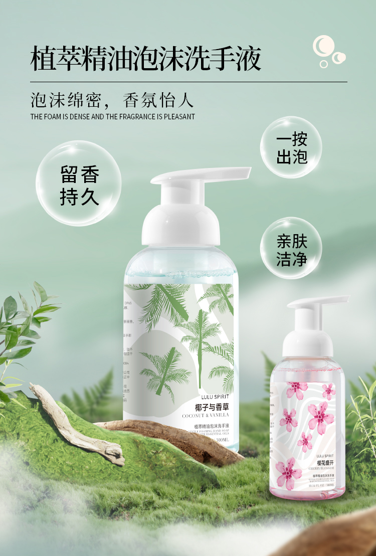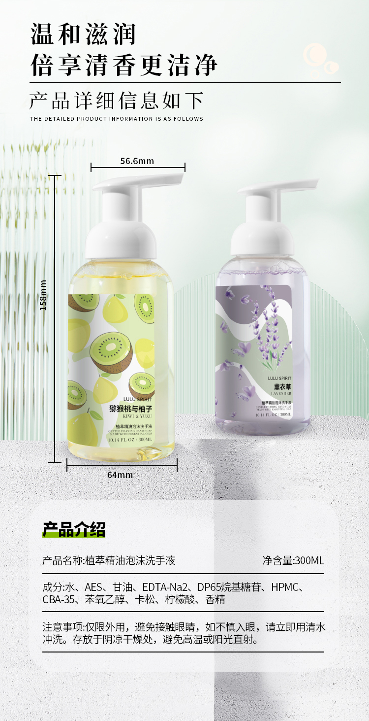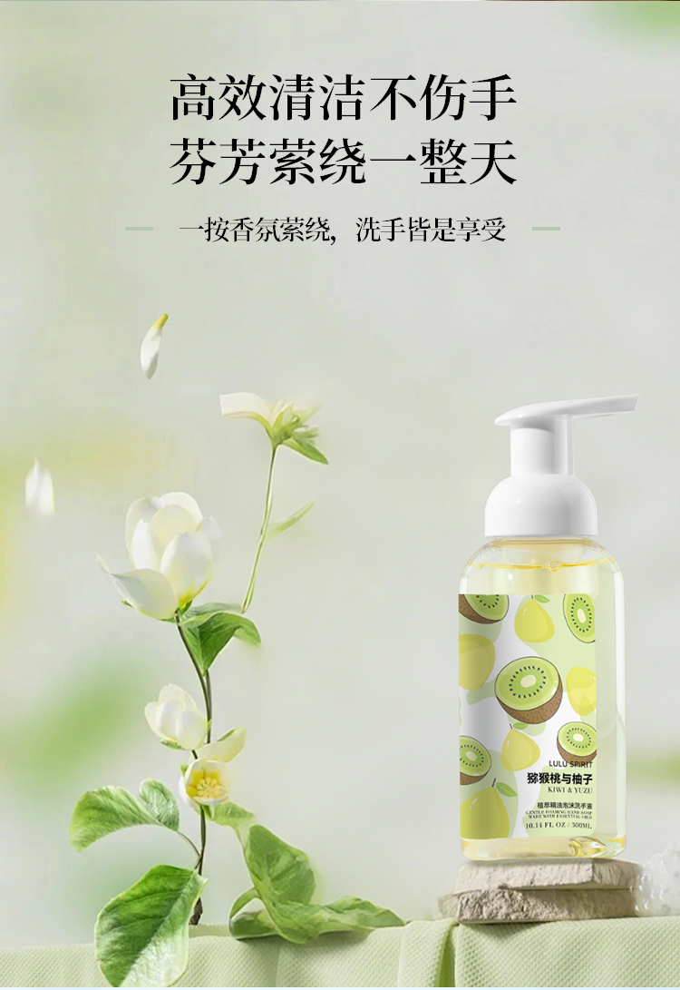 璐璐馨猕猴桃柚子植萃薰衣草植萃椰子香草樱花盛开植萃精油泡沫洗手液300ml