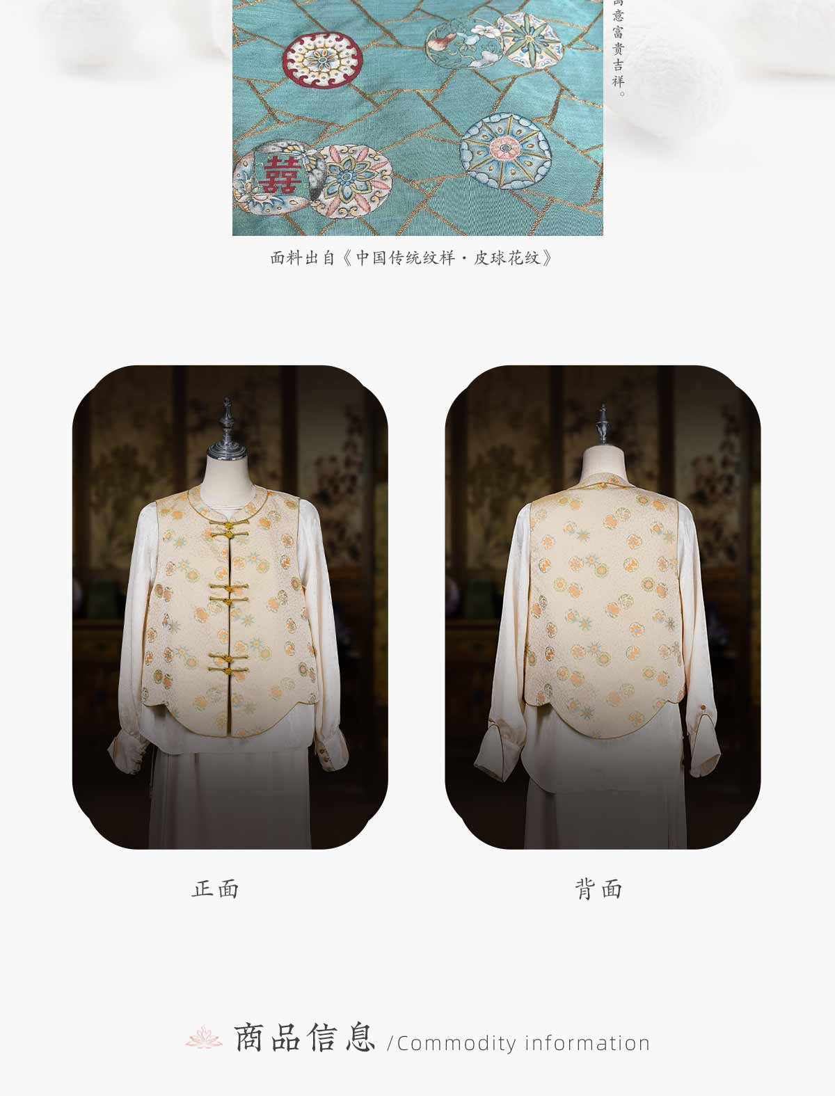 荷言HEYEN原创新中式 春昼 非遗宋锦真丝冰裂皮球纹马甲上衣高定 商品图4