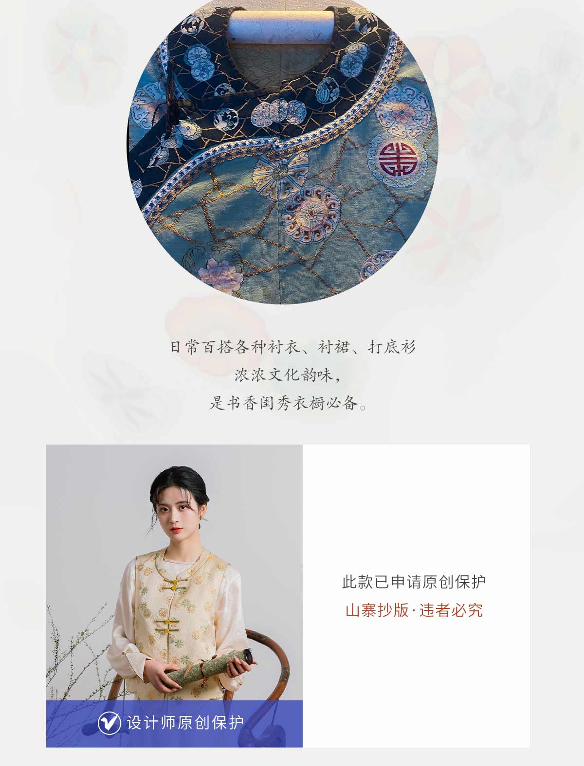 荷言HEYEN原创新中式 春昼 非遗宋锦真丝冰裂皮球纹马甲上衣高定 商品图0