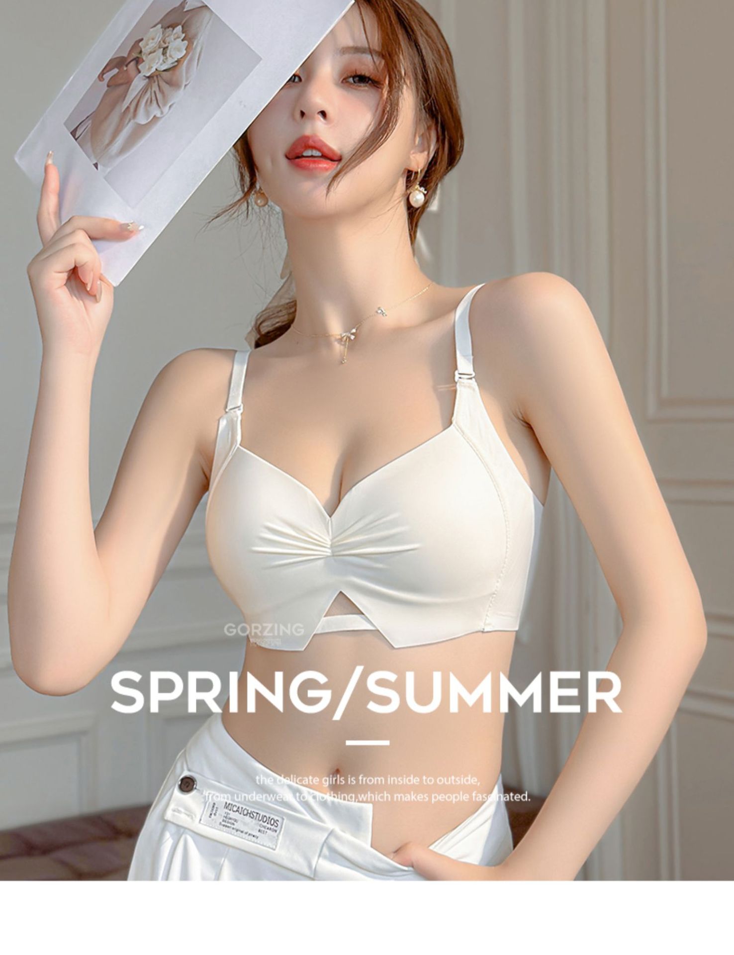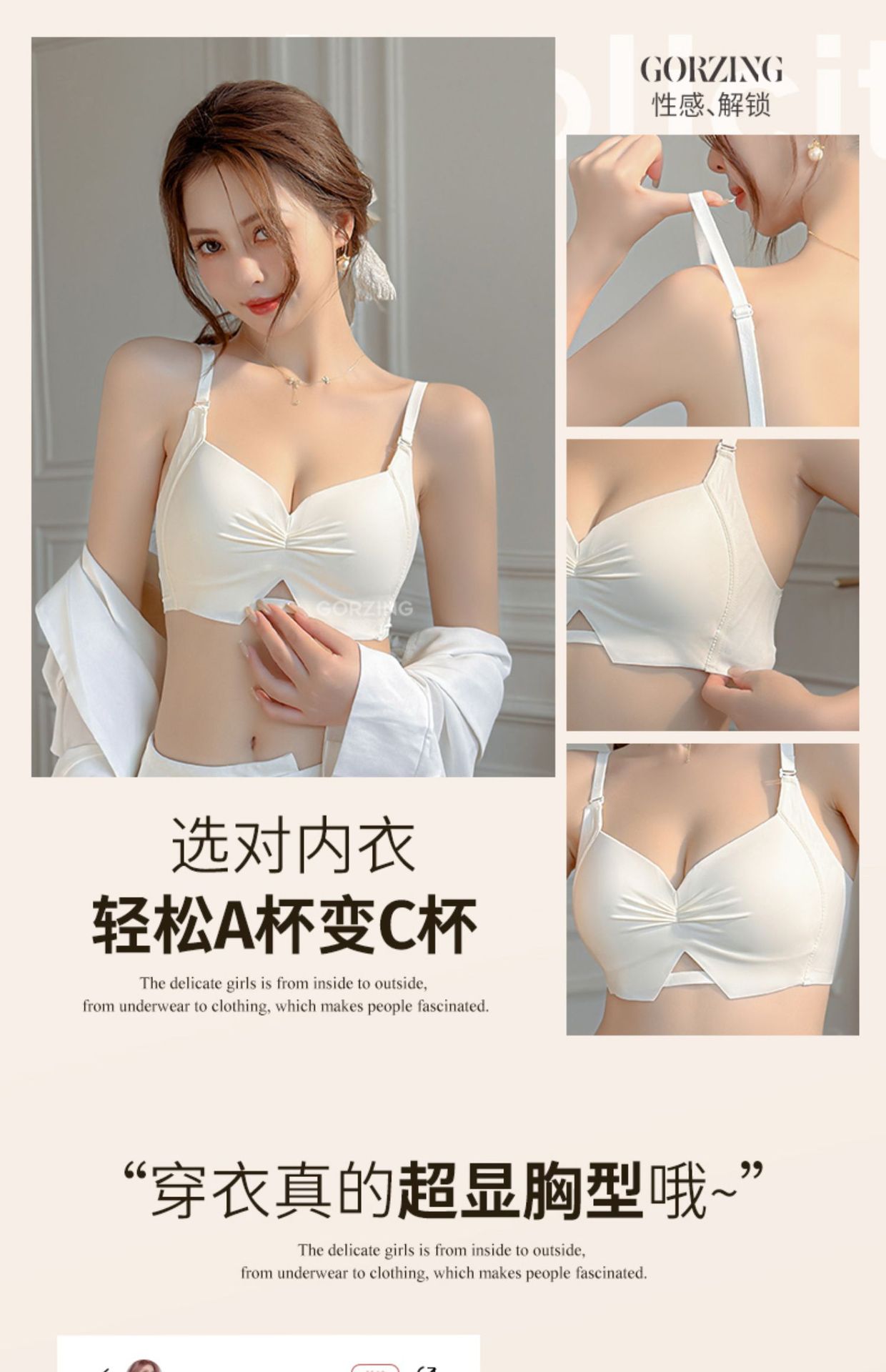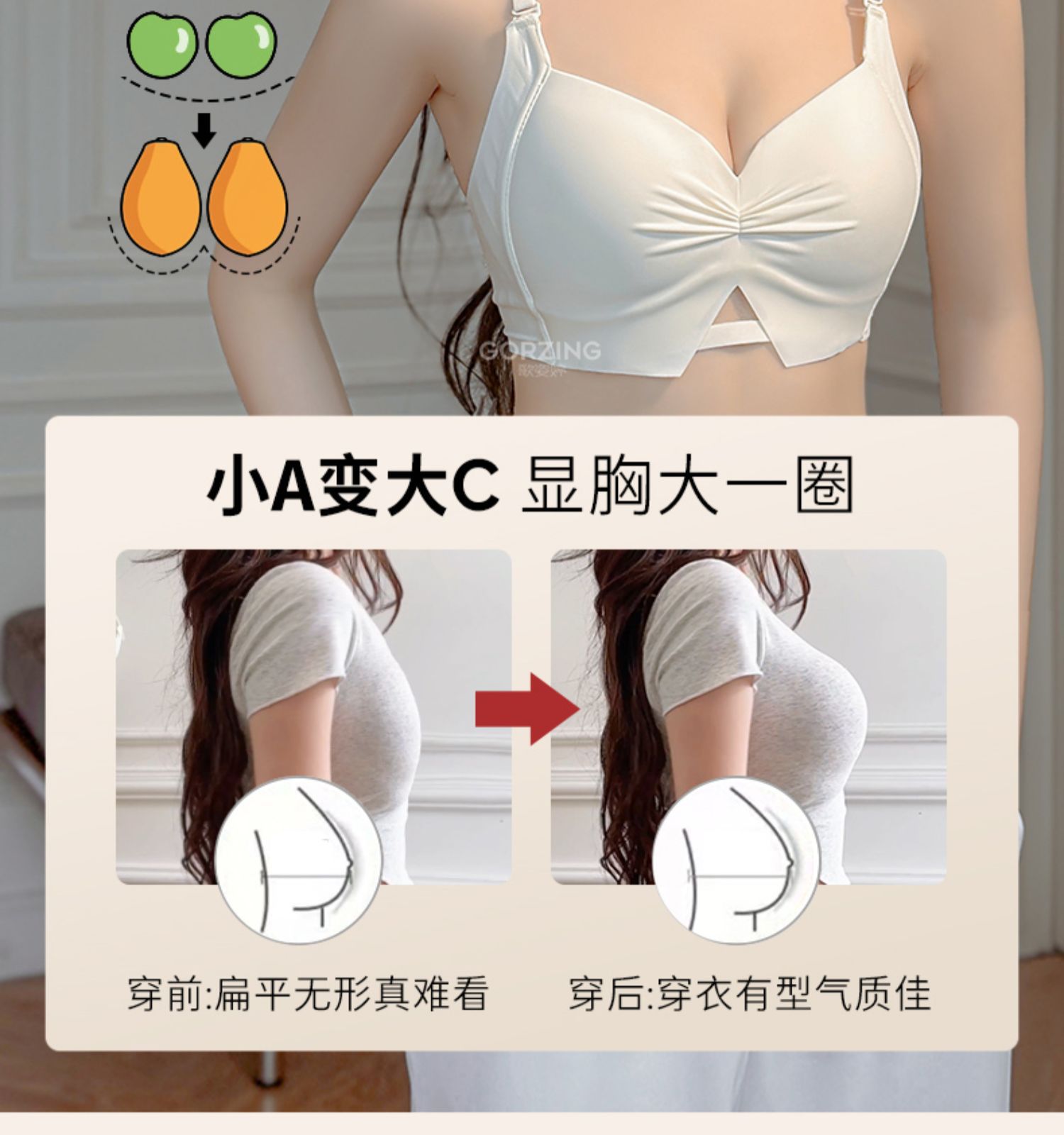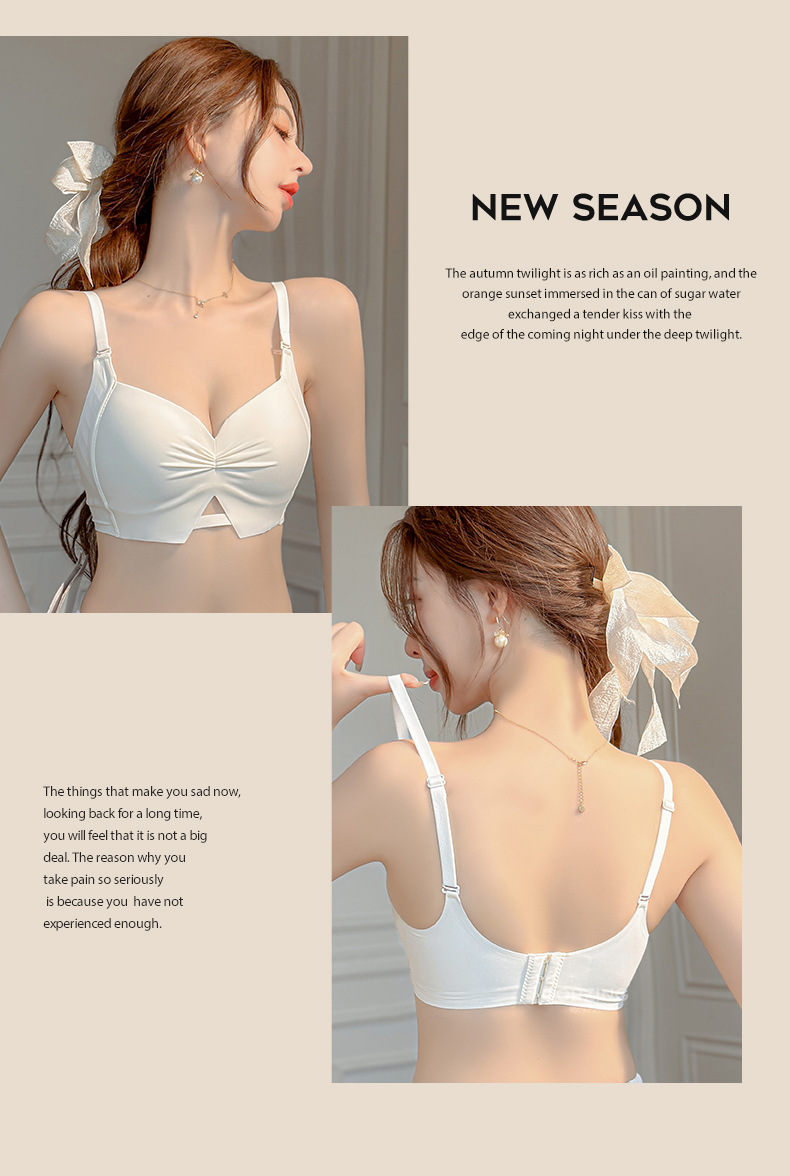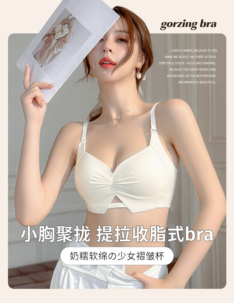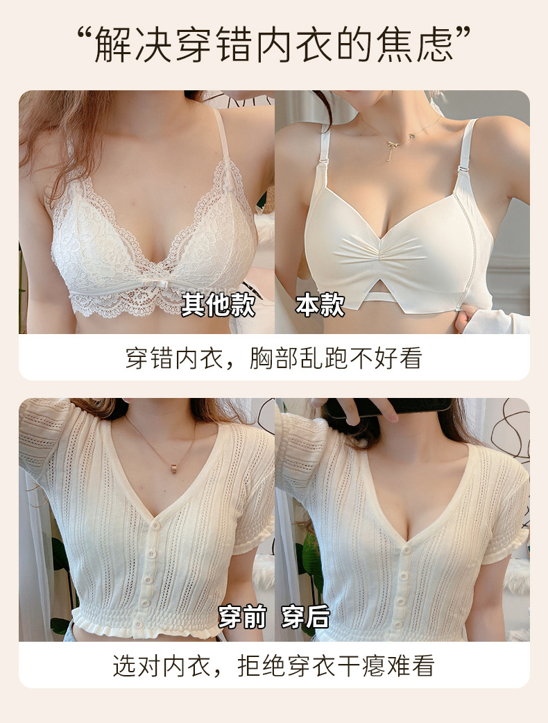【限时福利!买内衣送同款内裤】束缚你的小胸,让它焕发自由!轻薄杯设计,如无存在;无痕收副乳,尽显美好;聚拢上托,彰显深V美颜;防下垂,挺拔你的新高度。高颜少女褶皱Bra,渗透着时髦感!