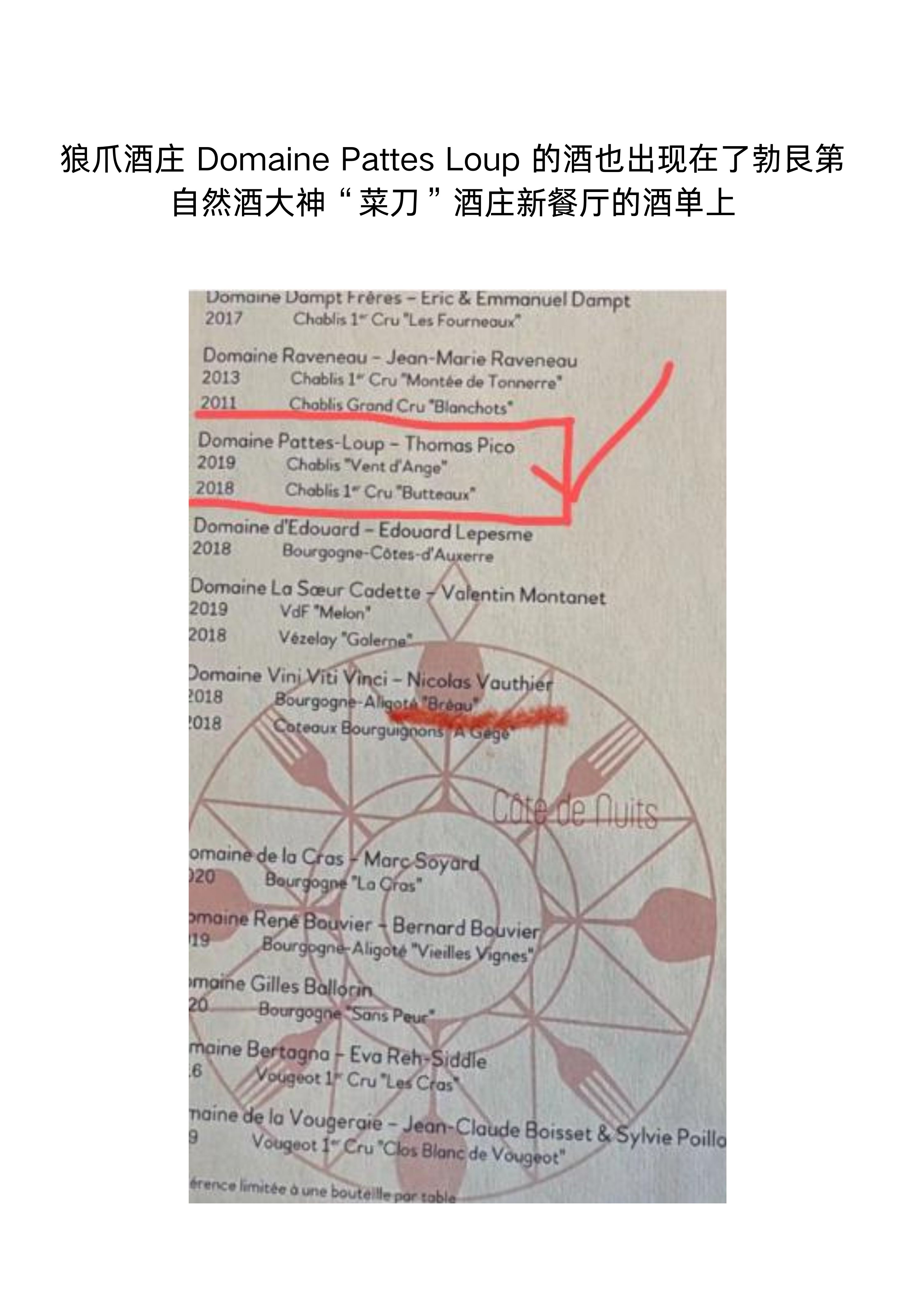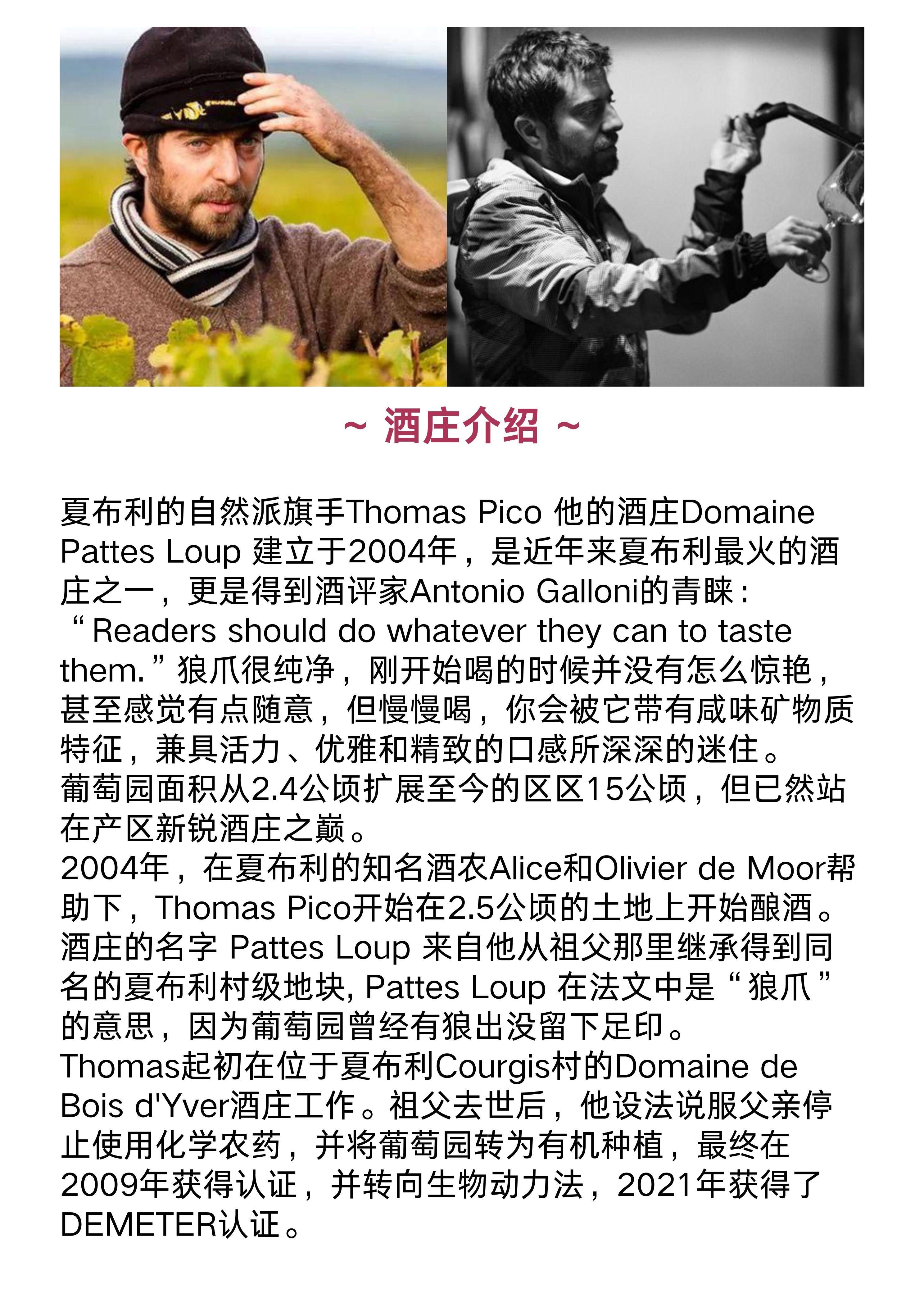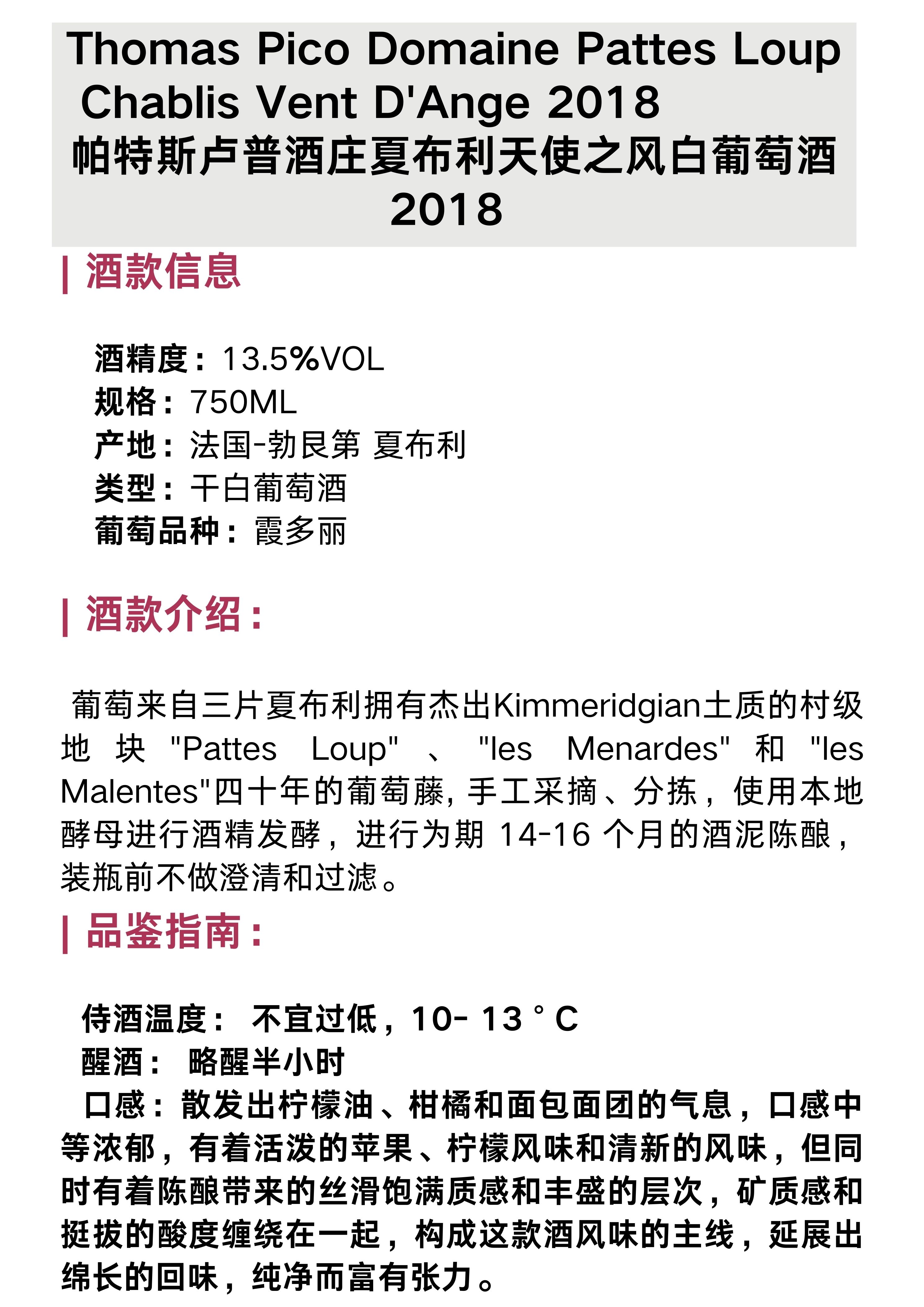 帕特斯卢普酒庄夏布利天使之风白葡萄酒2018 Thomas Pico-Domaine Pattes Loup Chablis Vent D'Ange 2018
