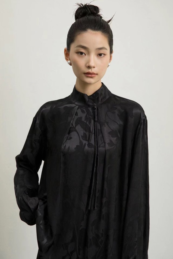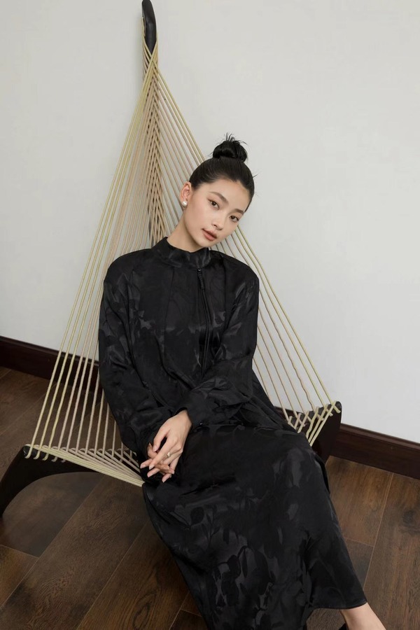 Le Malene 新中式黑色缎面提花连衣裙 18828