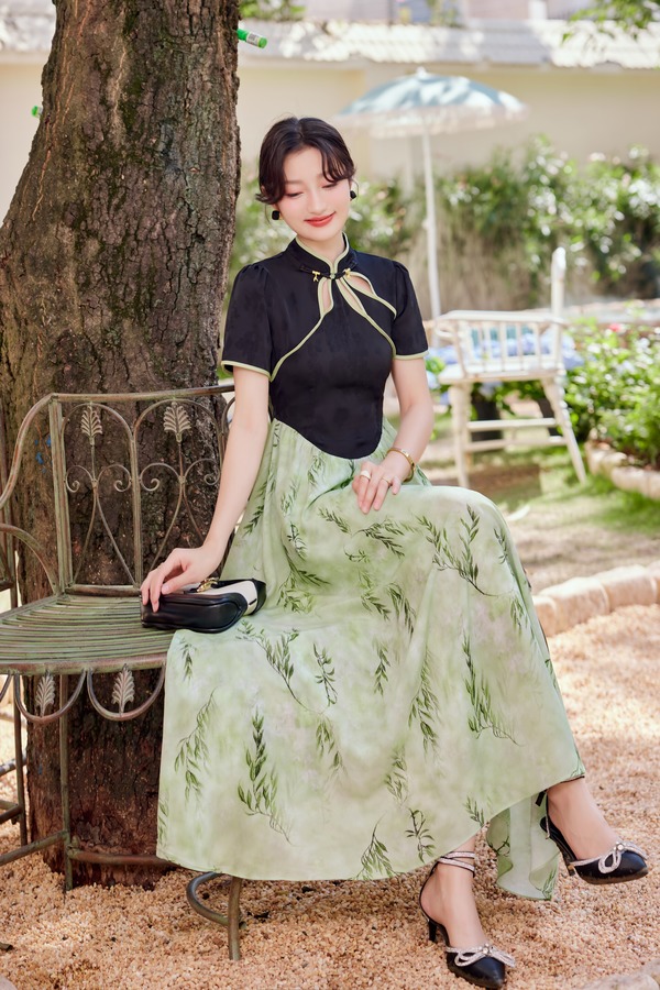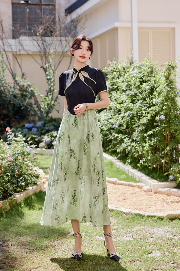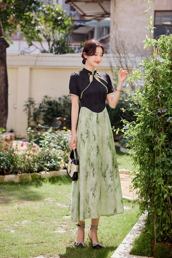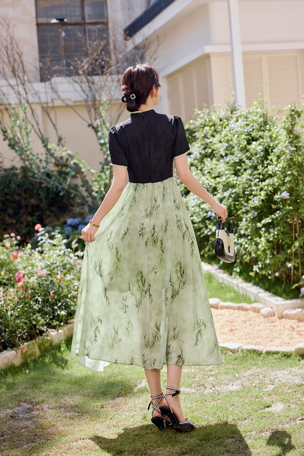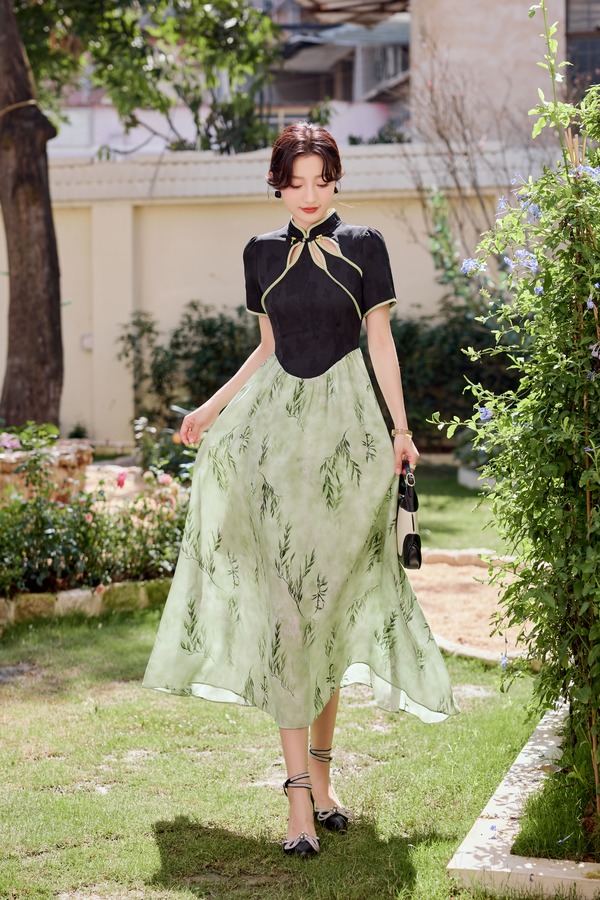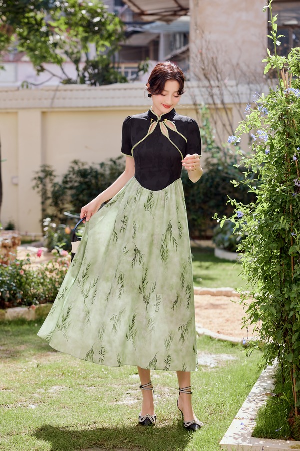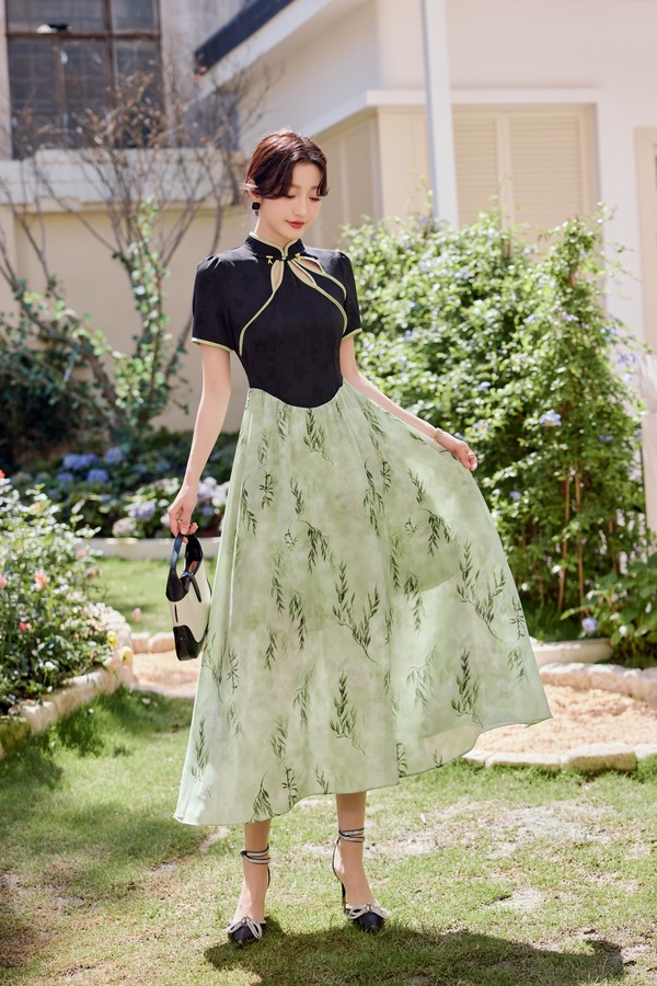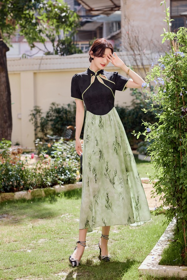 Le Malene 新中式旗袍领镂空拼接式连衣裙 20261