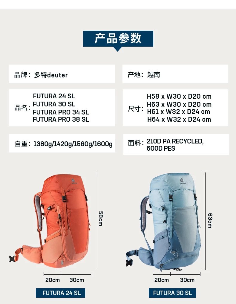 多特Deuter女款福特拉进口双肩包徒步登山包轻大容量运动背包女