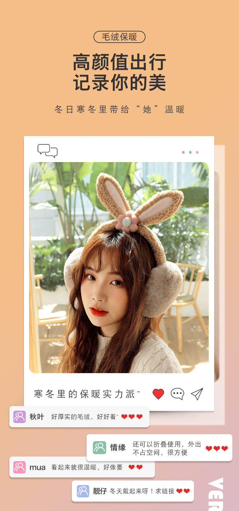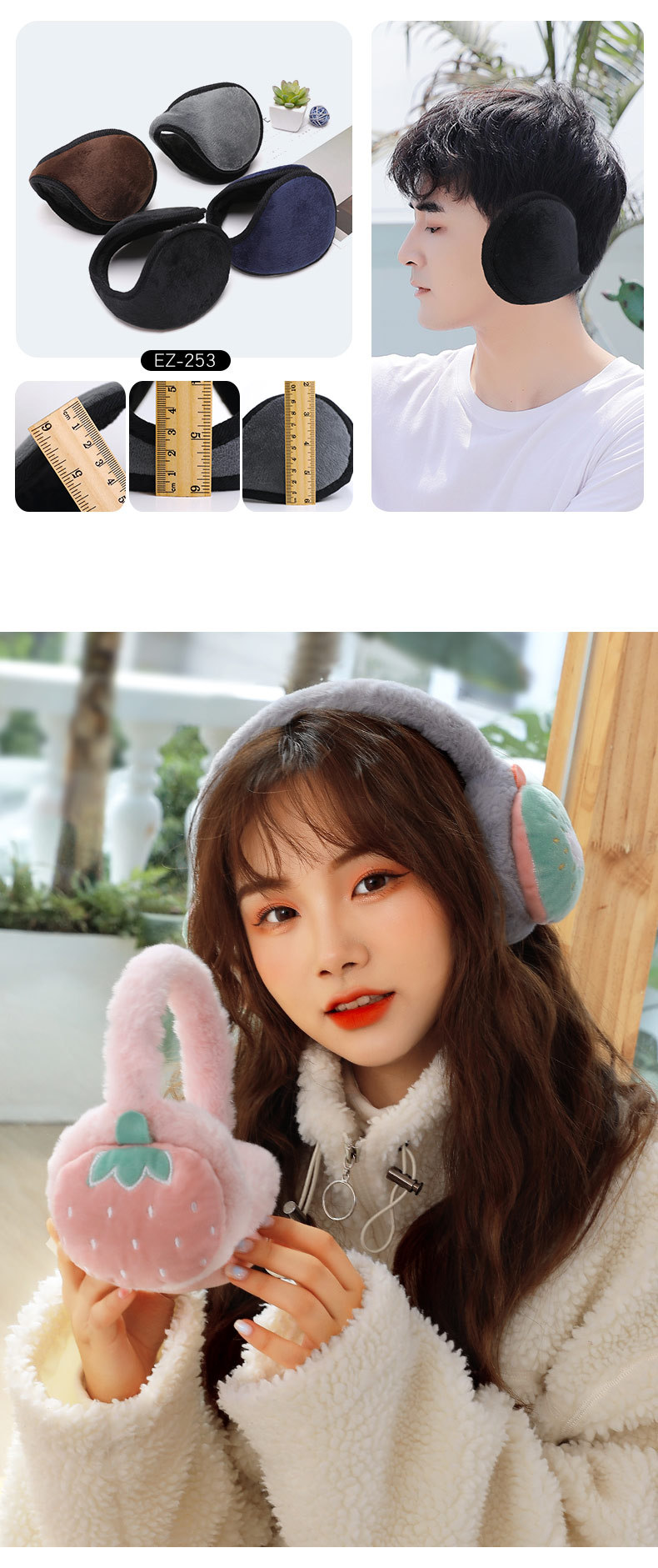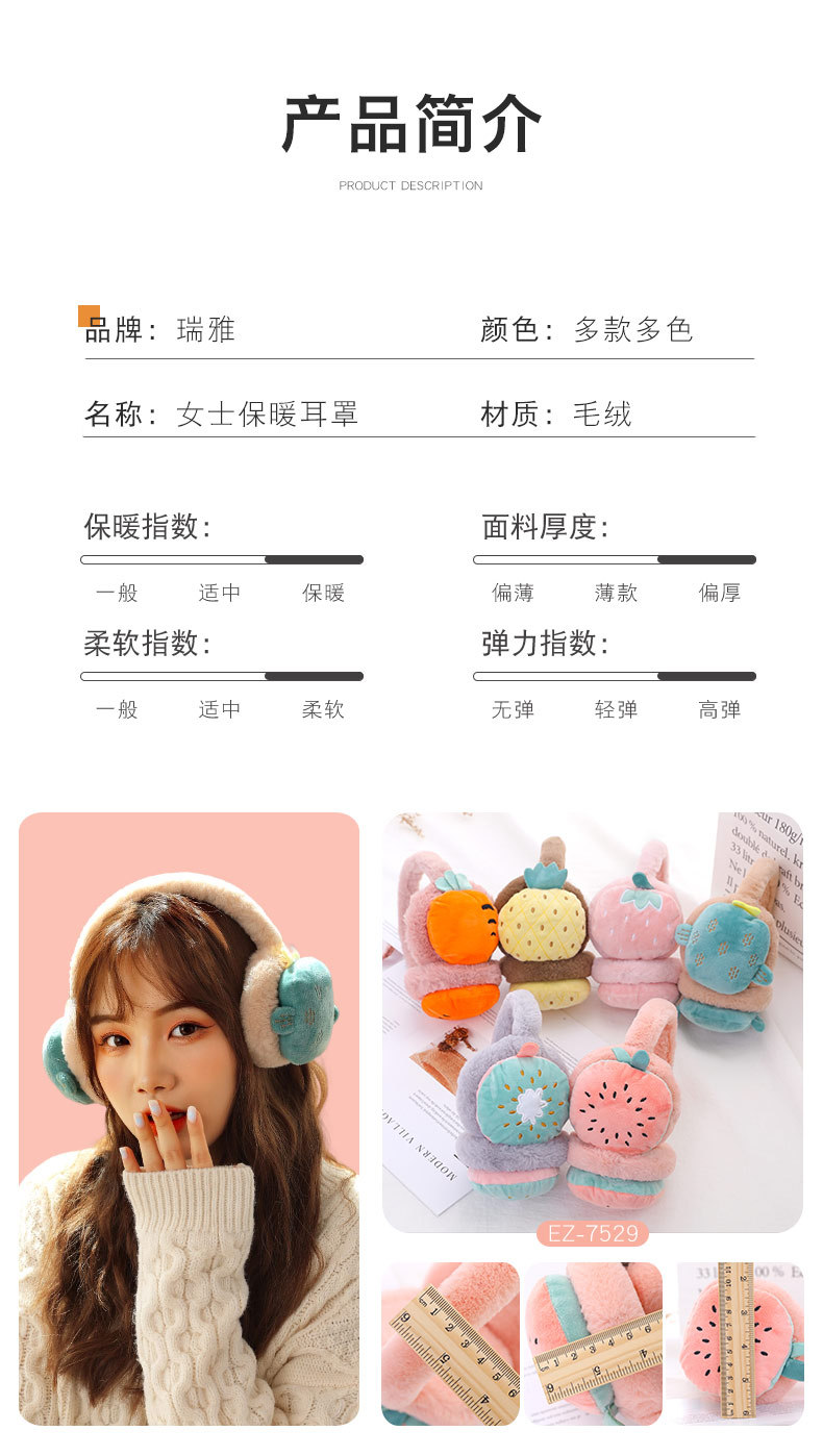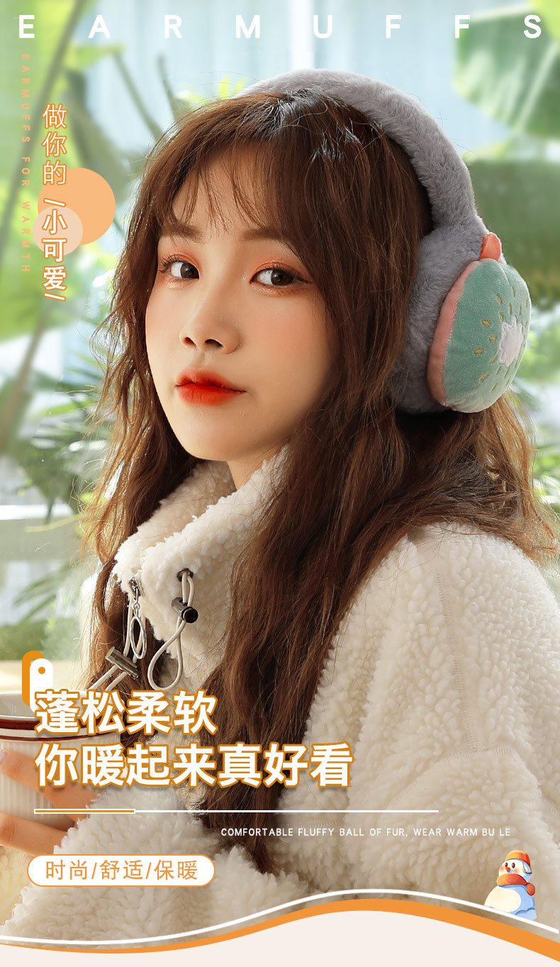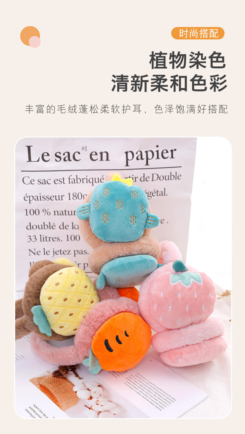【小萌趣保暖耳罩!蓬松保暖不透风】女士儿童可调节水果耳罩 冬季保暖折叠护耳套耳暖卡通-QQ