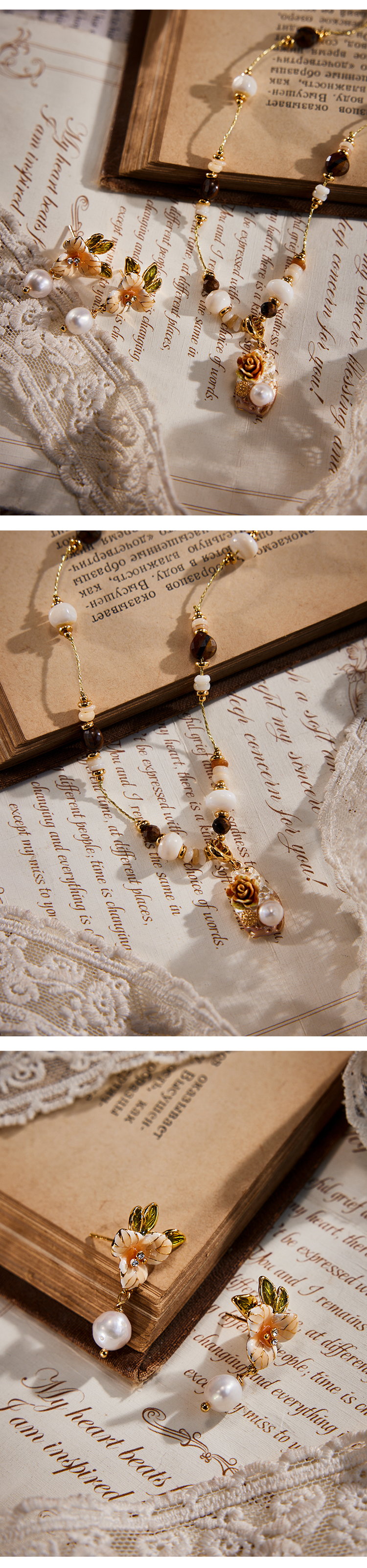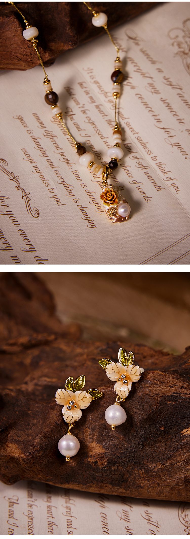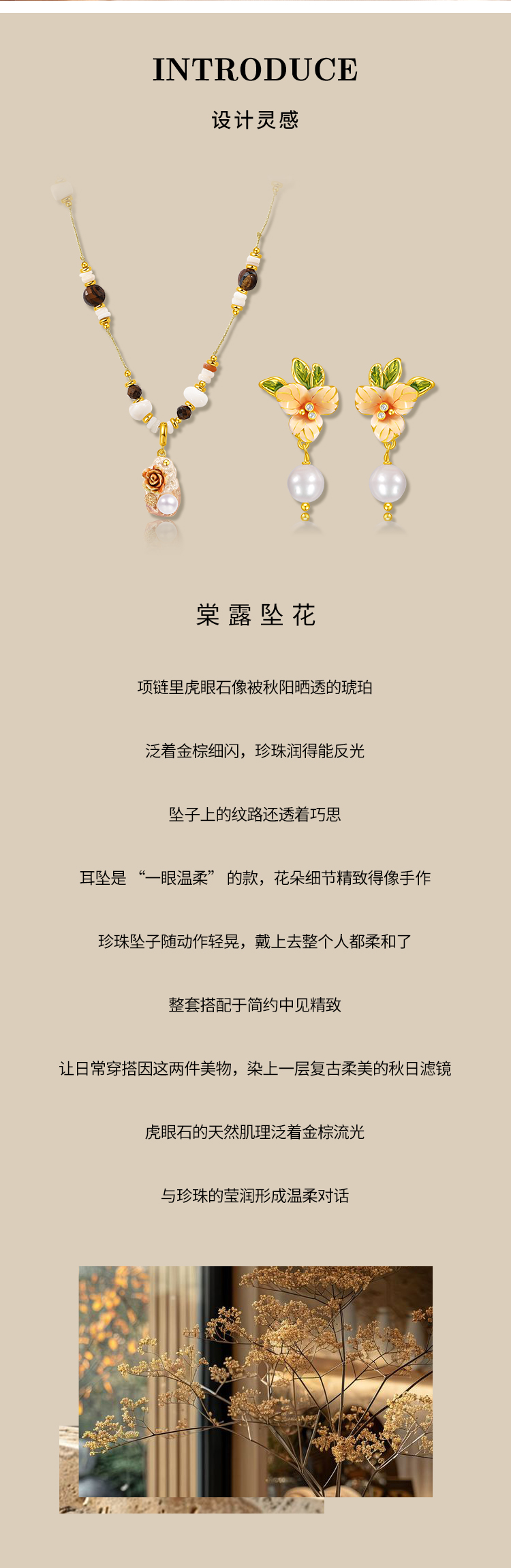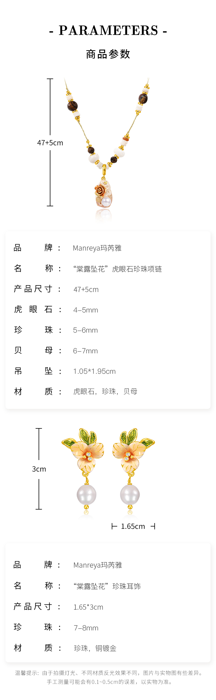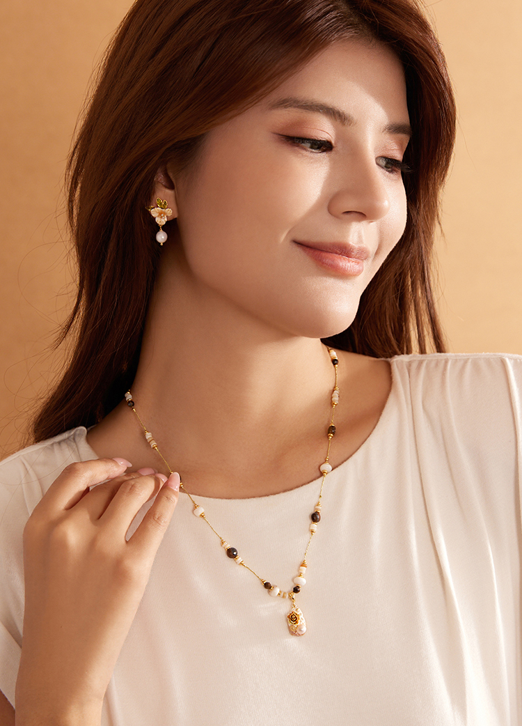 Manreya玛芮雅“棠露坠花”虎眼石珍珠项链、耳饰|虎眼石,珍珠,贝母