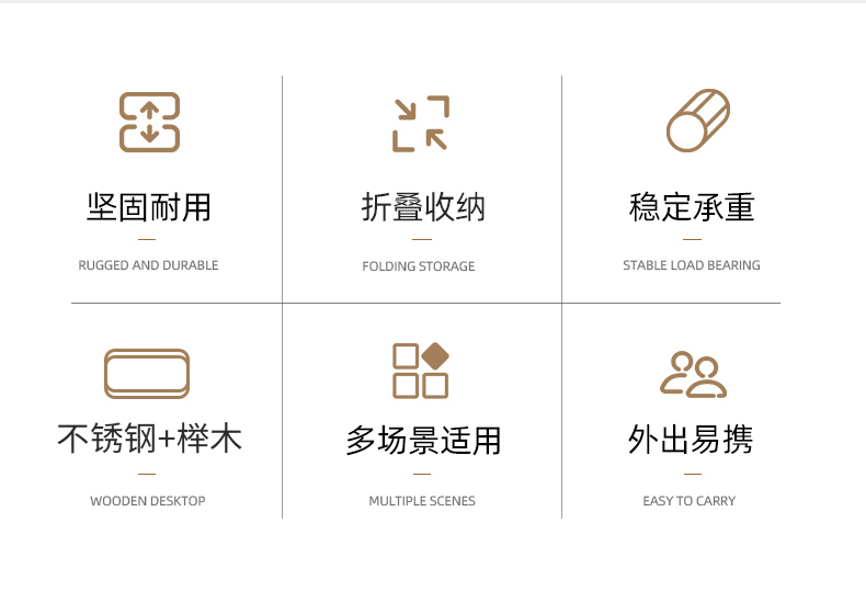 骆驼户外精致露营便携不锈钢折叠桌摆摊夜市野餐桌子野营简易长桌 1J32350509