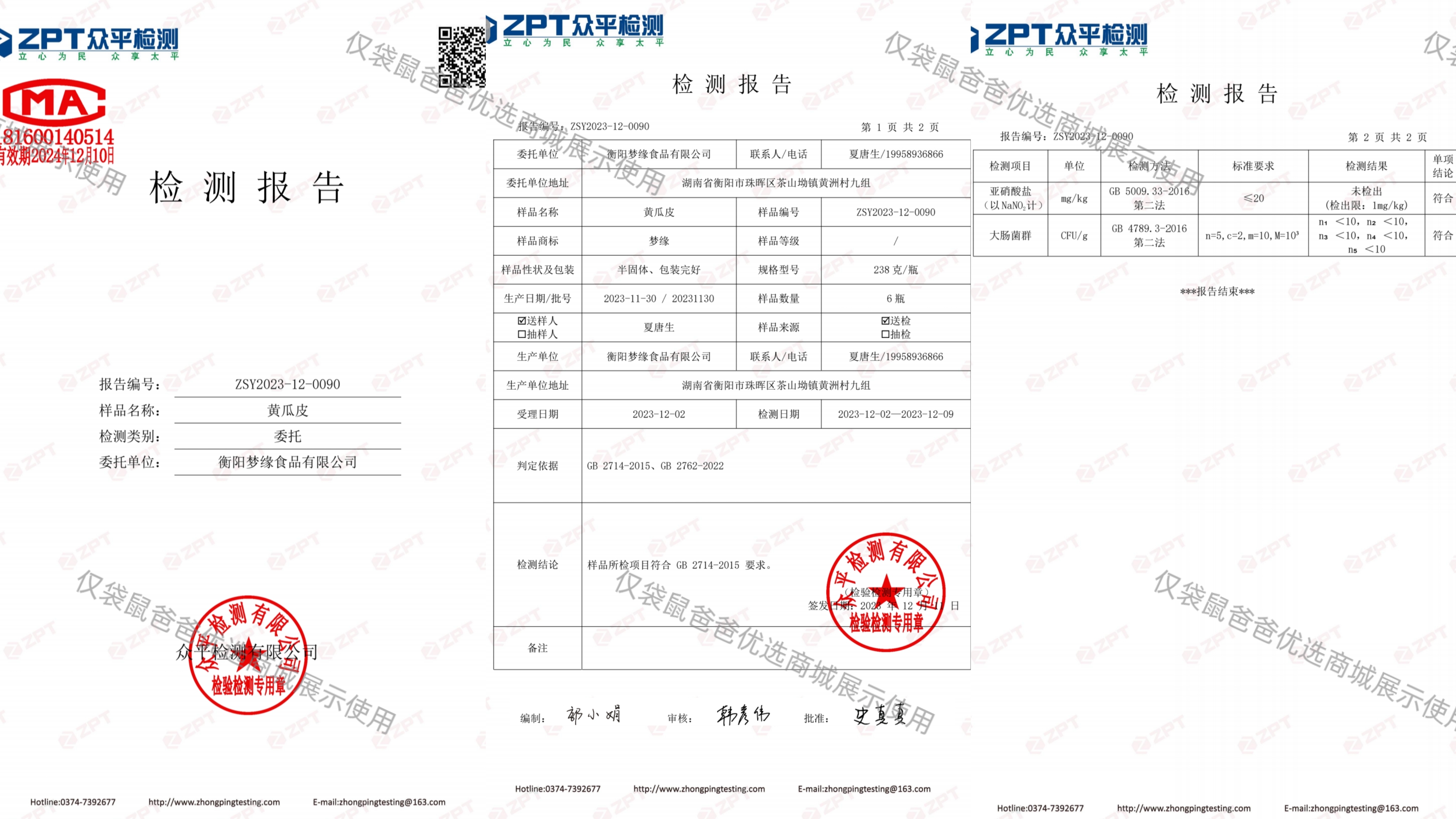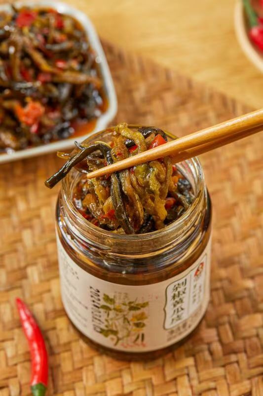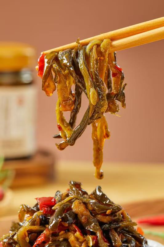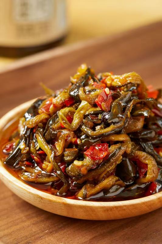 【配料表】:黄瓜干、红辣椒、一级菜籽油、香芝麻油、生抽(酱造酱油)、豆豉、蒜、生姜、食用盐、白砂糖、花生碎、芝麻、味精