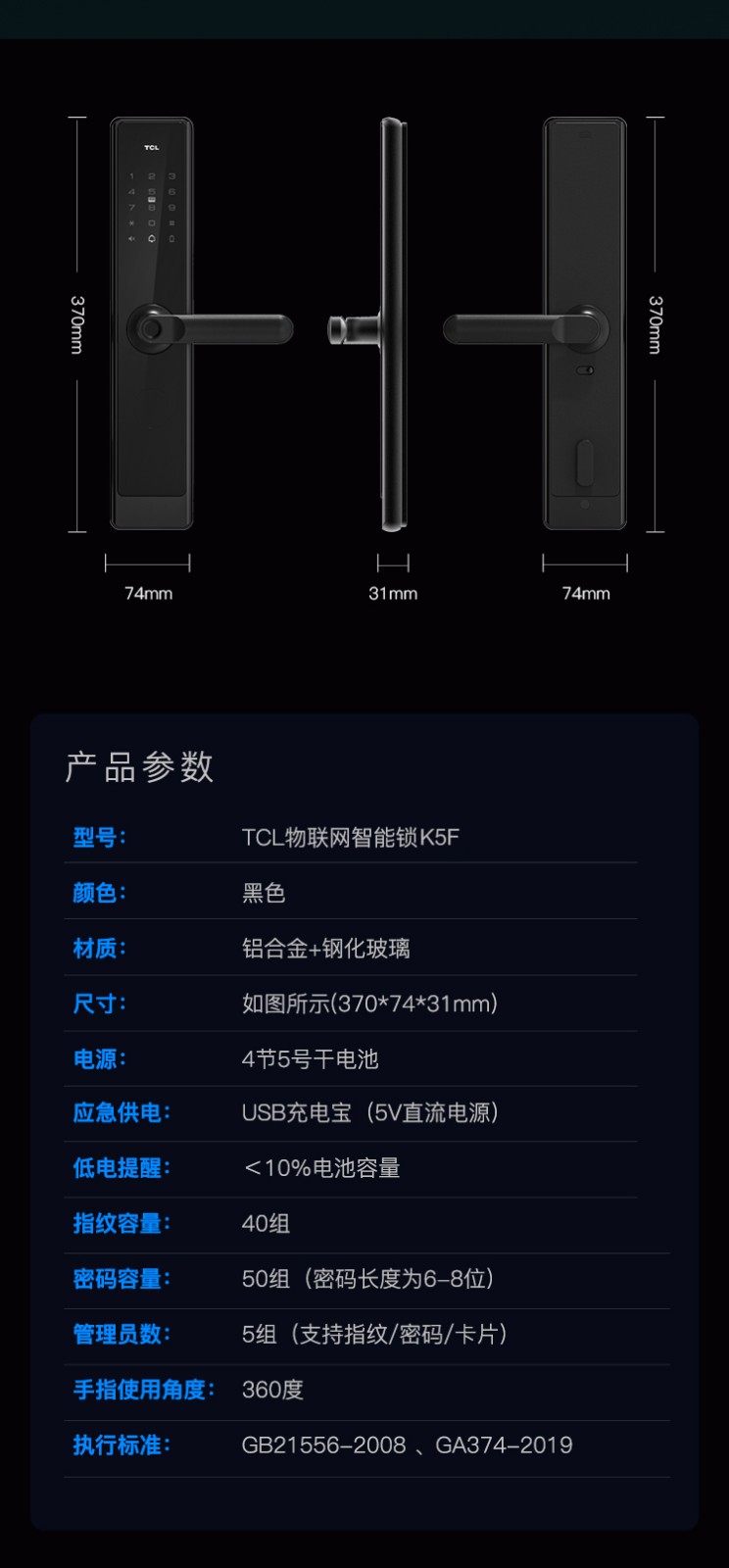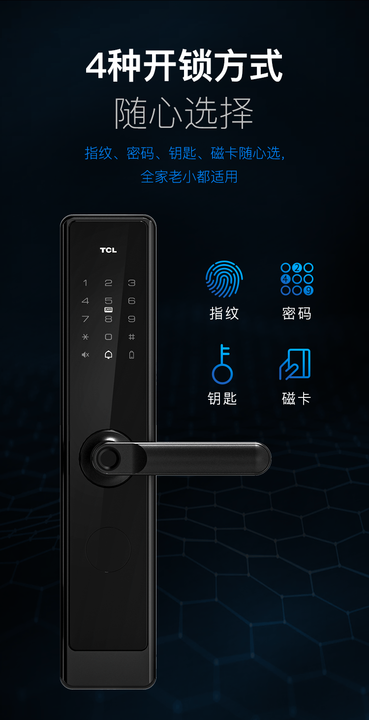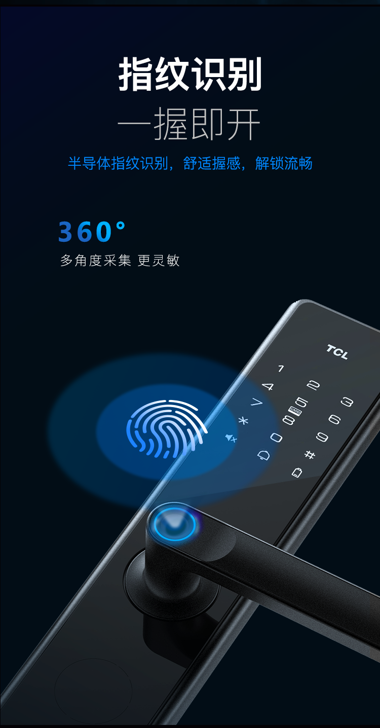 TCL-O2O K5F 下压式半自动把手款C级锁芯指纹锁 K5F 智能门锁