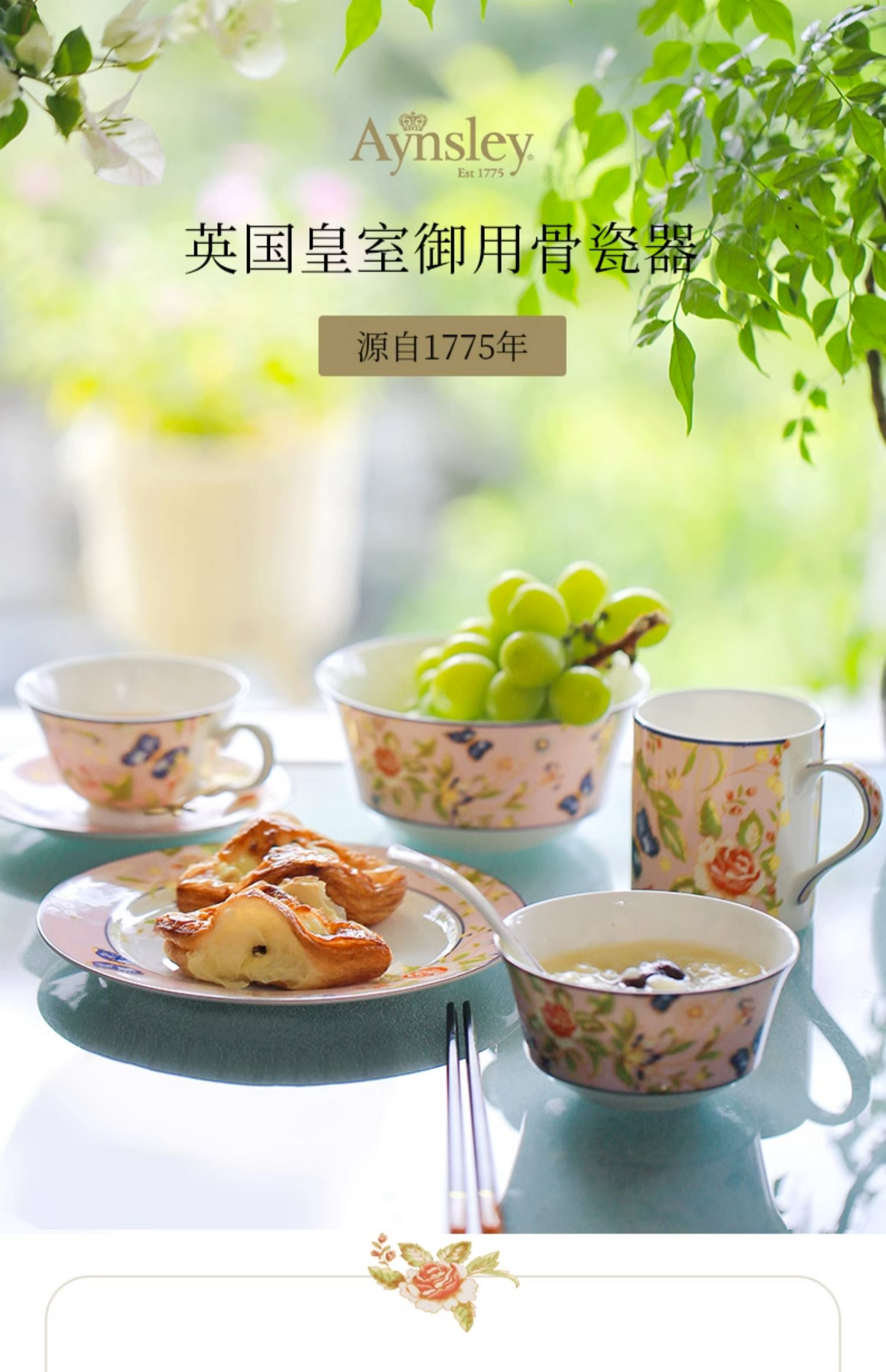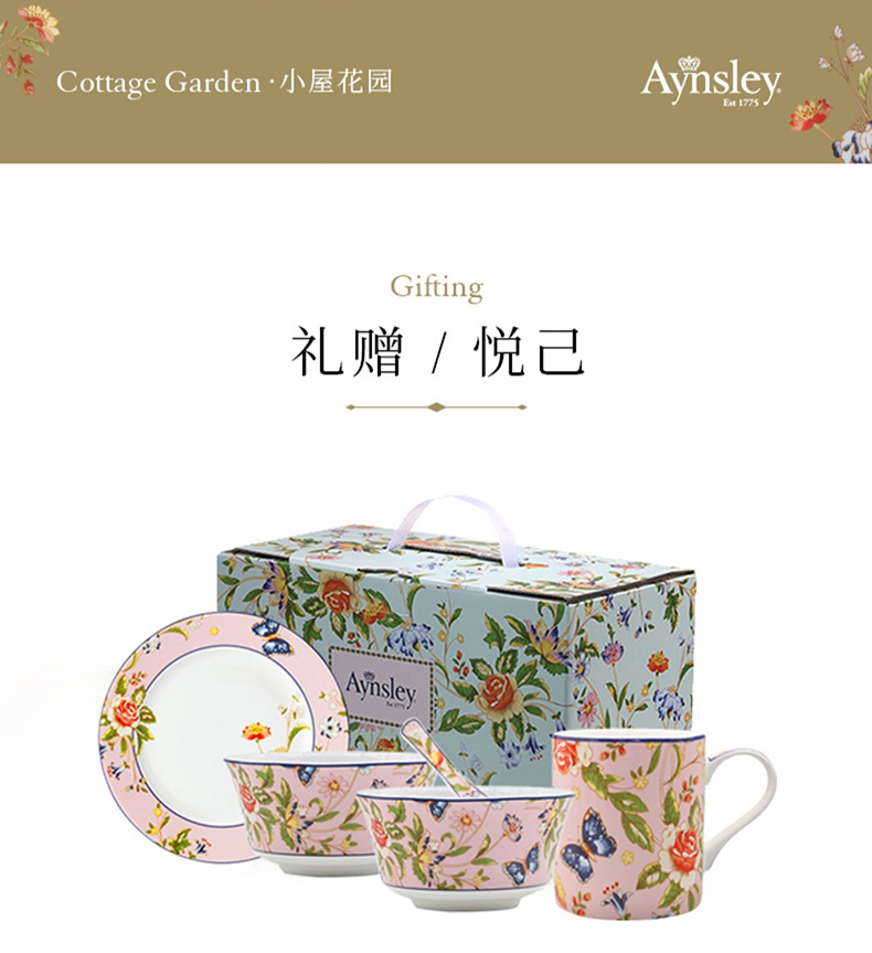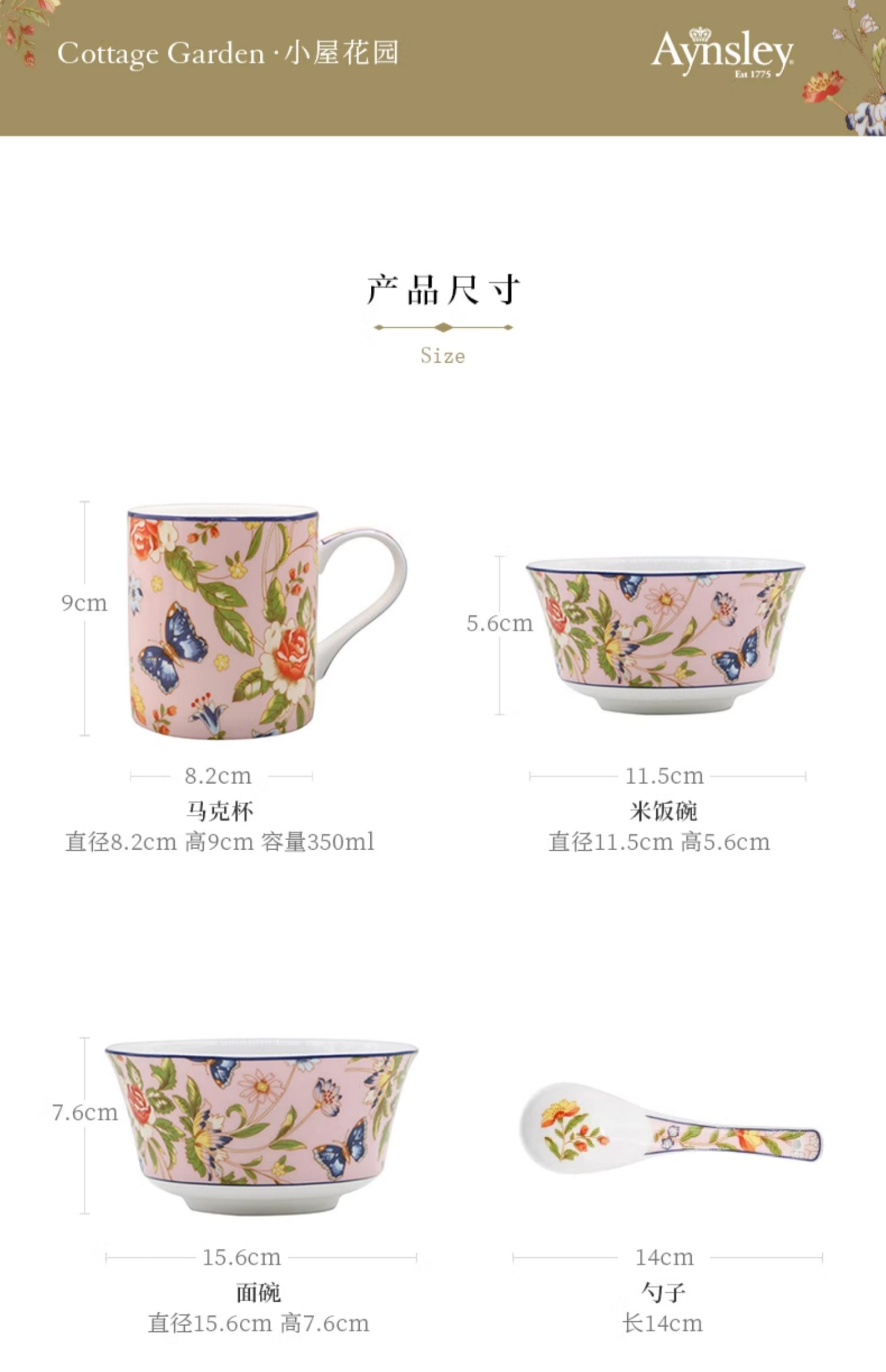 【样品特惠6折无原包装,仅1套,无货退款】英国Aynsley安斯丽小屋花园骨瓷家用饭碗面碗一人食碗盘餐具套装