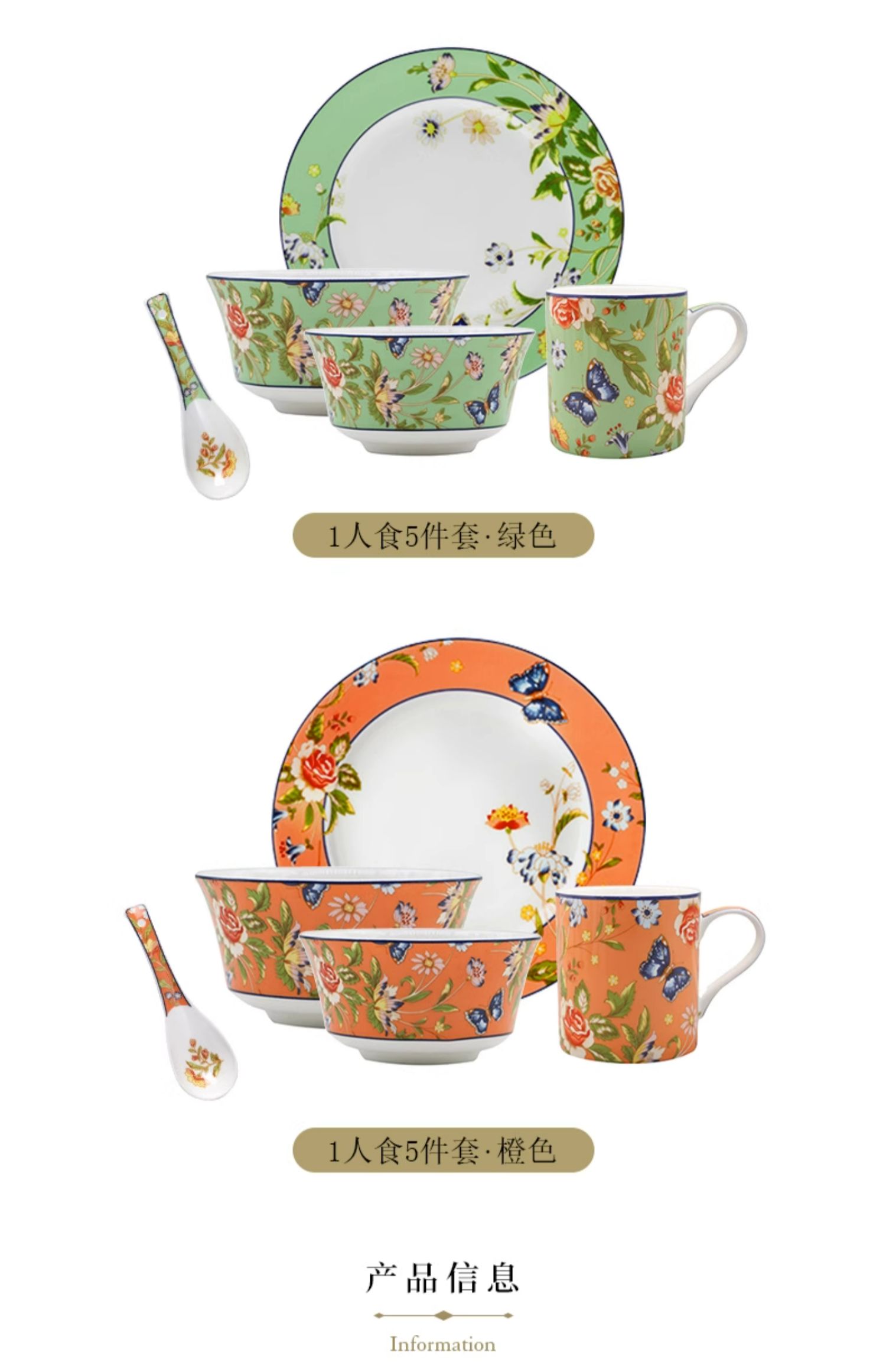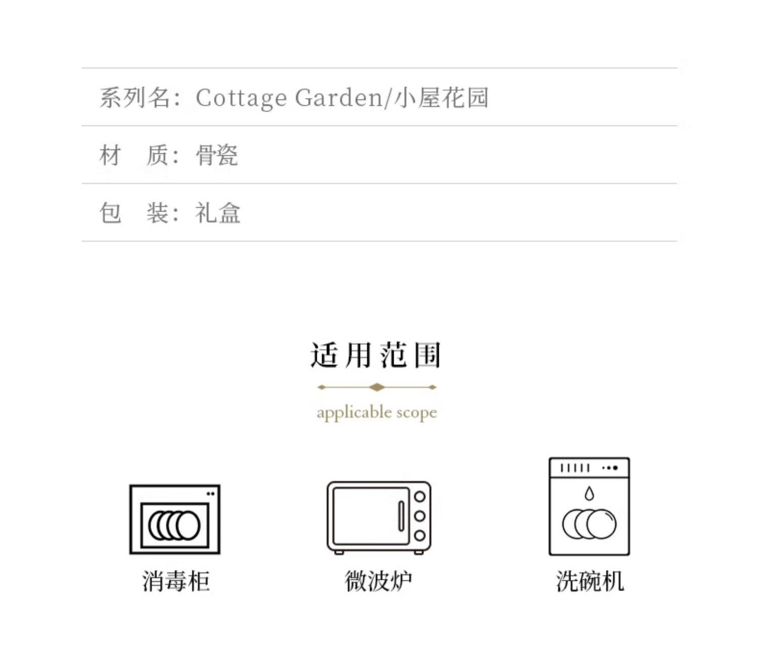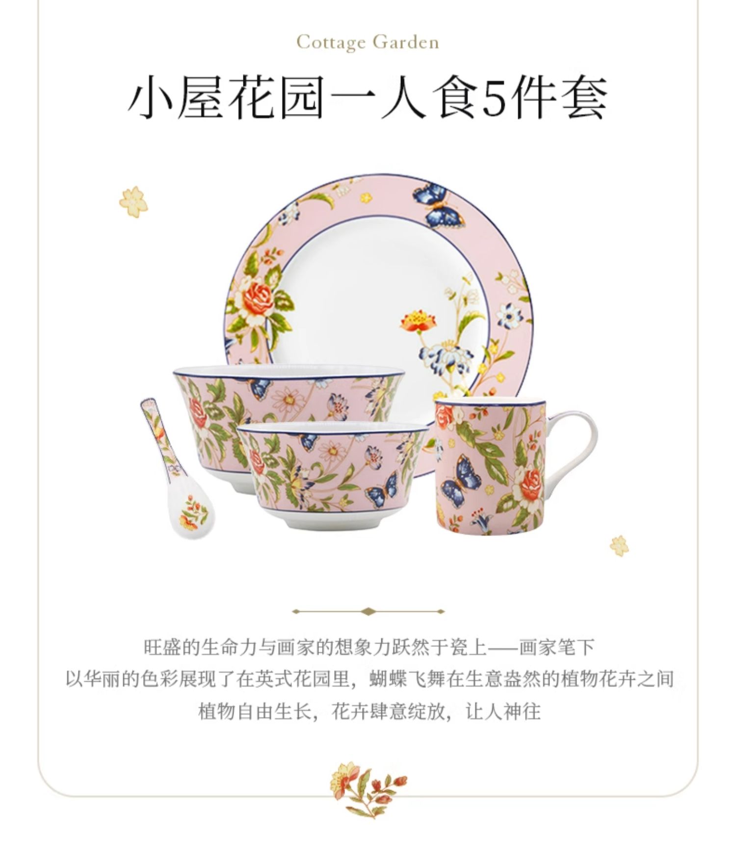 【样品特惠6折无原包装,仅1套,无货退款】英国Aynsley安斯丽小屋花园骨瓷家用饭碗面碗一人食碗盘餐具套装