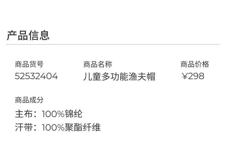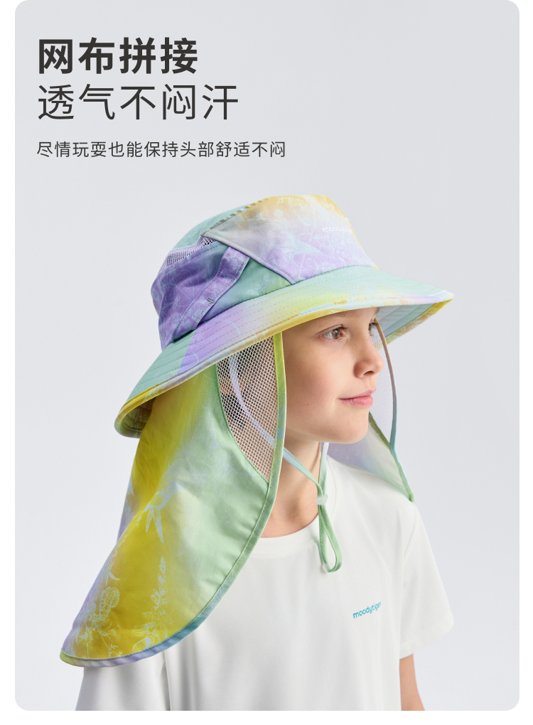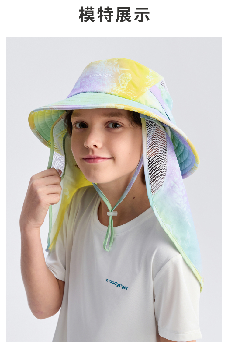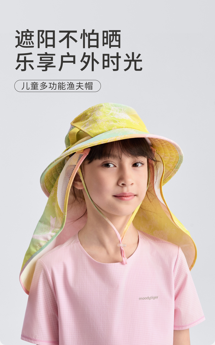moodytiger儿童25夏新款防晒户外运动多功能渔夫防晒帽52532404【DR暑假】