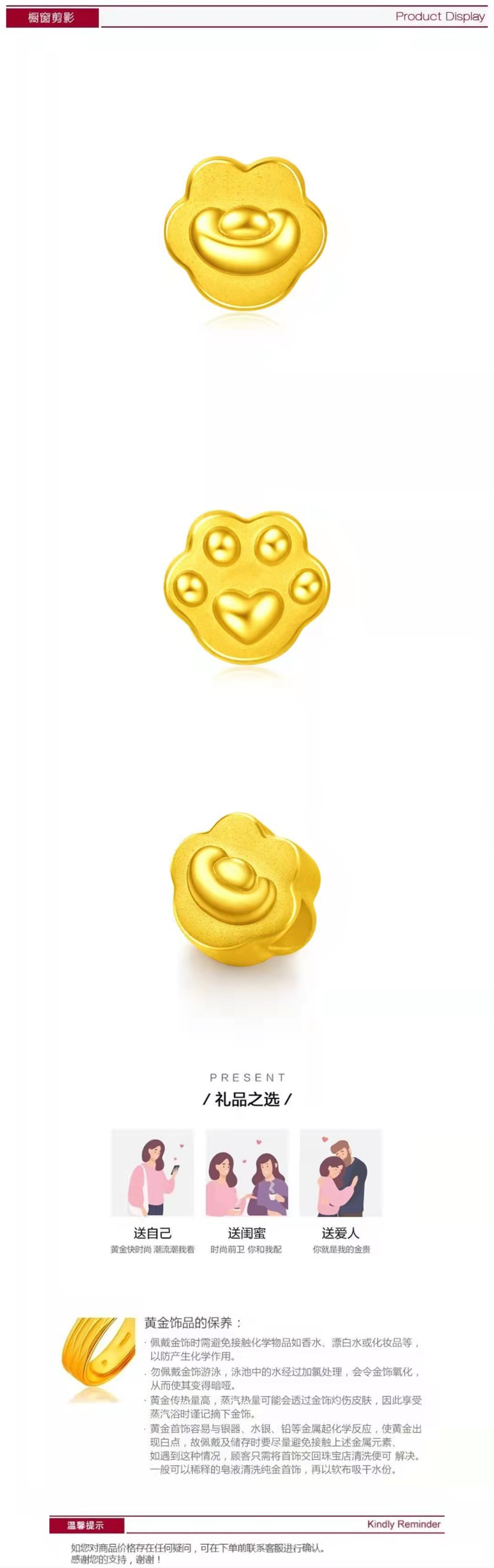 周大福咚咚仔与咕咕喵系列【抓住幸福】足金黄金转运珠(不配绳)R28853
