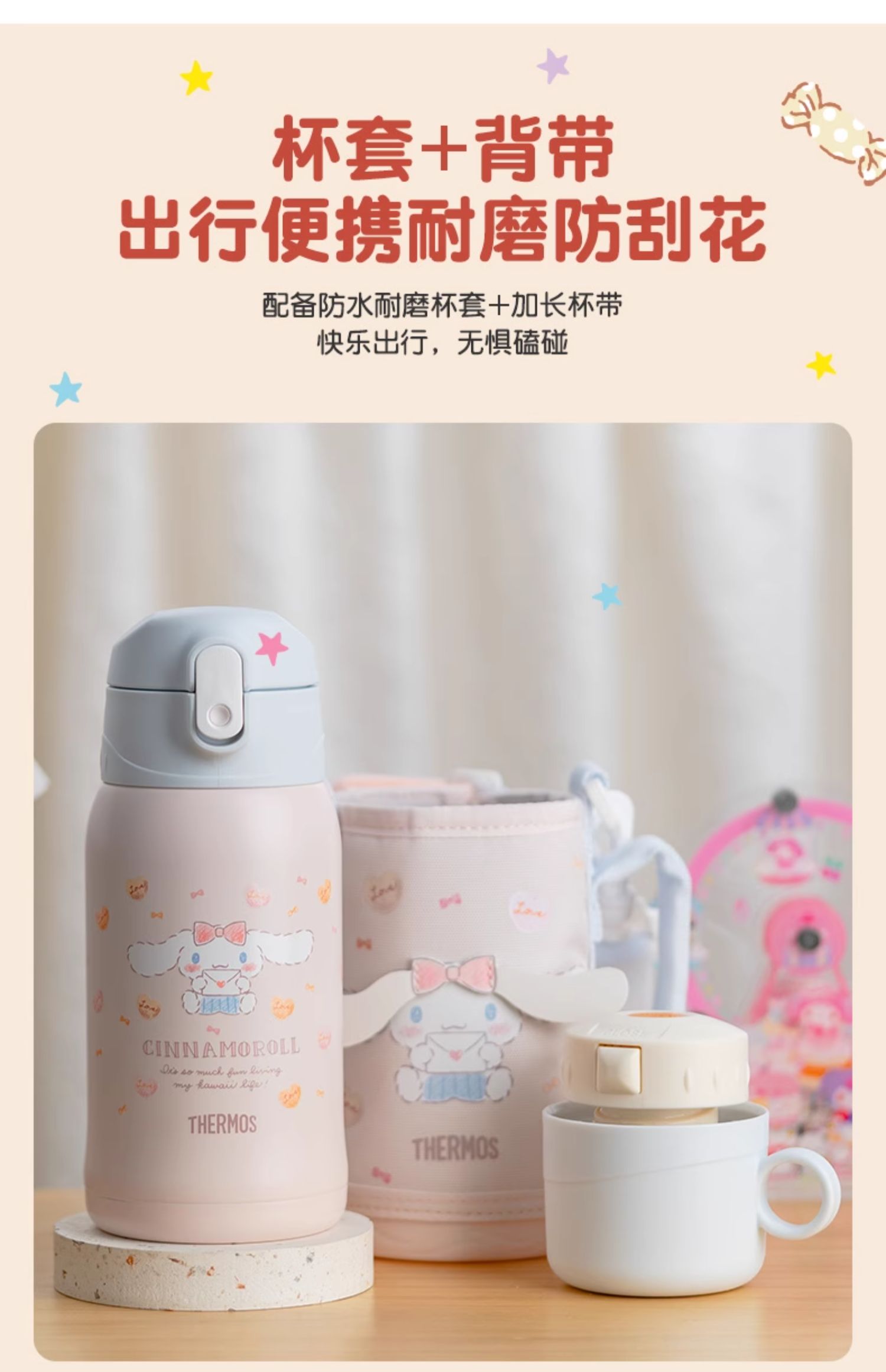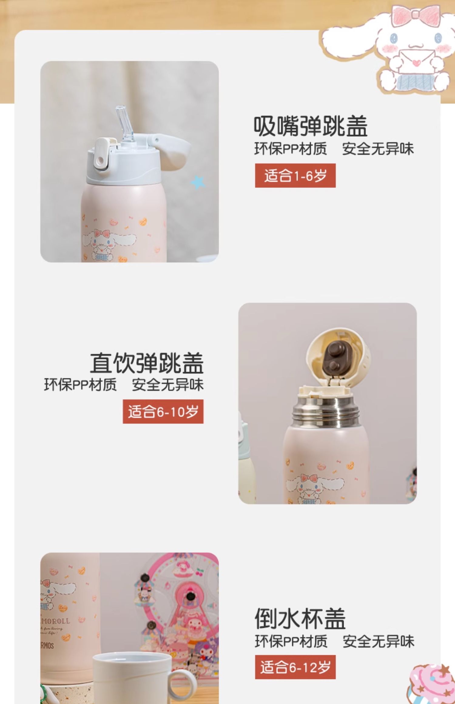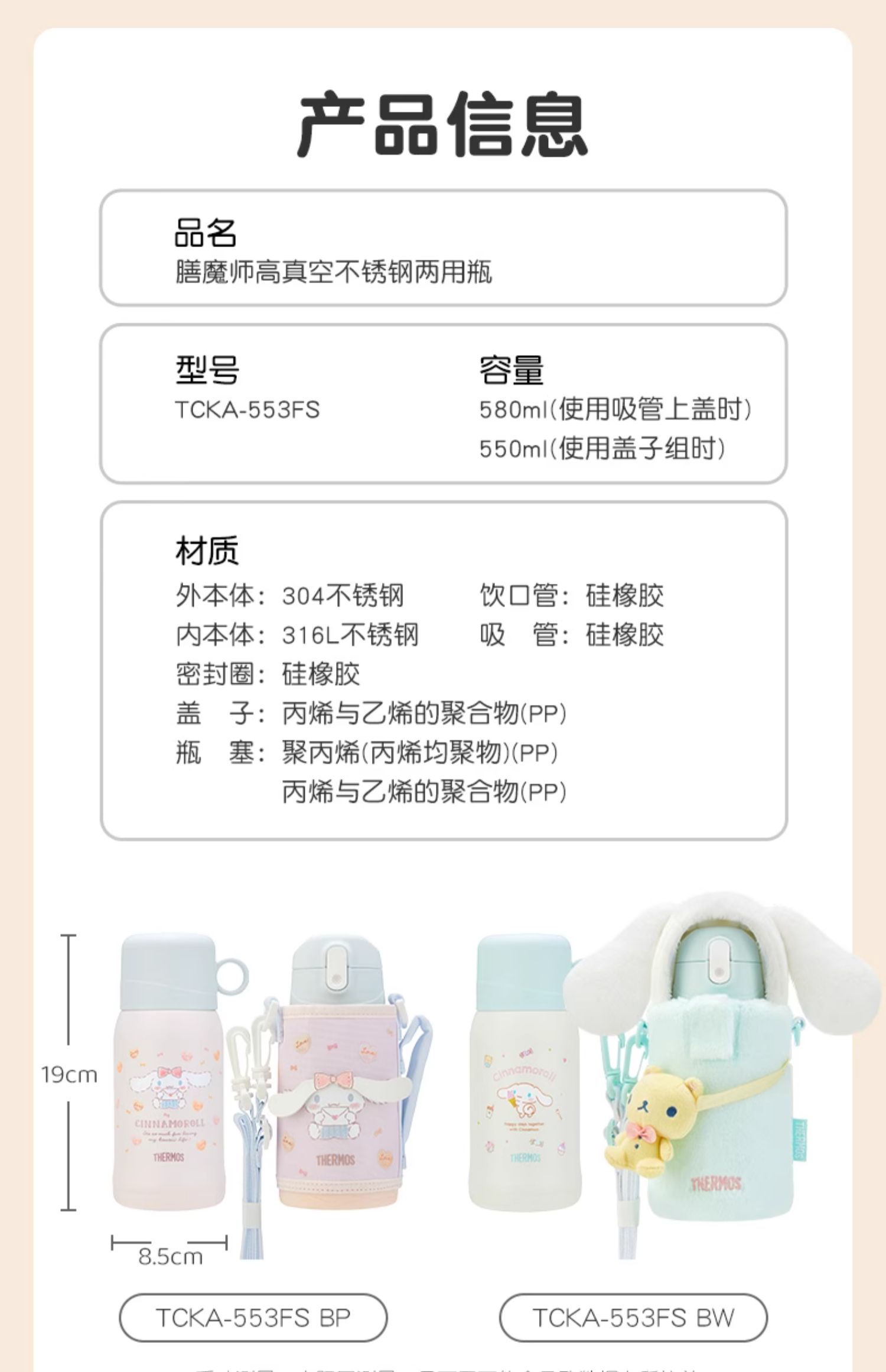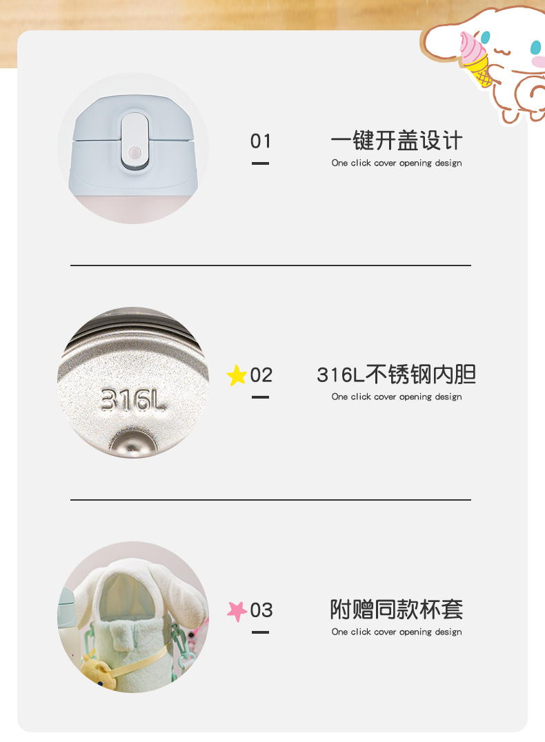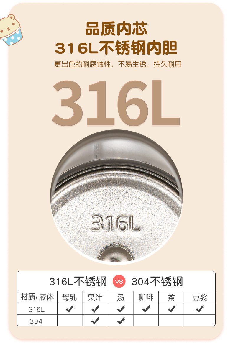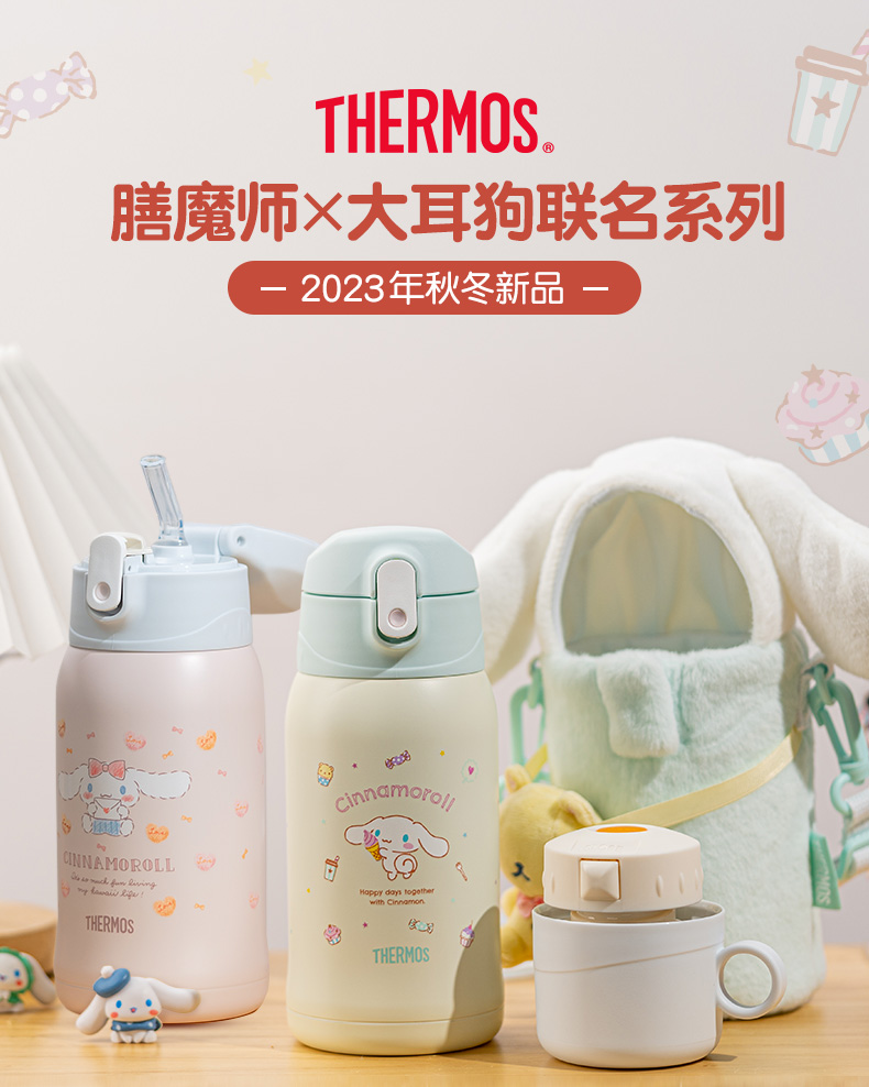 膳魔师儿童水杯上学专用316L不锈钢保温杯吸管杯直饮杯大耳狗