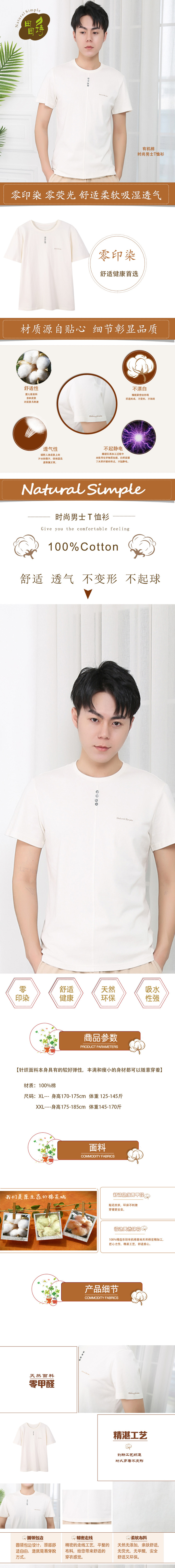 男休闲T恤衫(有机棉) XL/XXL 本白