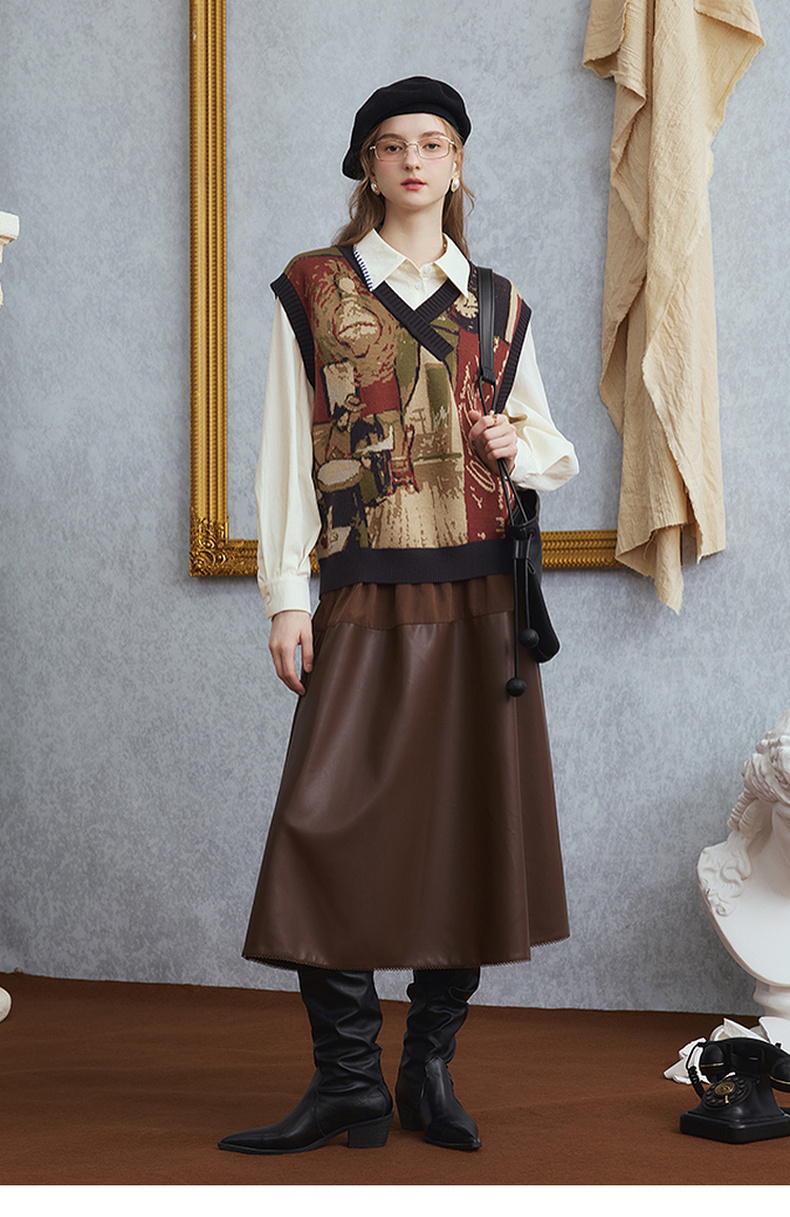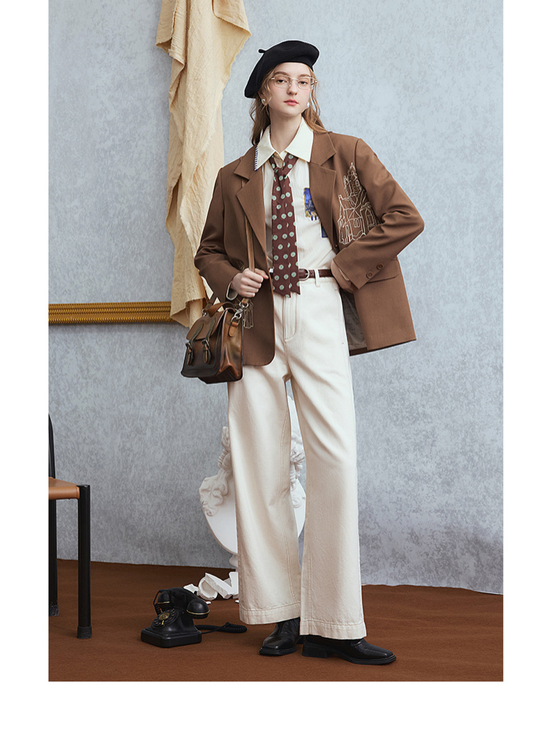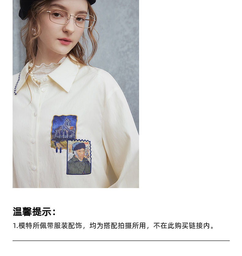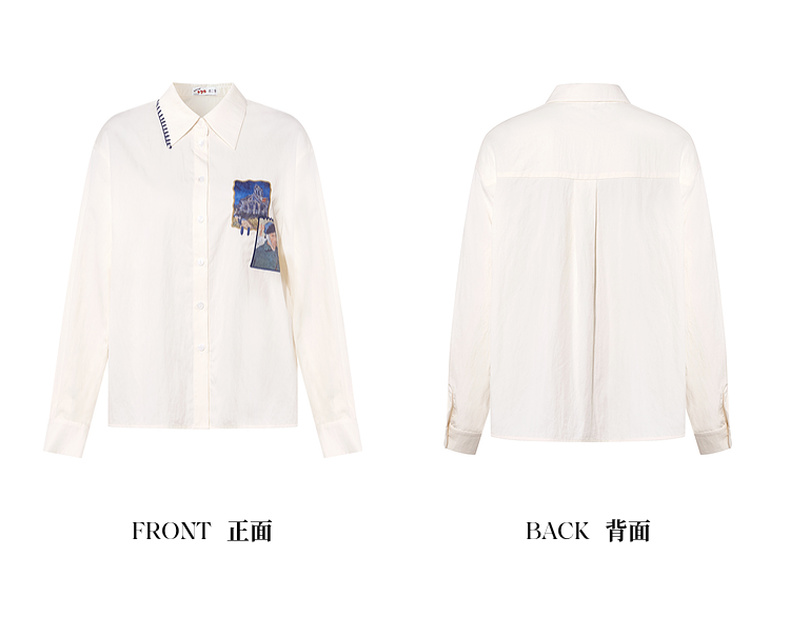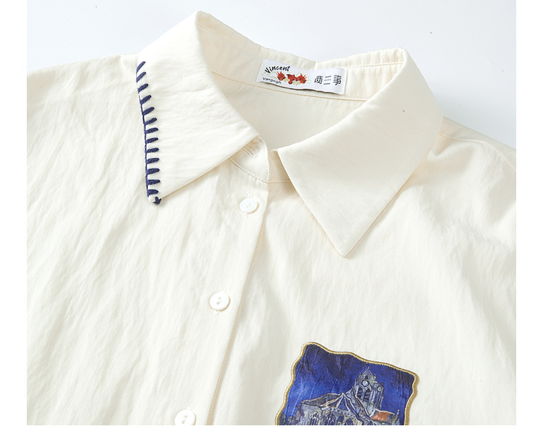 两三事梵高文艺 雪山牧歌 2025秋季新款贴布绣撞色绣边翻领衬衫女