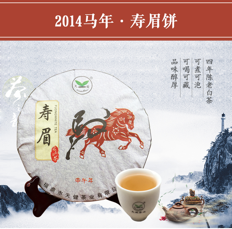【马年纪念版】天苗白茶 2014年一级寿眉饼 福鼎白茶 357g/饼(天猫同款)