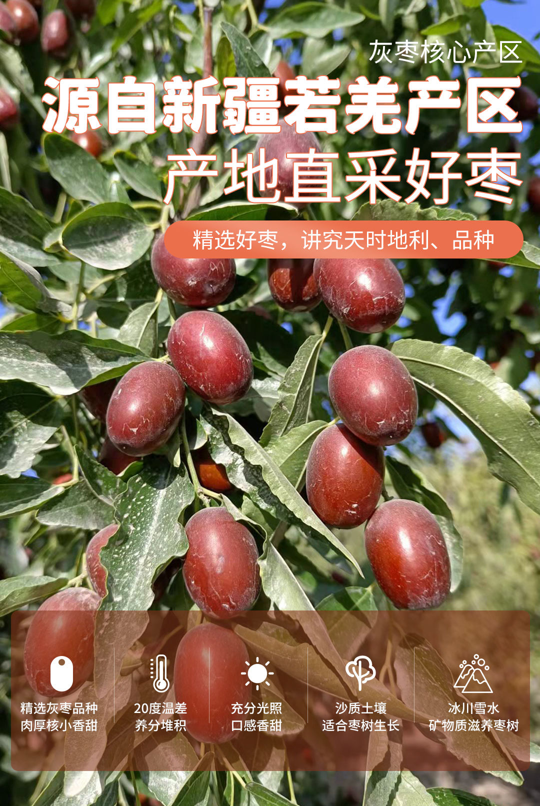 【若羌皮山双产区灰枣 】买4斤送1斤、买7斤送2斤!天山雪水灌溉 自然挂干不催熟 肉厚皮薄核小口感甜 孕妇 小孩 也能放心吃