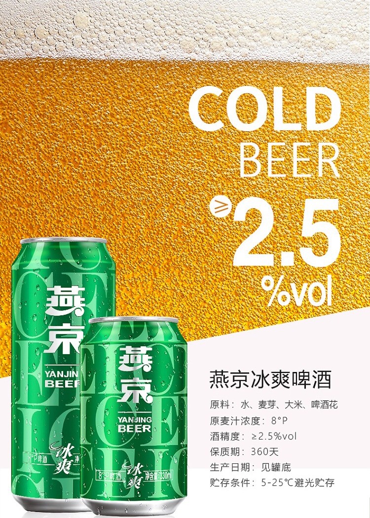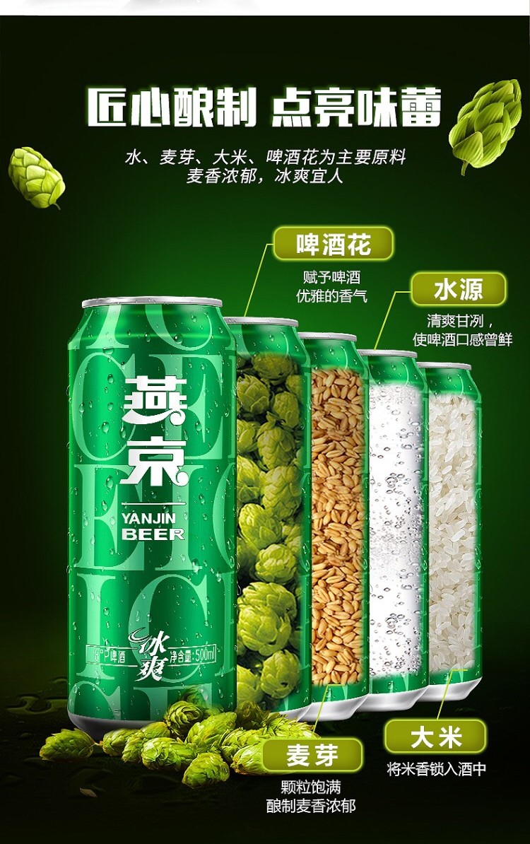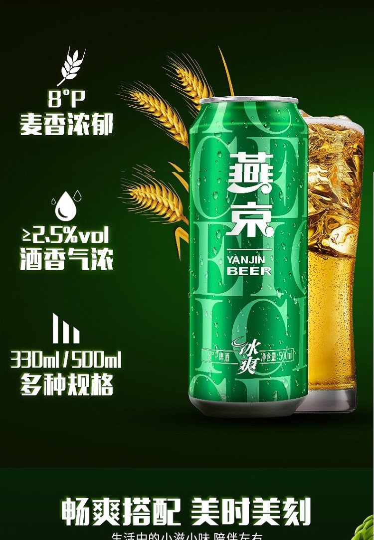 燕京啤酒 绿罐 冰爽 8度 整箱 500mL*12瓶
