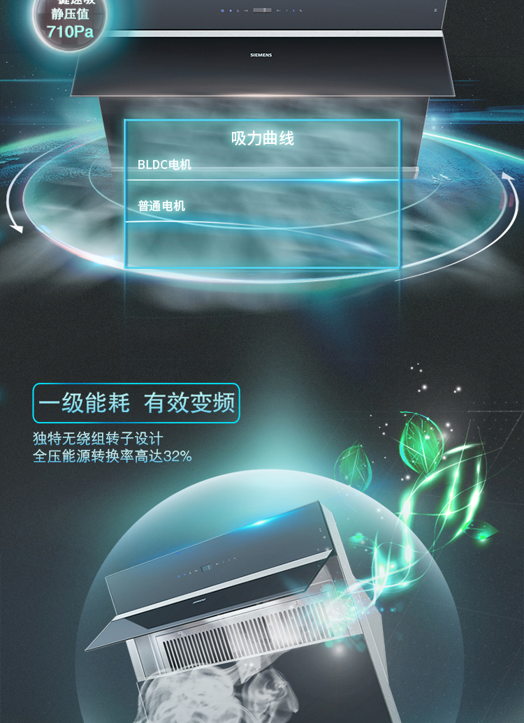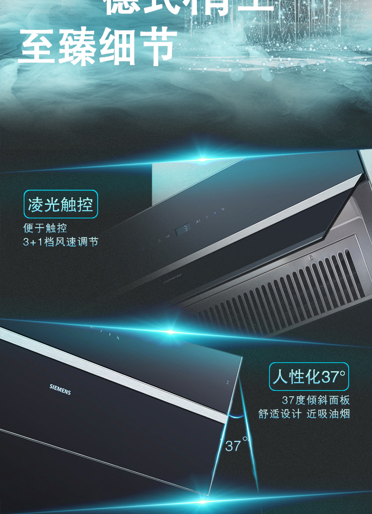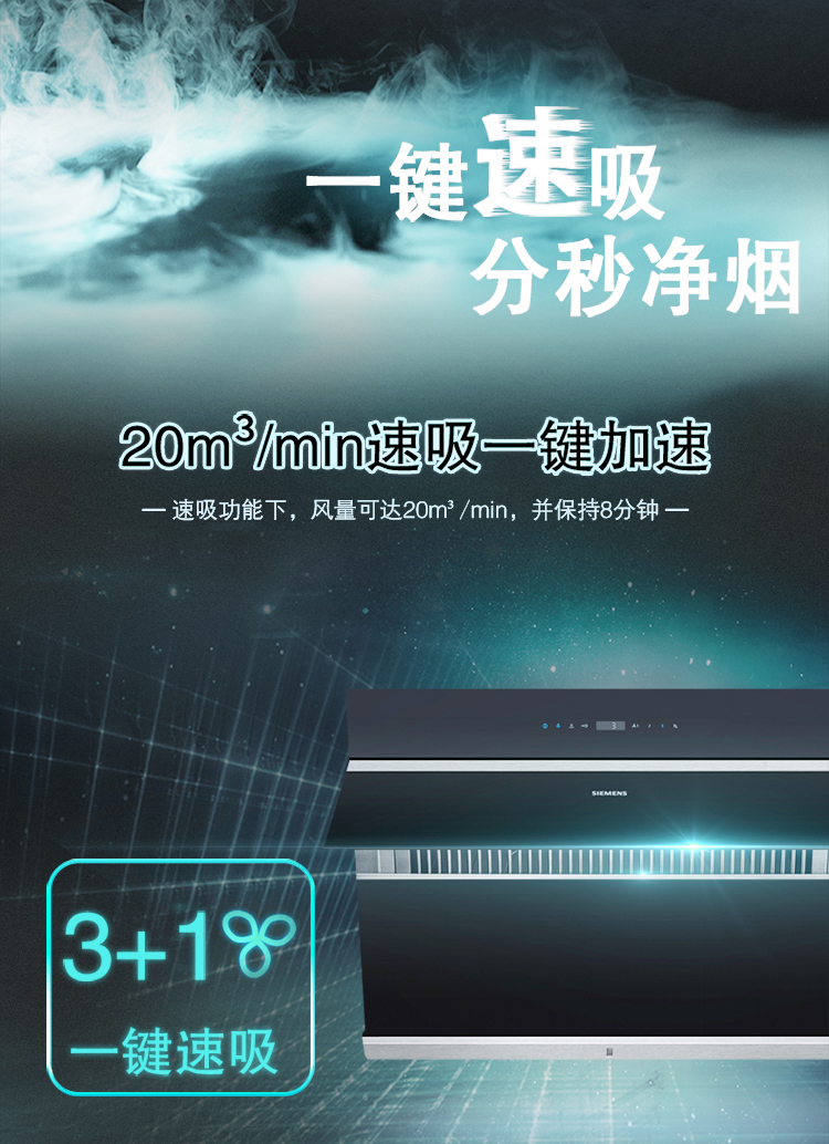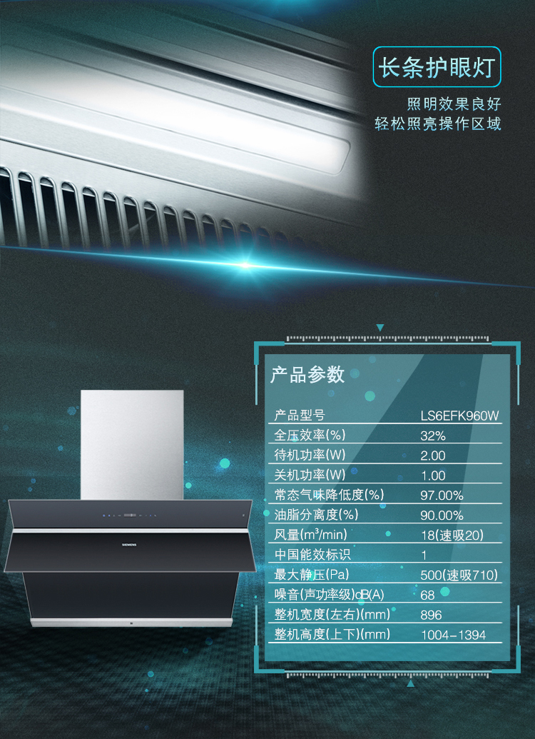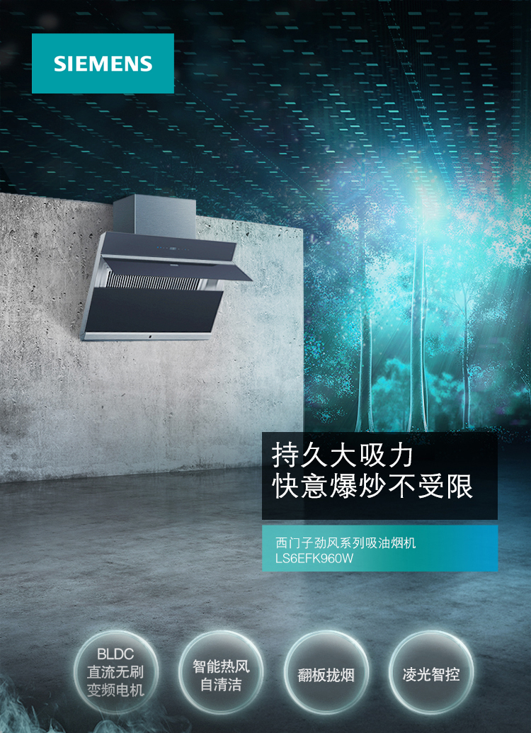西门子(SIEMENS)壁挂式侧吸式抽油烟机 大风压吸油烟机20m³/min 热风自清洁大吸力智能联动 LS6EFK960W