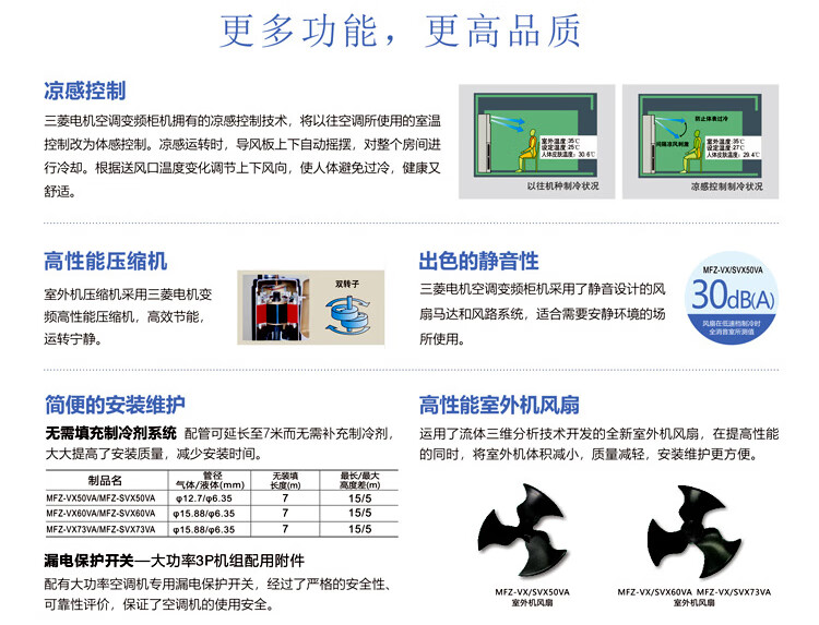三菱电机变频二级省电静音舒适客厅立式柜机空调3匹 MFZ-VX73VA