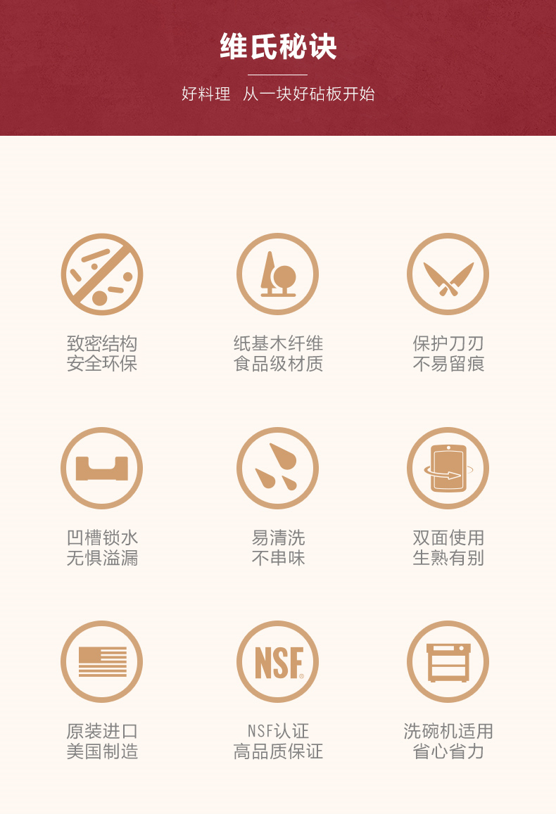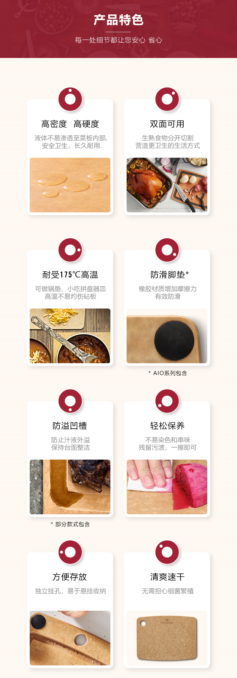 Victorinox维氏美国制造木纤维砧板原木色砧板切菜熟食板厨房家用板案板菜板-YHD