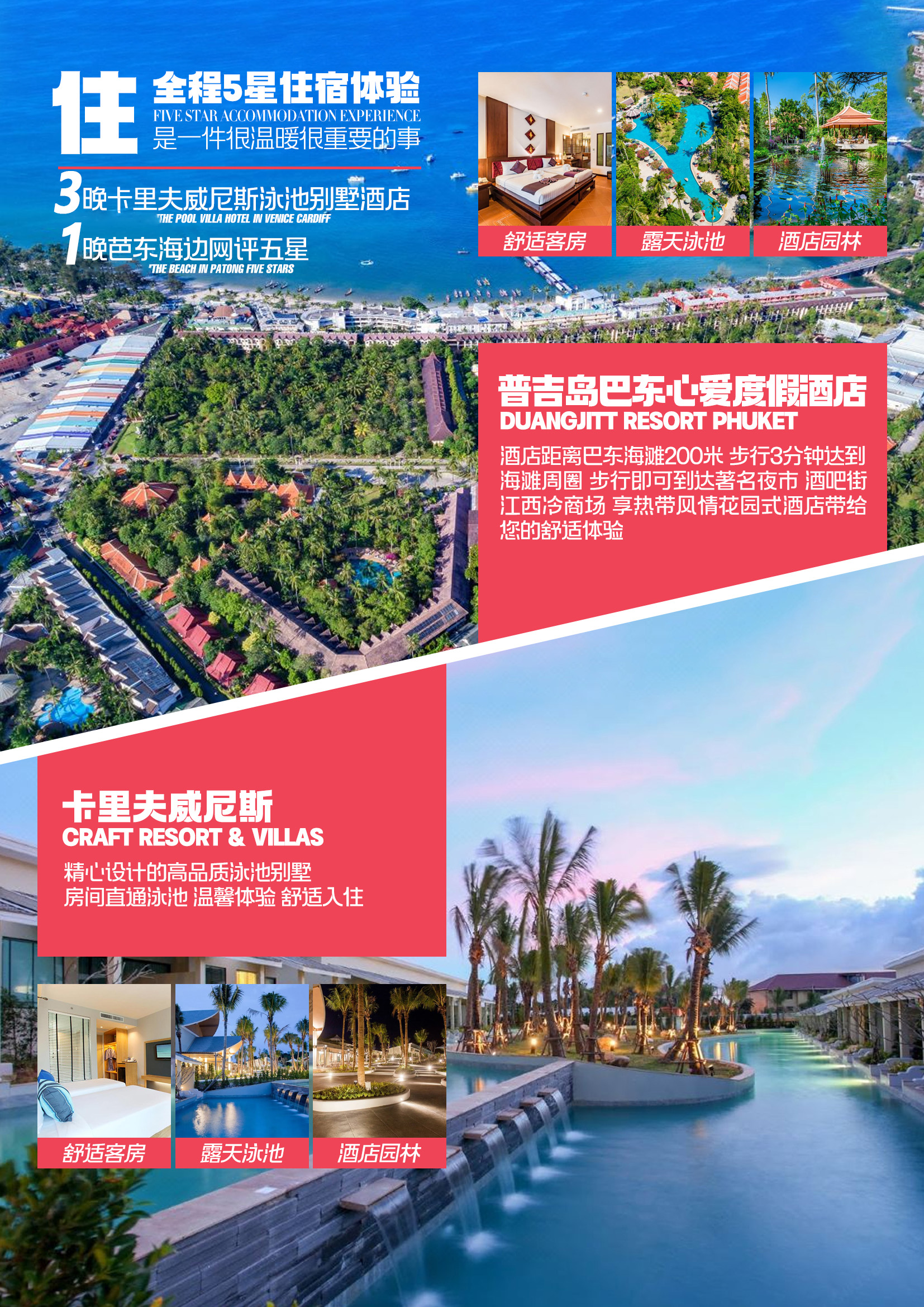 · 住宿:芭东海滩网评五星酒店,双床房(住2人)