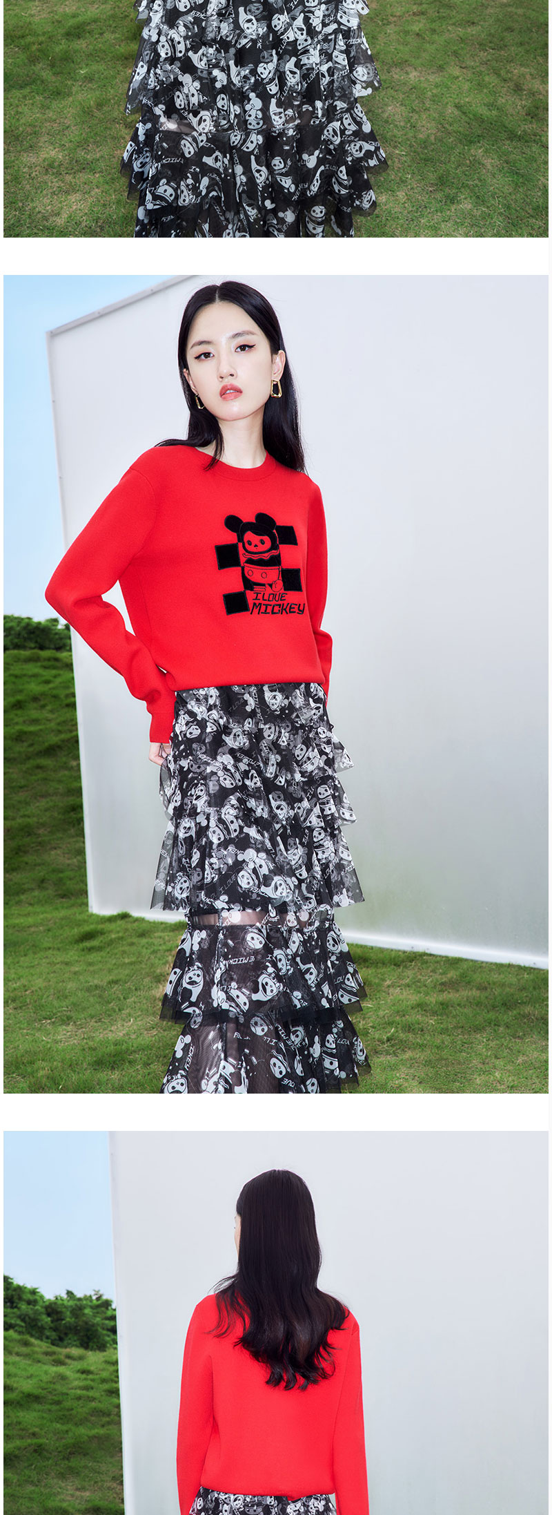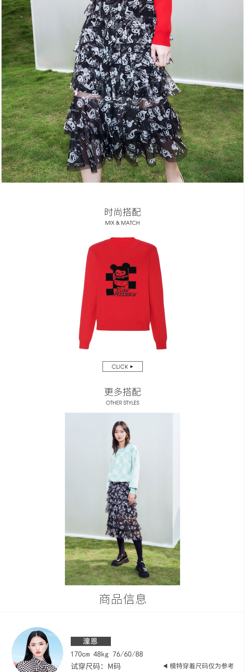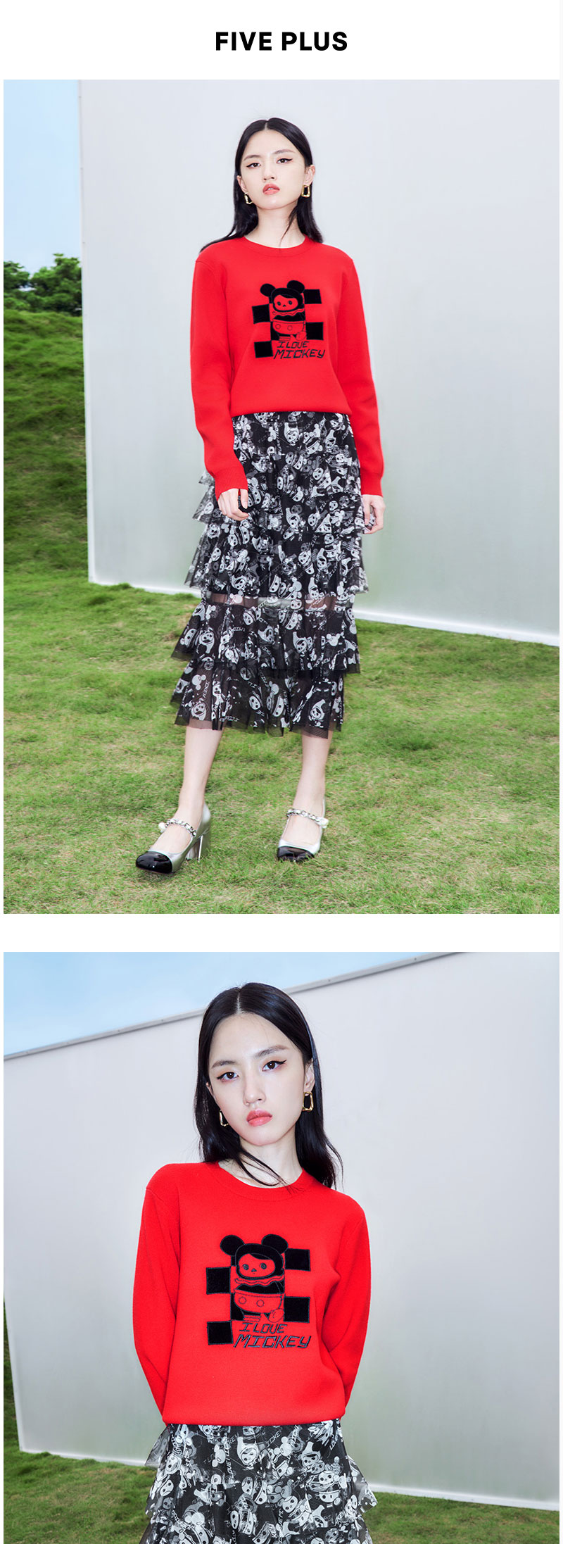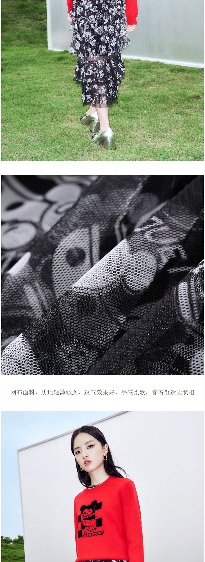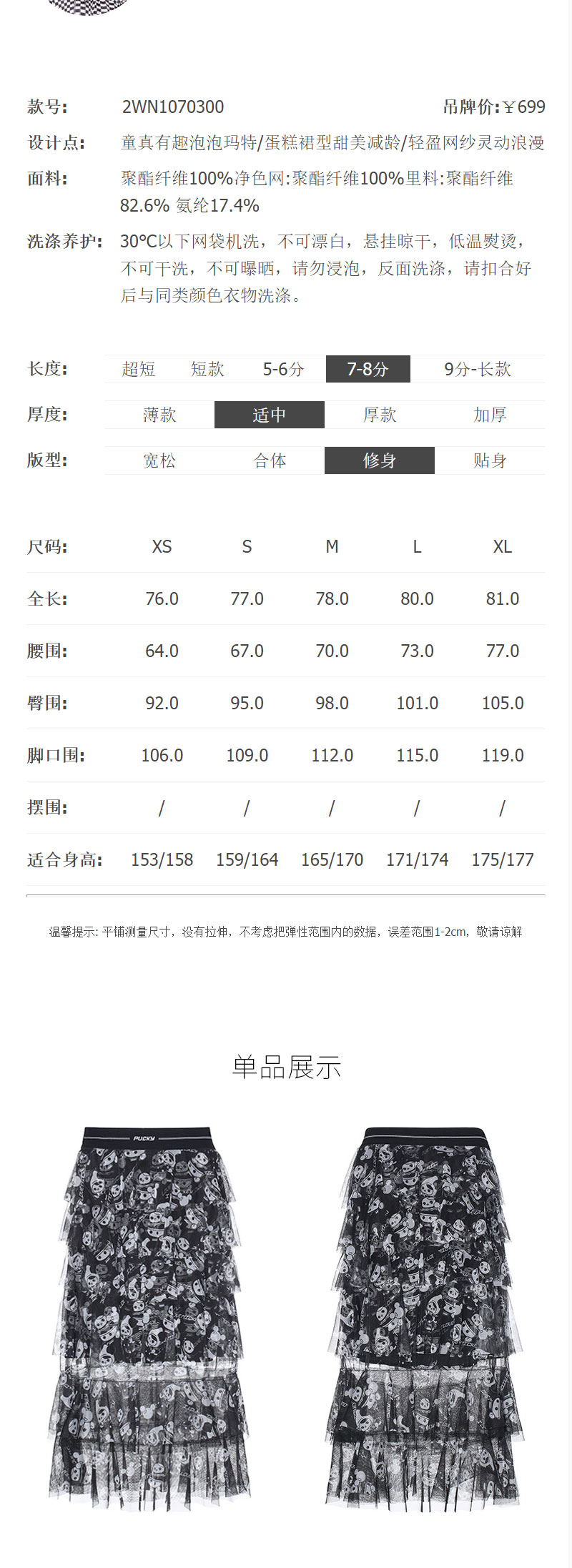 FIVE PLUS2022新款女春装泡泡玛特印花网纱半身裙女中长蛋糕裙子 2WN1070300