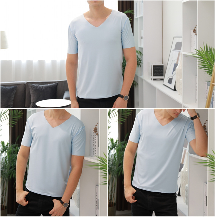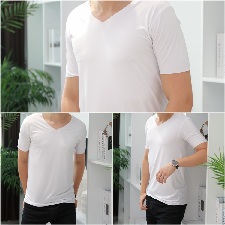服饰鞋包-男士薄款冰丝无痕t恤V领短袖运动速干