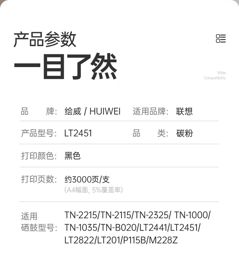 绘威LT2451/2215碳粉 适用联想m7400pro粉盒 m7605d 7615dna 7675dxf打印机硒鼓lj2655dn 2605 2405d m7455dnf墨粉