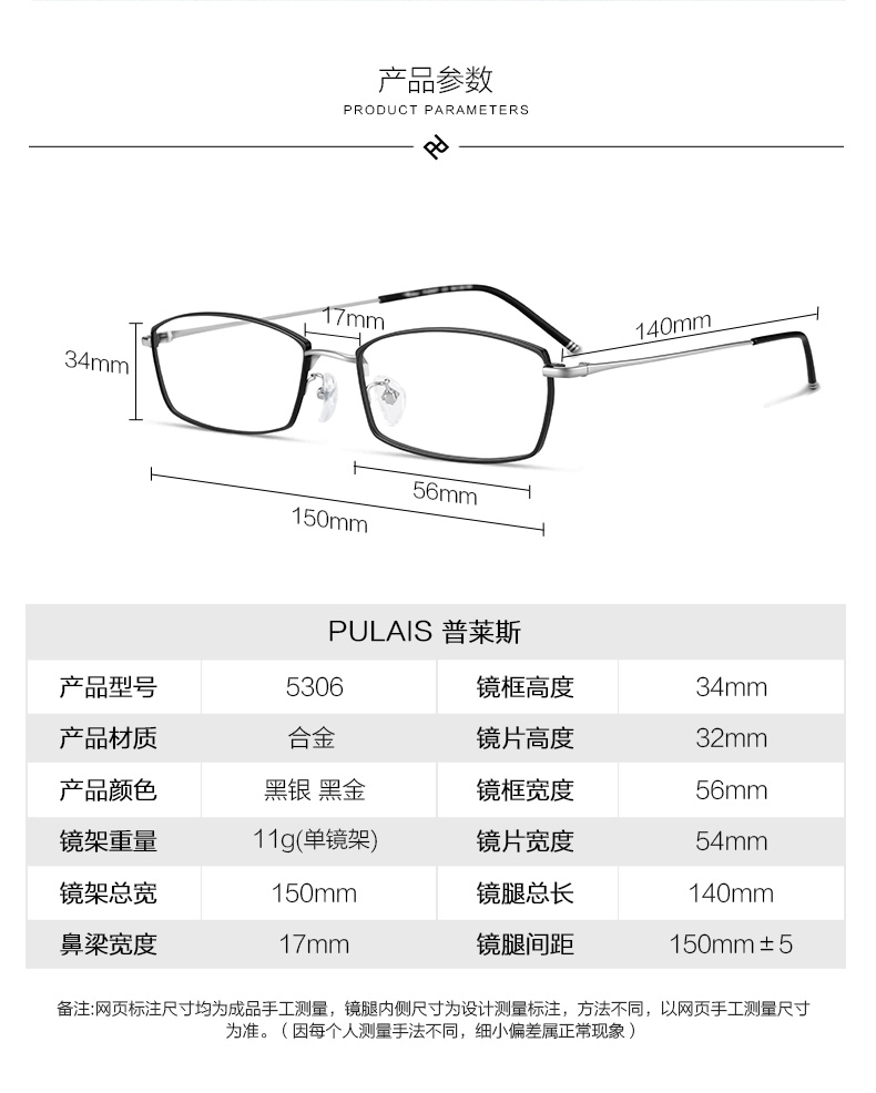 普莱斯光学镜框PJ3617 经典眉形框 亦商务亦休闲 高品质合金材质 三色可选