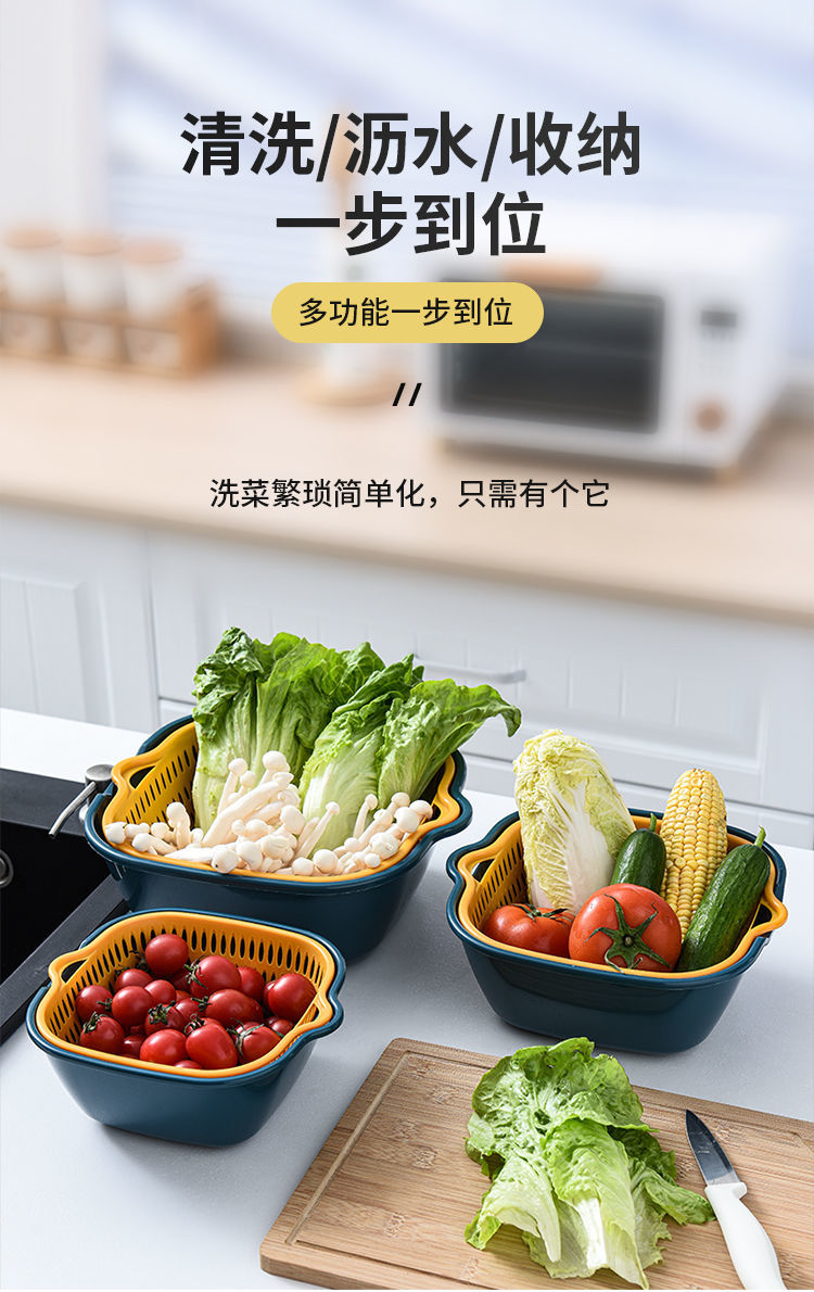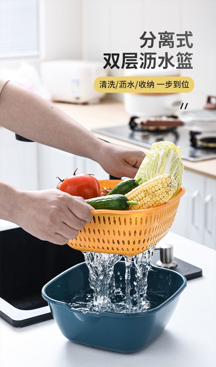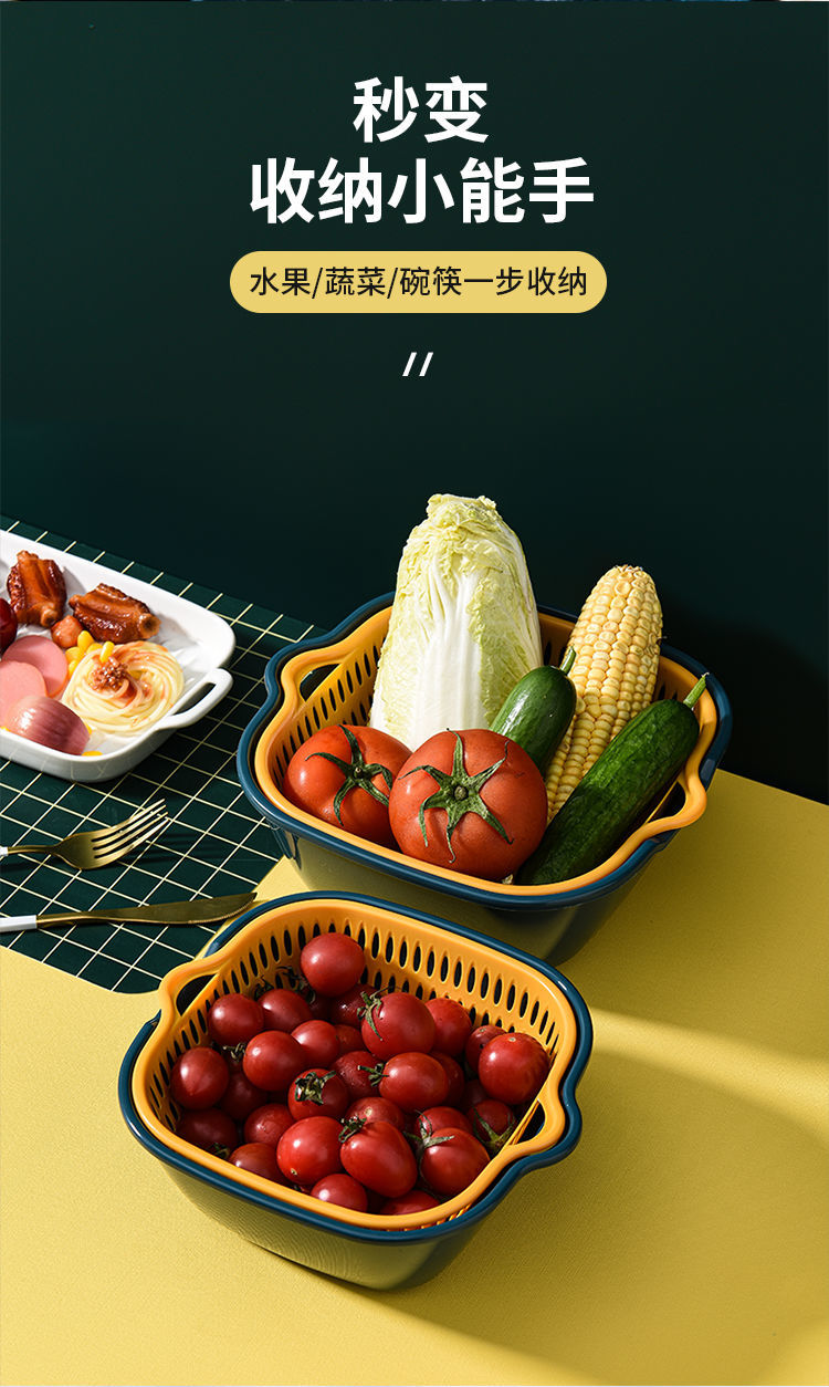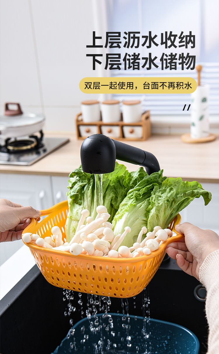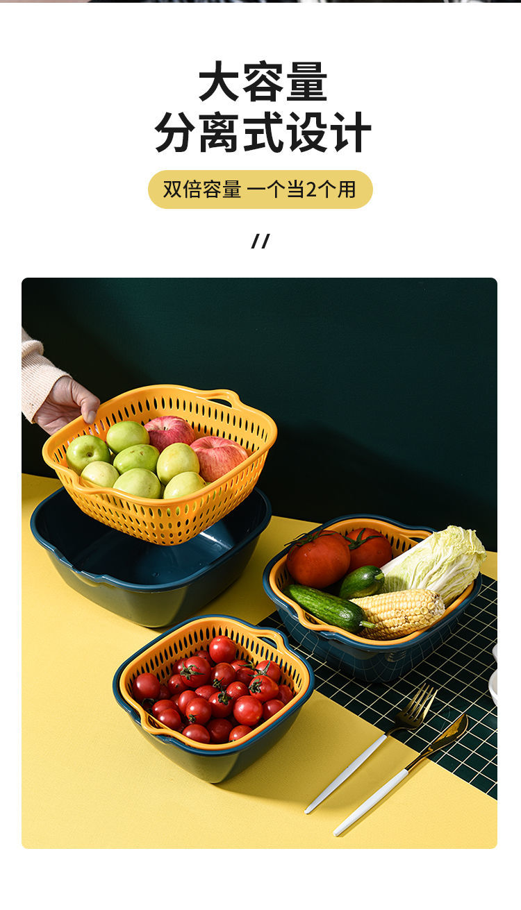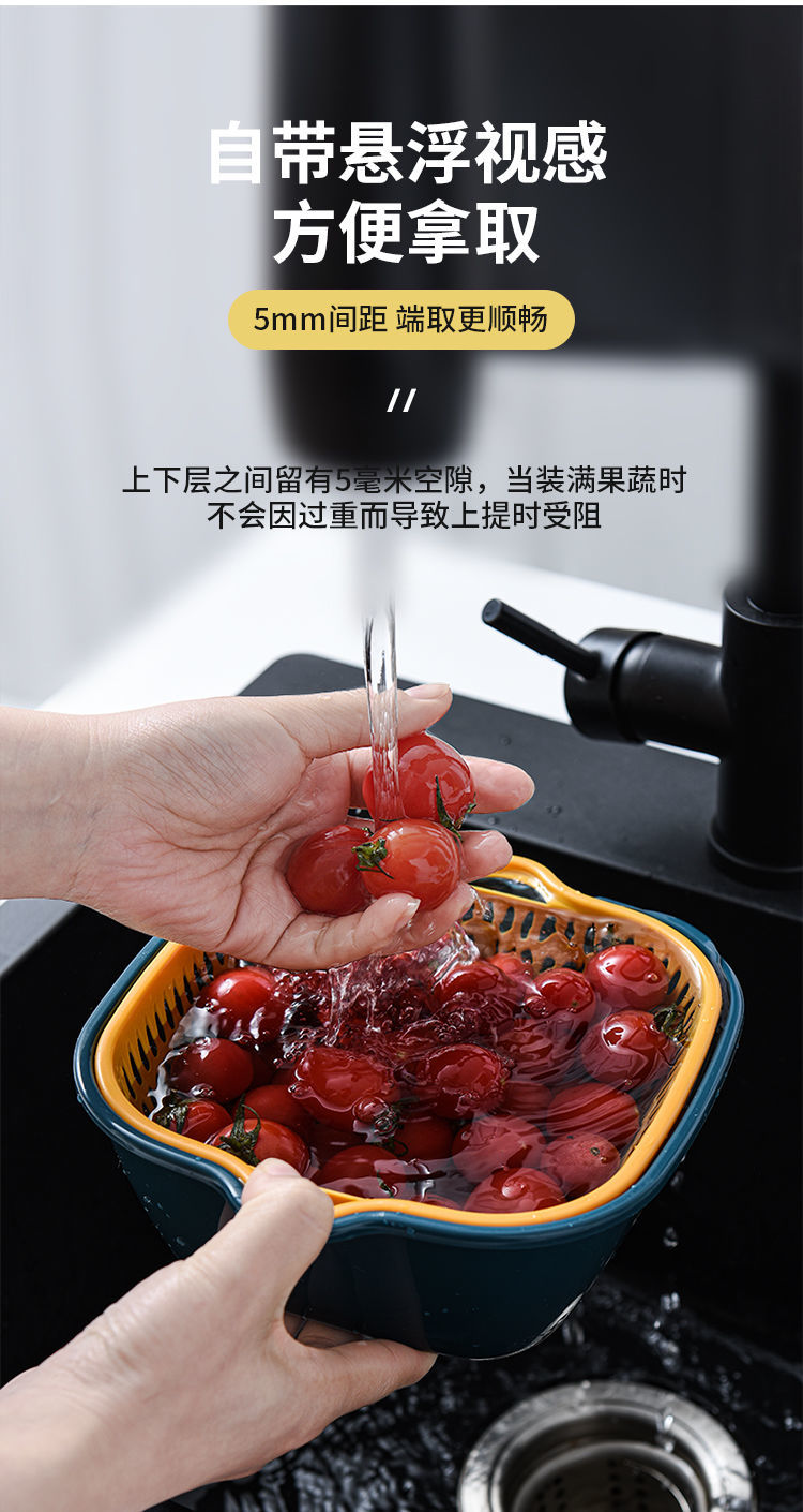 双层镂空水果盆洗水果沥水篮家用水果篮大号果盘厨房用品清洁工具
