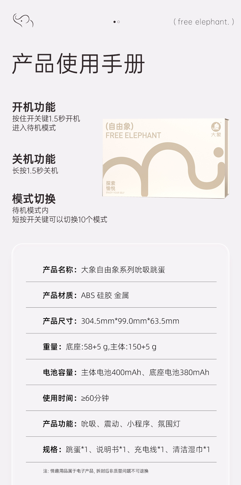 【双旦狂欢·钜惠来袭】 大象自由象吮吸跳蛋 多档震频吮吸 远程遥控 小夜灯自充电 轻音防水